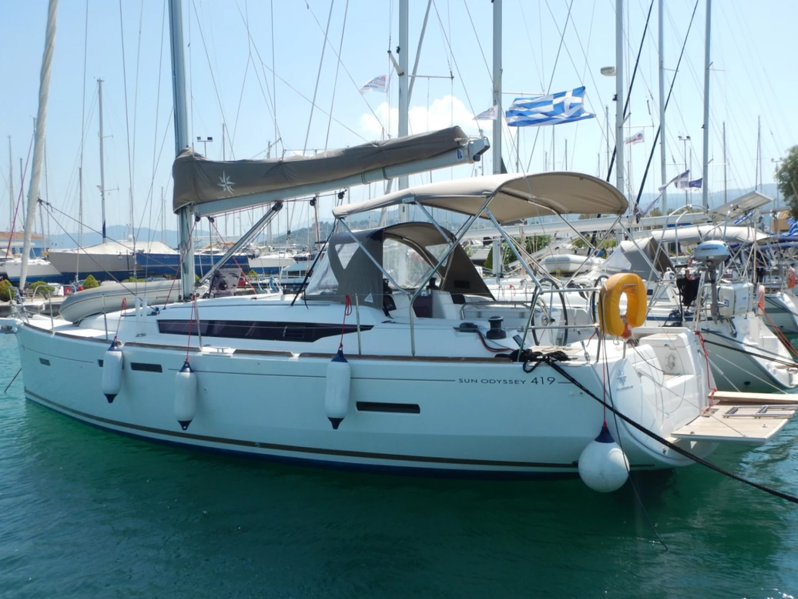 | Outside | Anker mit Kette, Ankerkettenzähler, Badeleiter, Badeplattform, Biminitop, Cockpitdusche warm/kalt, Cockpitlautsprecher, Cockpitpolster, Cockpittisch, Delta-Anker, elektr. Ankerwinsch, Fender, Festmacherleinen, Schnorchelausrüstung, Solaranlage, Sprayhood, Teak im Cockpit, Windex, Winschen |