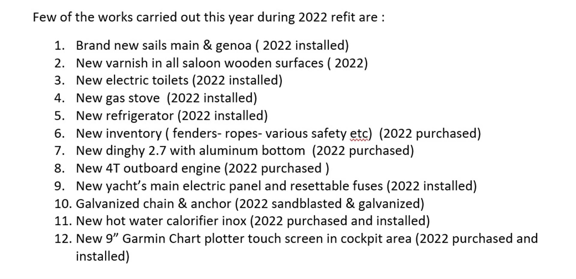 Treffen zu Charterbeginn etwas chaotisch, wir wurden zuerst an das falsche Ende des Hafens geschickt. Telefonisch abgestimmt war dass die Yacht ab 11 übernommen werden konnte. Es hieß "Übergabe in 15 Minuten", die Übergabe war dann erst um 14 Uhr. Also immer noch früher als vertraglich vereinbart, aber ein bisschen chaotisch in der Kommunikation. Die Aussage "Übergabe um 14 Uhr" wäre hier hilfreich gewesen.