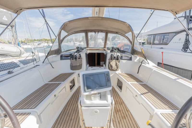 | Outside | 220 V-Landanschluss, Badeleiter, Biminitop, Cockpitdusche, Cockpitdusche warm/kalt, Cockpitlautsprecher, Cockpitpolster, Cockpittisch, elektr. Ankerwinsch, Gangway, Schnorchelausrüstung, Solaranlage, Sprayhood, Teak im Cockpit |