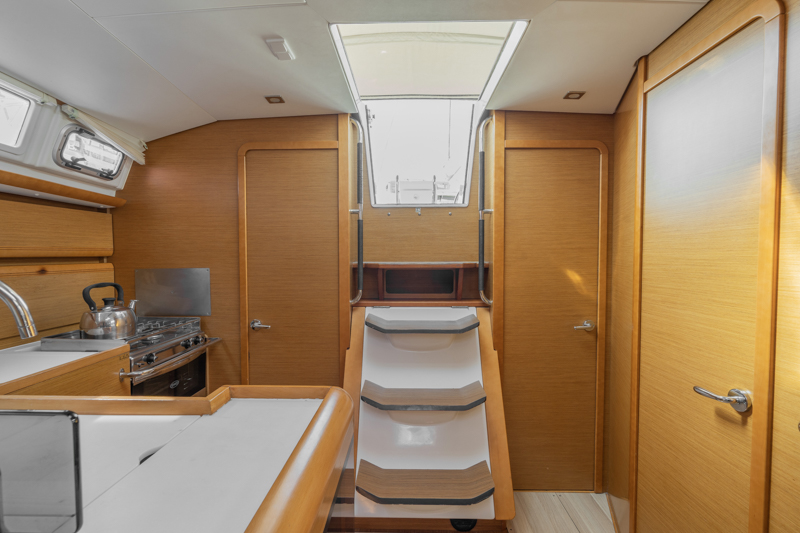 | Inside | 220V Steckdosen, Backofen, Fäkalientank, Gasherd, Kühlschrank, Ladegerät, Landstromkabel, Pantryausstattung, Salontisch absenkbar, Ventilatoren in Salon und Kabinen, Warmwasser |
