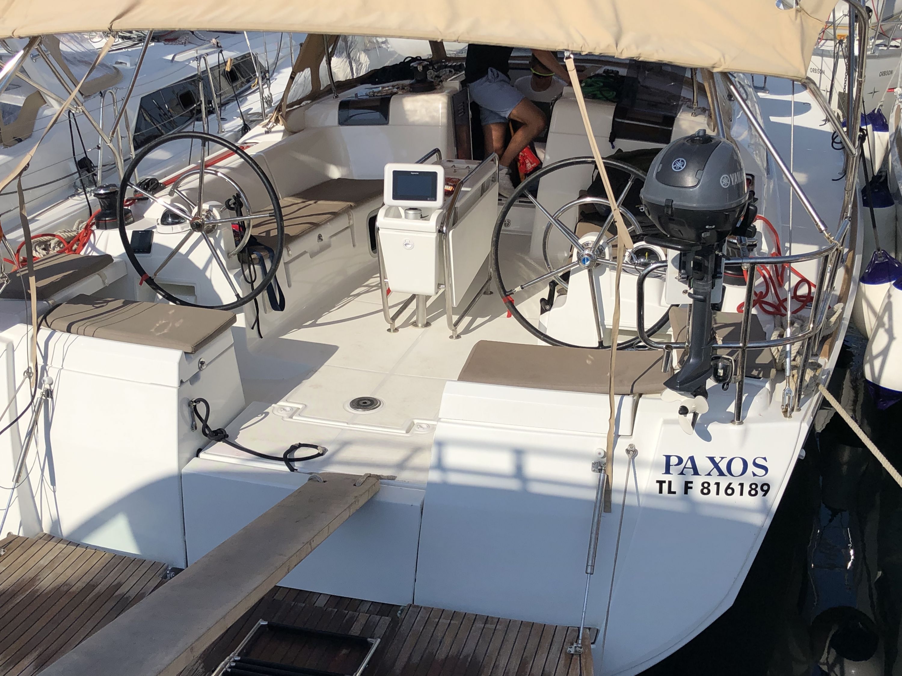 Outside 220 V-Landanschluss, Biminitop, Cockpitdusche warm/kalt, Cockpitlautsprecher, Cockpitpolster, Cockpittisch, elektr. Ankerwinsch, Selbstholende Winschen, Sprayhood