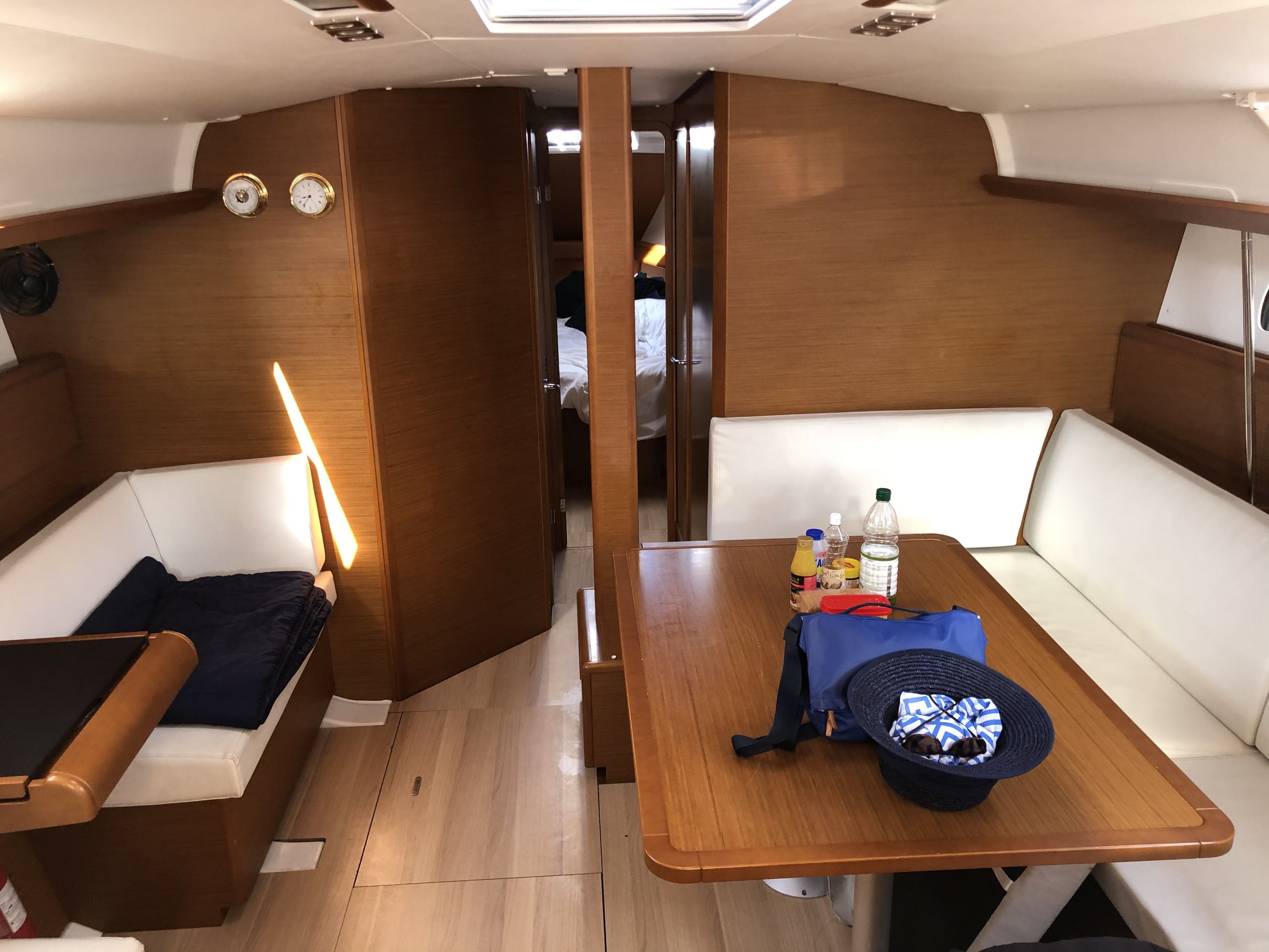 Inside 220V Steckdosen, Backofen, FUSION Sound System, Gasherd, Inverter 12V/220V, Kühlschrank, Pantryausstattung, Radio mit Bluetooth, Salontisch absenkbar, Ventilatoren in Kabinen, Warmwasser