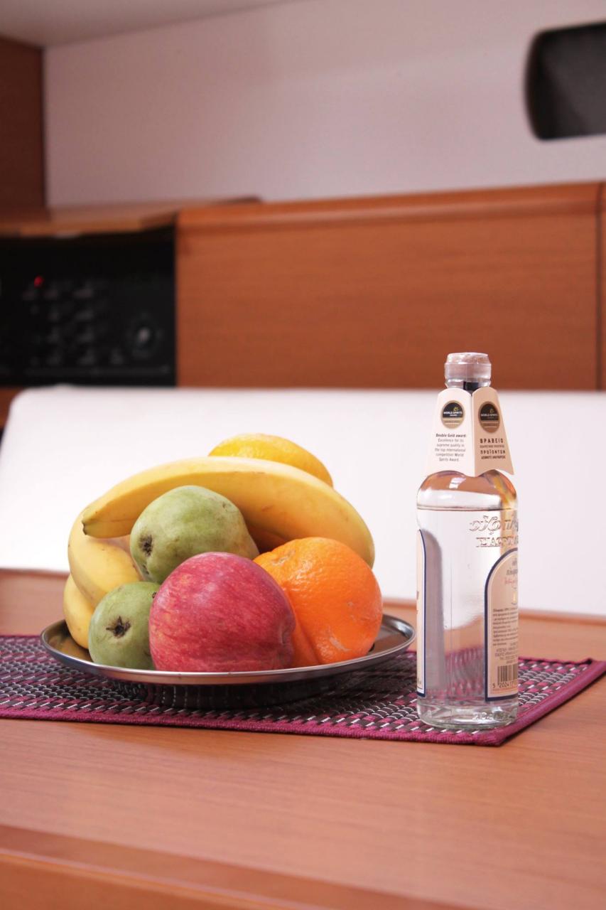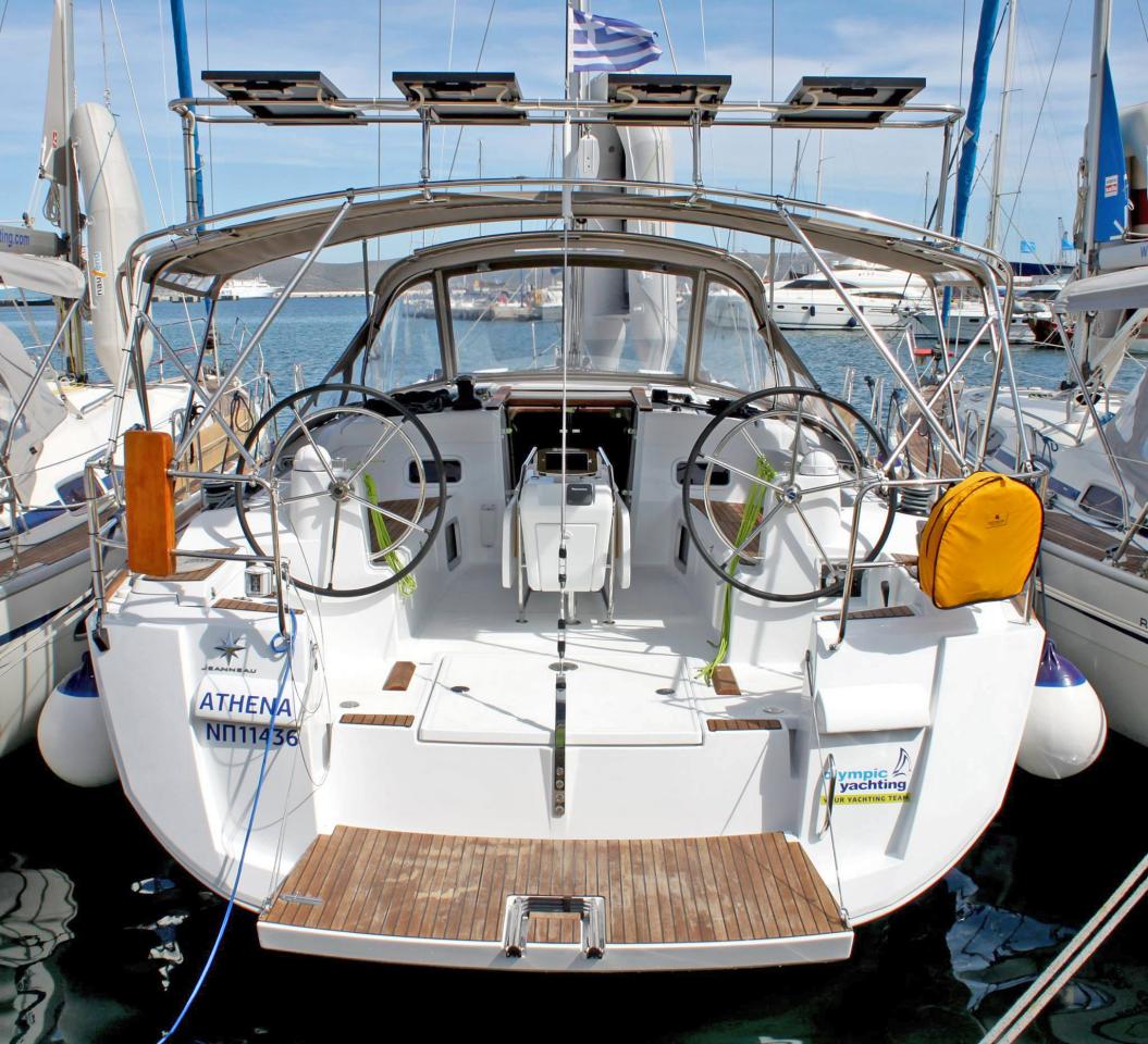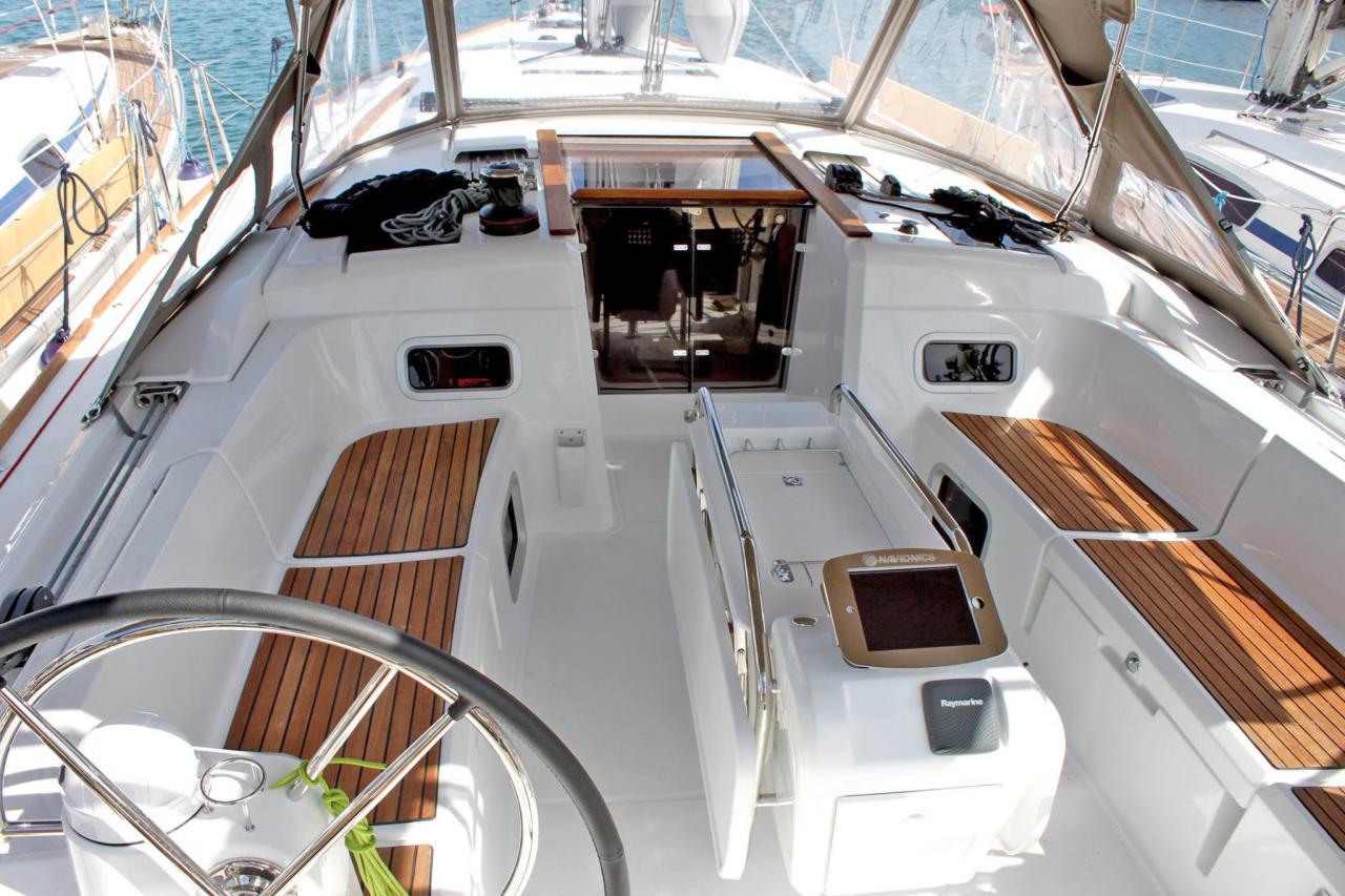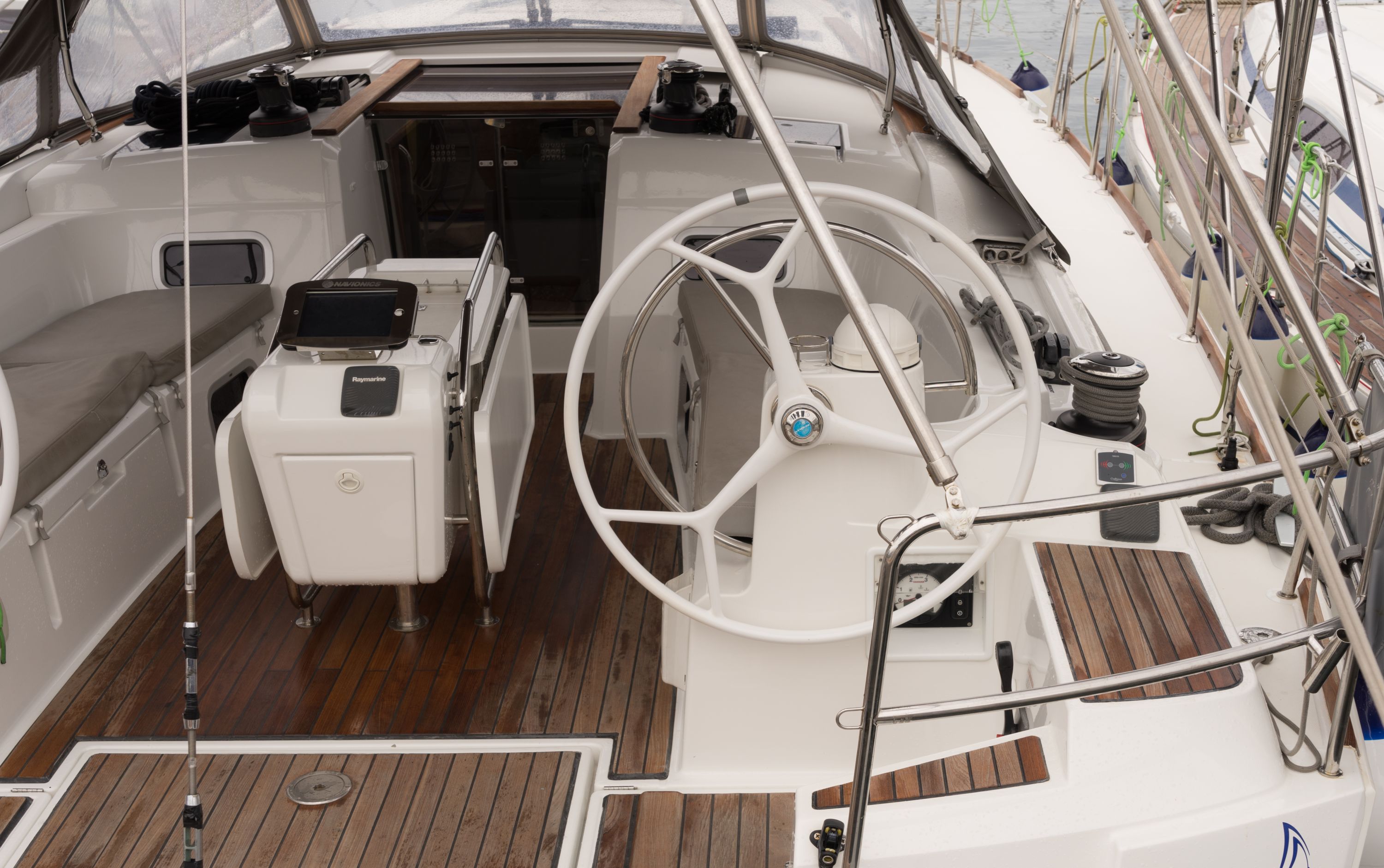 | Outside | Badeleiter, Badeplattform, Biminitop, Cockpitdusche, Cockpitlautsprecher, Cockpitpolster, Cockpittisch, elektr. Ankerwinsch, Solaranlage, Sprayhood, Teak im Cockpit, Windex |