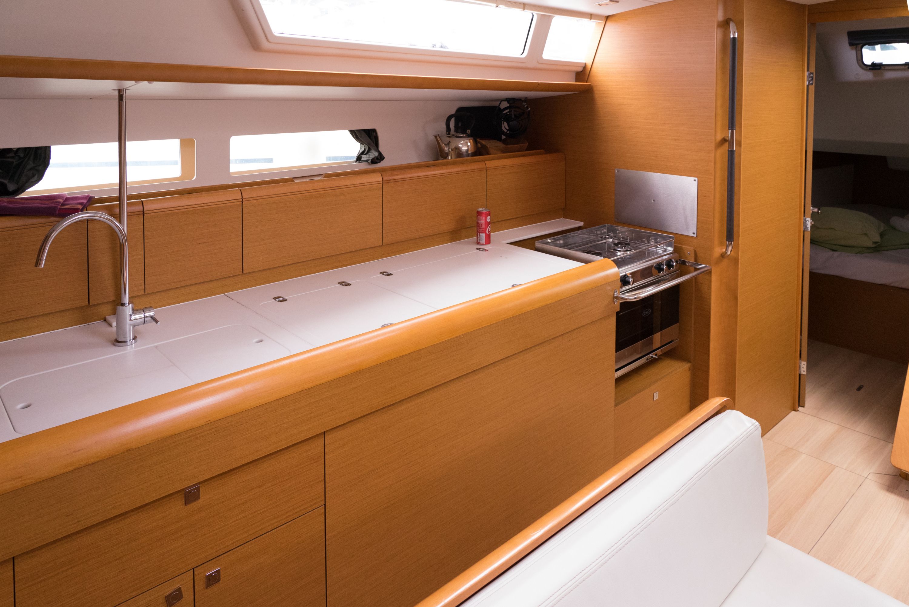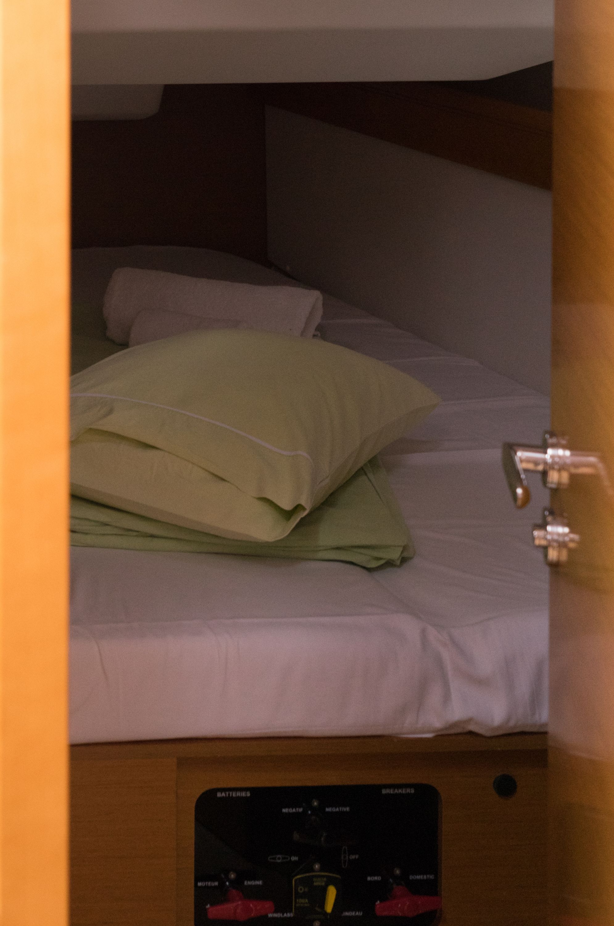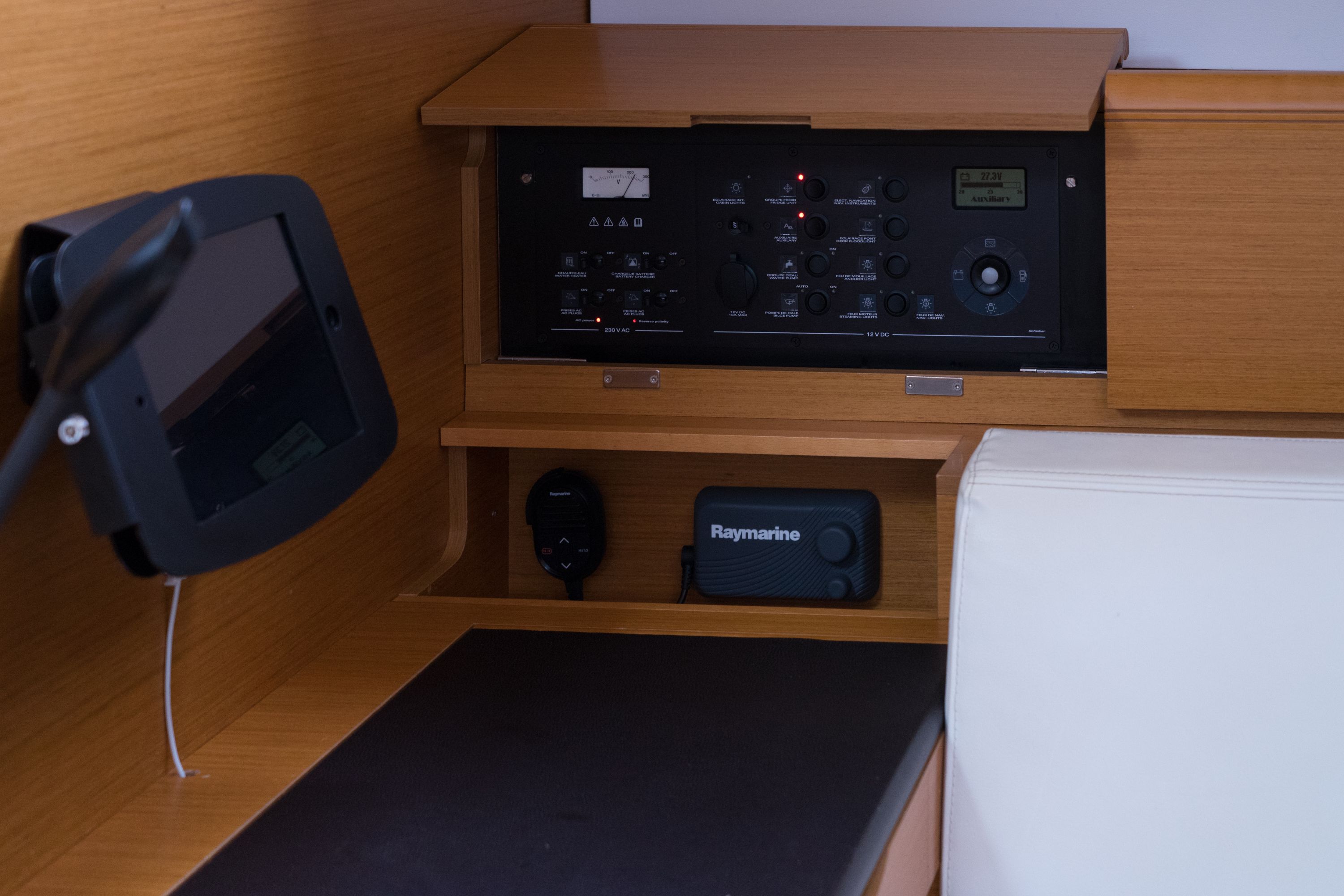 Sehr guter Zustand der Yacht. Navigatorische Ausrüstung ist basic. Z.B. kein Navtex nur VHF an Bord. Mit dem Radio konnte kein Wetter empfangen werden, da nur FM und AM. Auf den Inseln nicht immer Empfang mit dem Smartphone. Zwei Ipad (Deck und Navi-Ecke), kein richtiger Plotter. Ipad kann bei Sonne nicht abgelesen werden.
