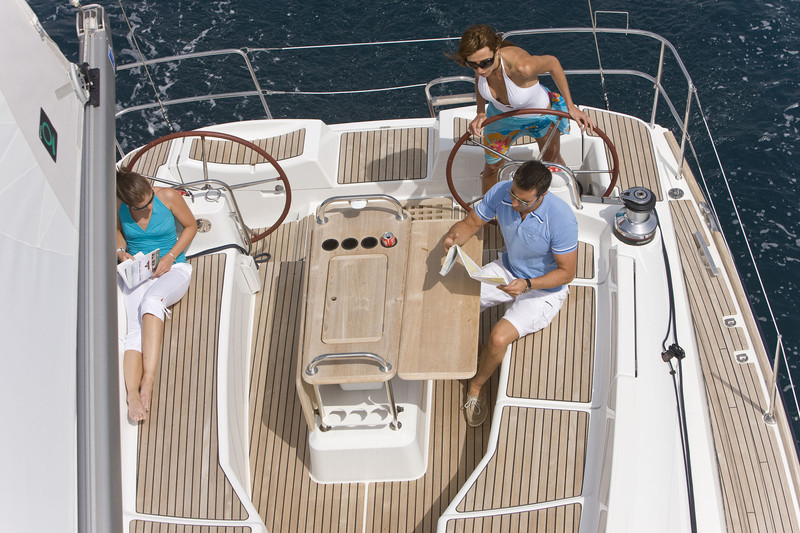 | Outside | 220 V-Landanschluss, Badeleiter, Biminitop, Cockpitdusche, Cockpitpolster, Cockpittisch, elektr. Ankerwinsch, elektr. Winsch, Gangway, hydraul. Gangway, Schnorchelausrüstung, Sprayhood, Teakdeck, Windex |