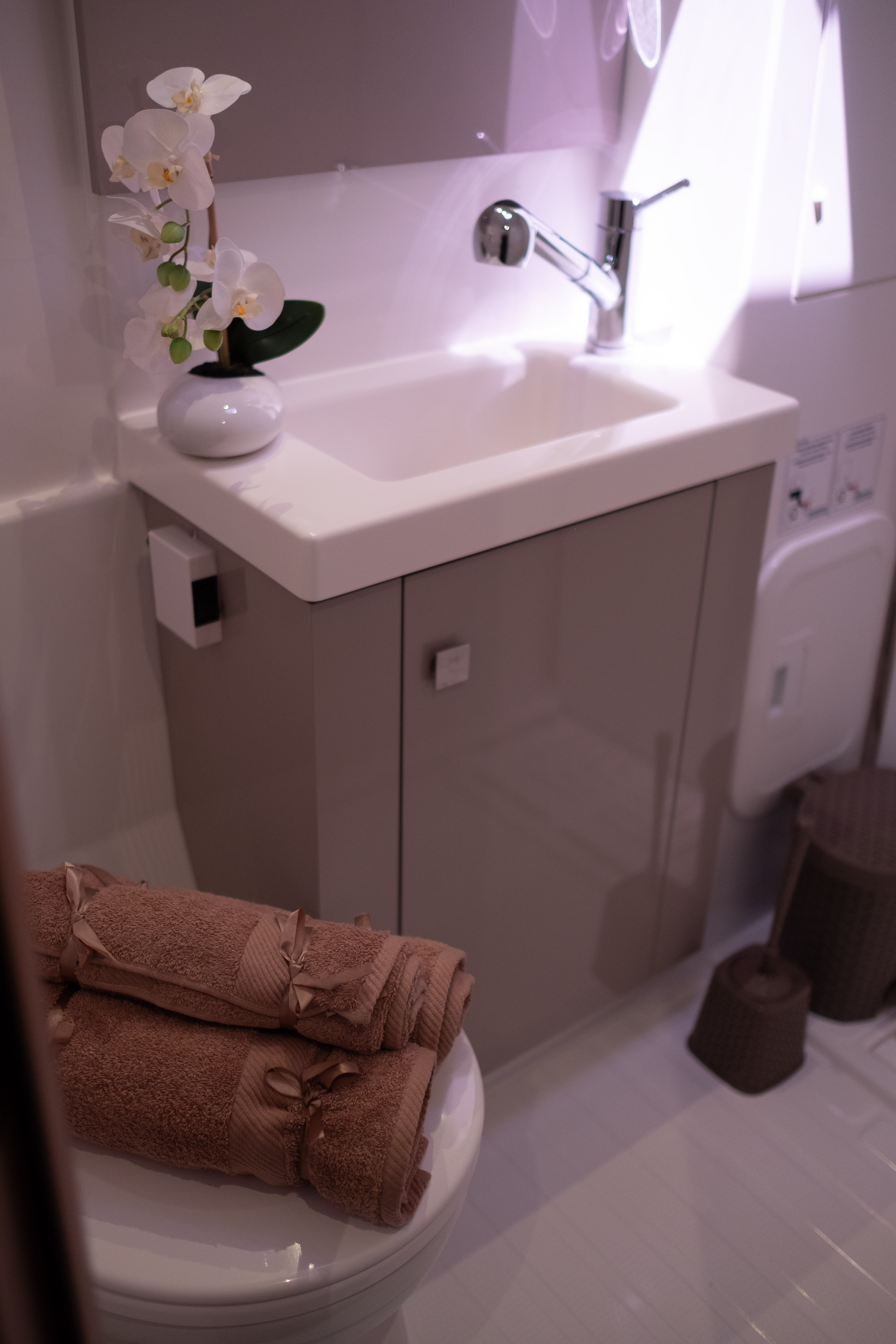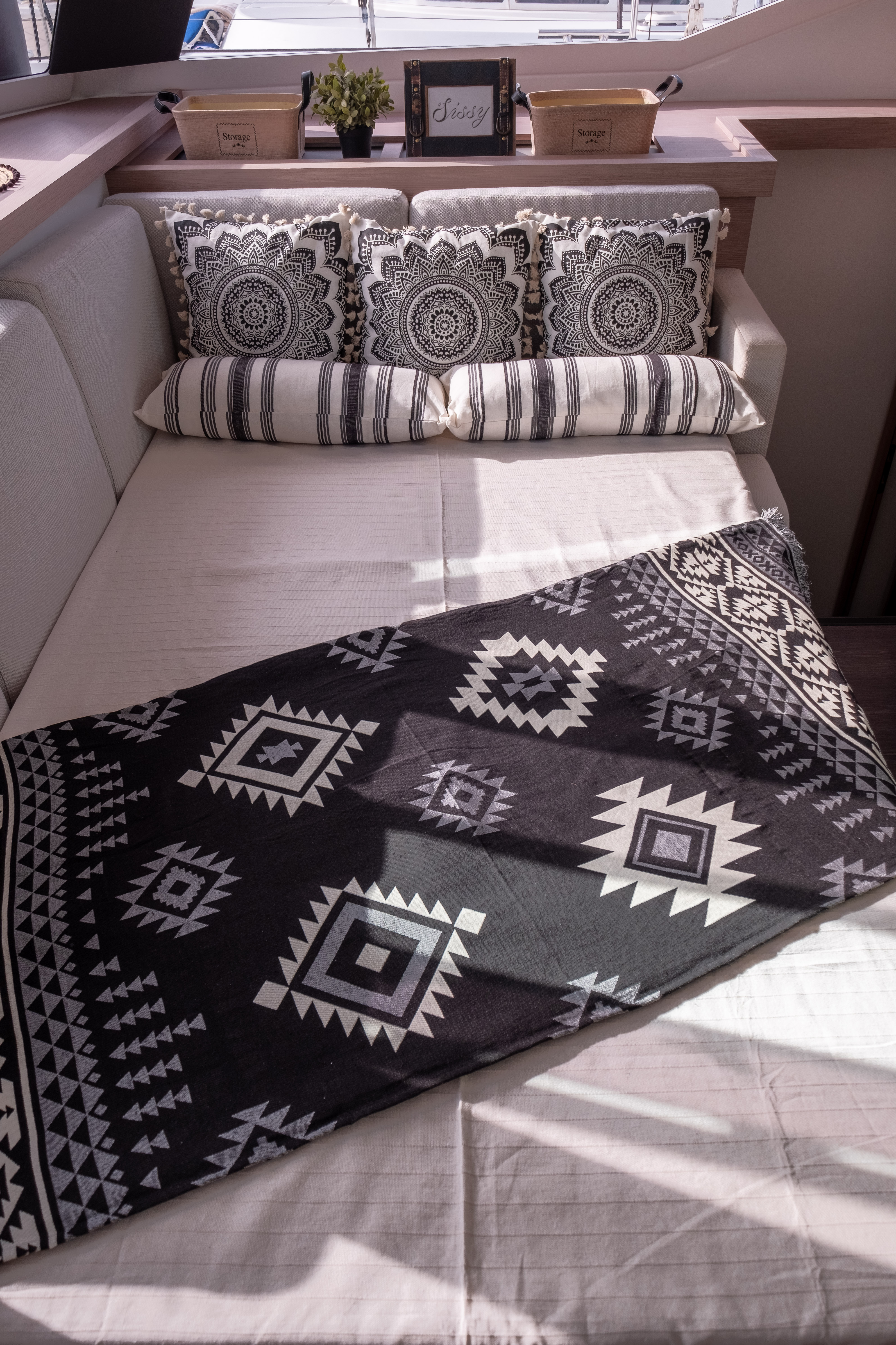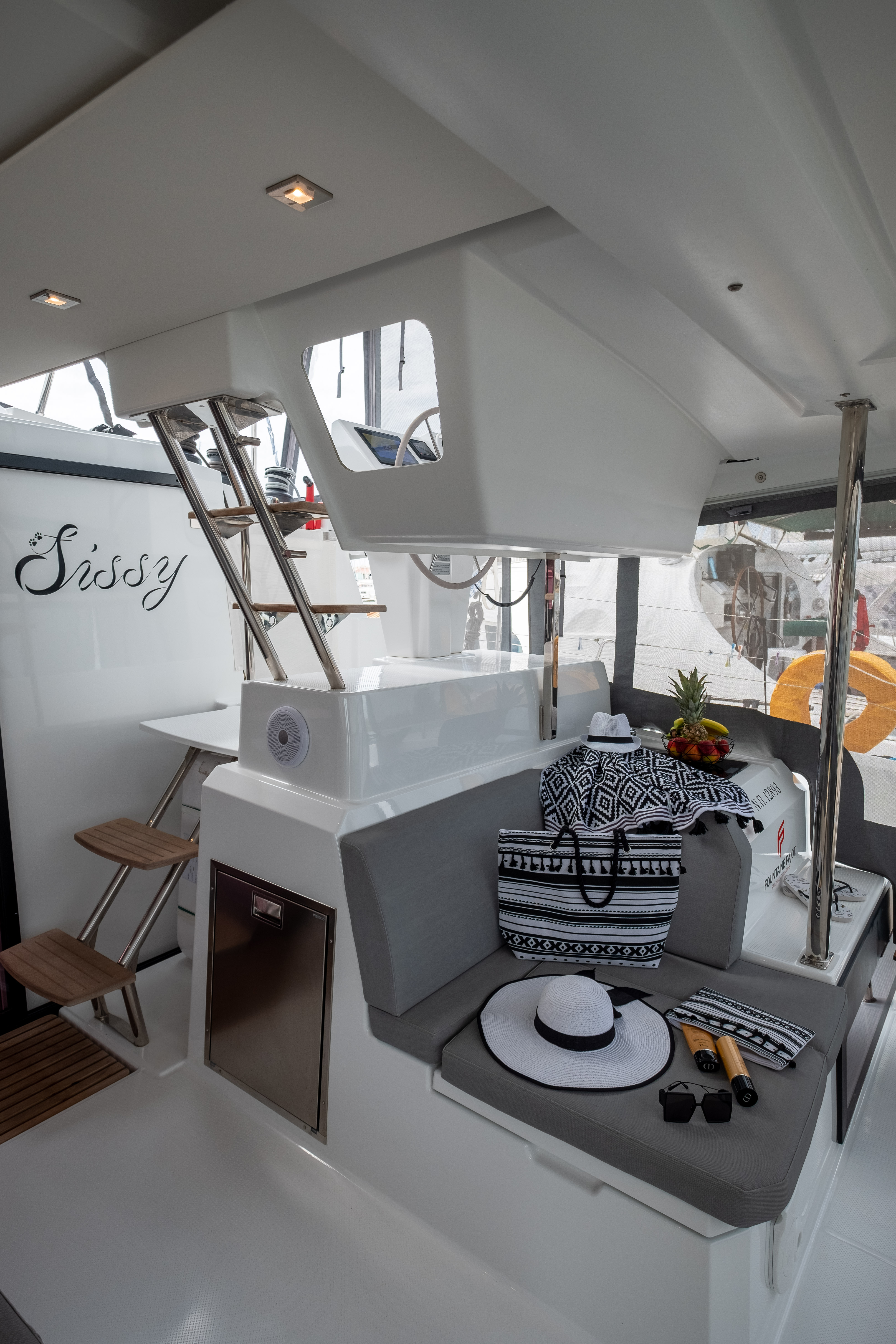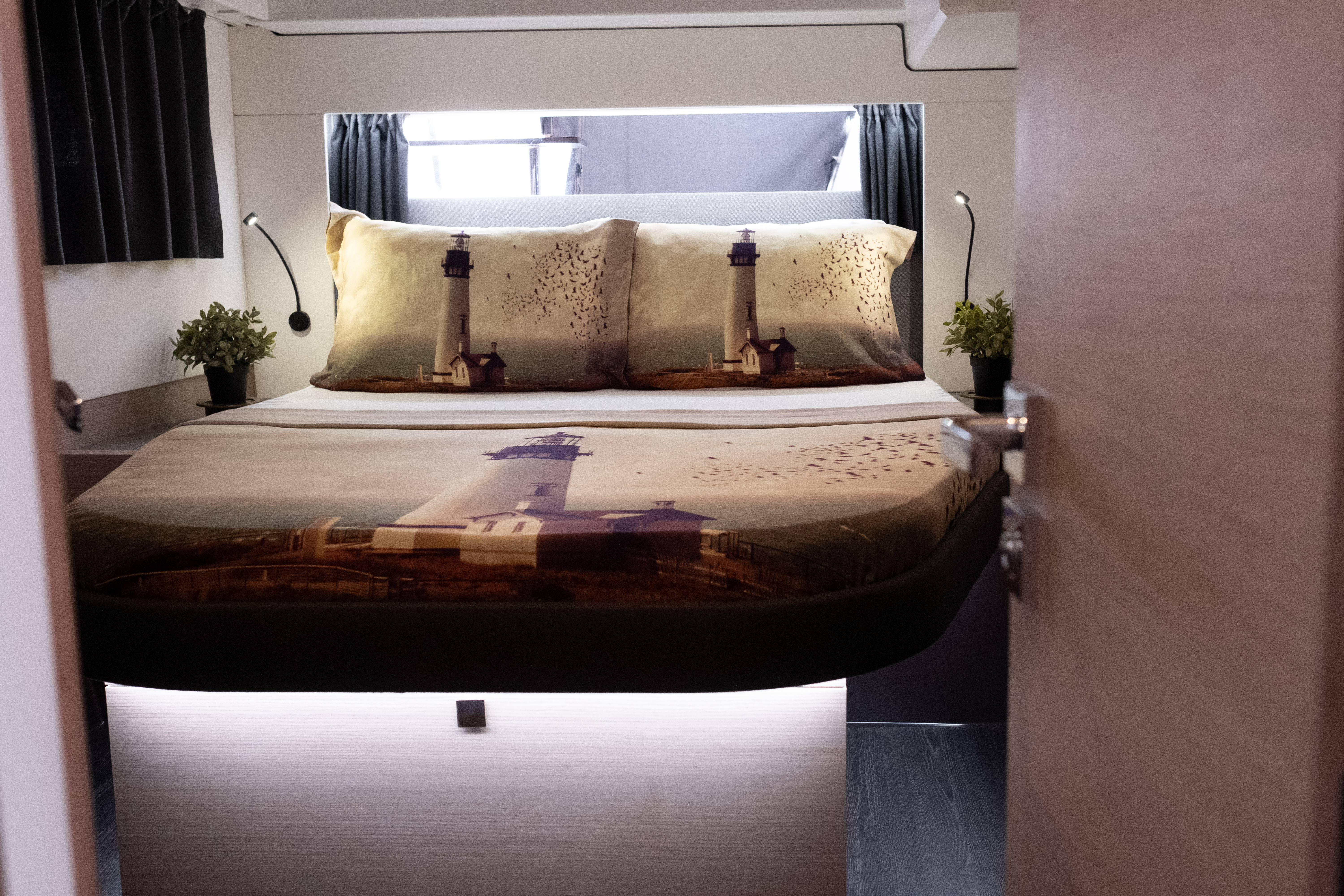 | Inside | FUSION Sound System, Gefrierschrank, Generator, Inverter 12V/220V, Klimaanlage (ohne Landstrombedarf), LED-Innenleuchten, Mikrowelle, Pantryausstattung, Salontisch absenkbar, Trichter, TV, USB Steckdose, Ventilatoren in Salon und Kabinen, Watermaker |