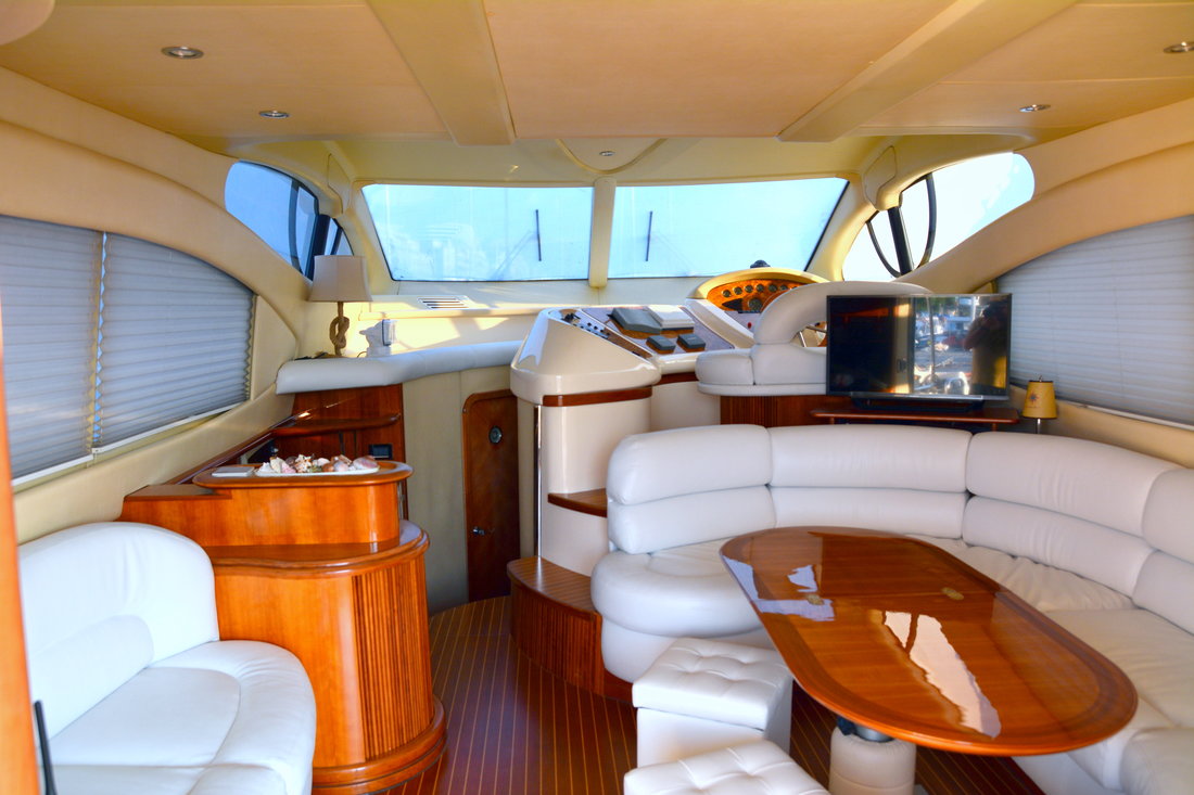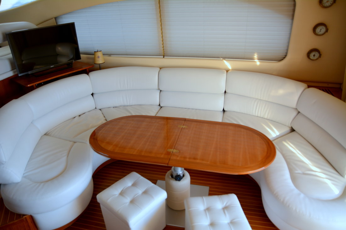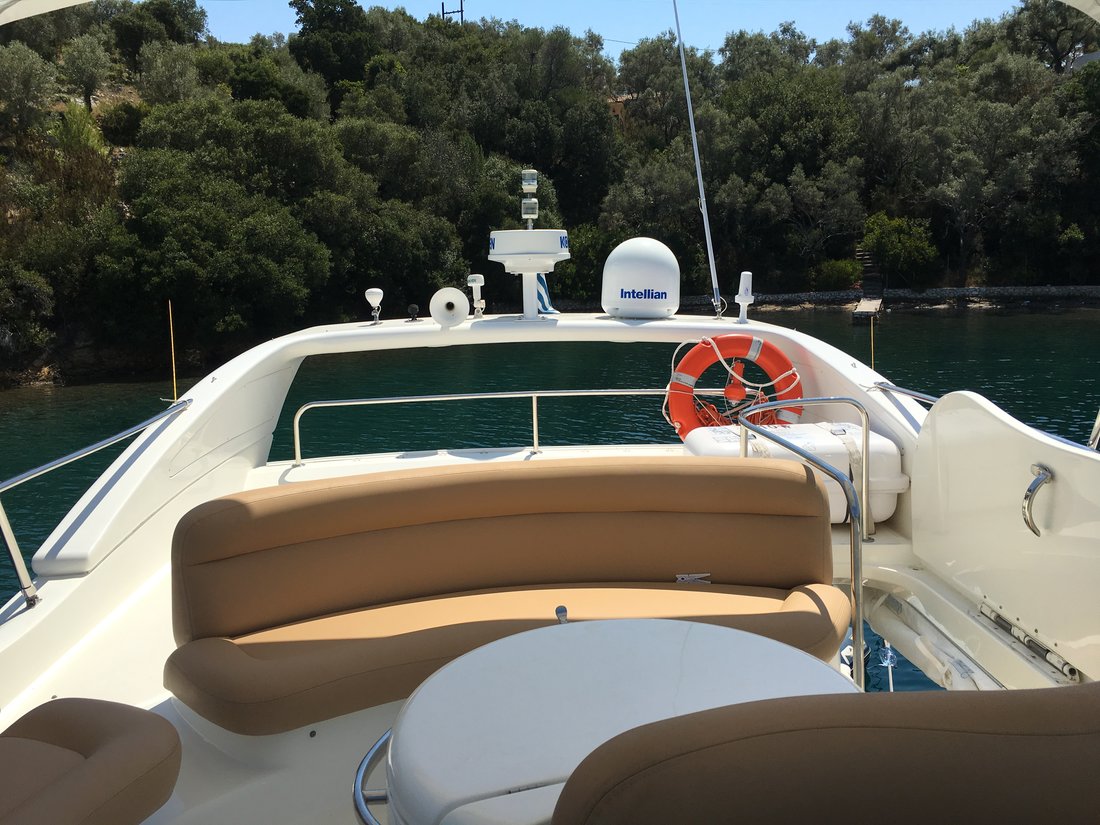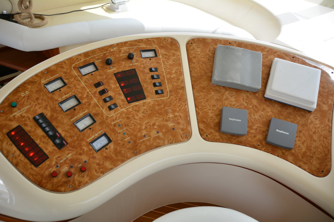 | Outside | 12 V-Anschluss, 220 V-Landanschluss, Anker mit Kette, Badeleiter, Biminitop, Cockpitdusche, Cockpitkühlschrank, Cockpitlautsprecher, Cockpitpolster, Cockpittisch, elektr. Ankerwinsch, Gangway, Sprayhood, Teak im Cockpit, Unterwasserbeleuchtung |