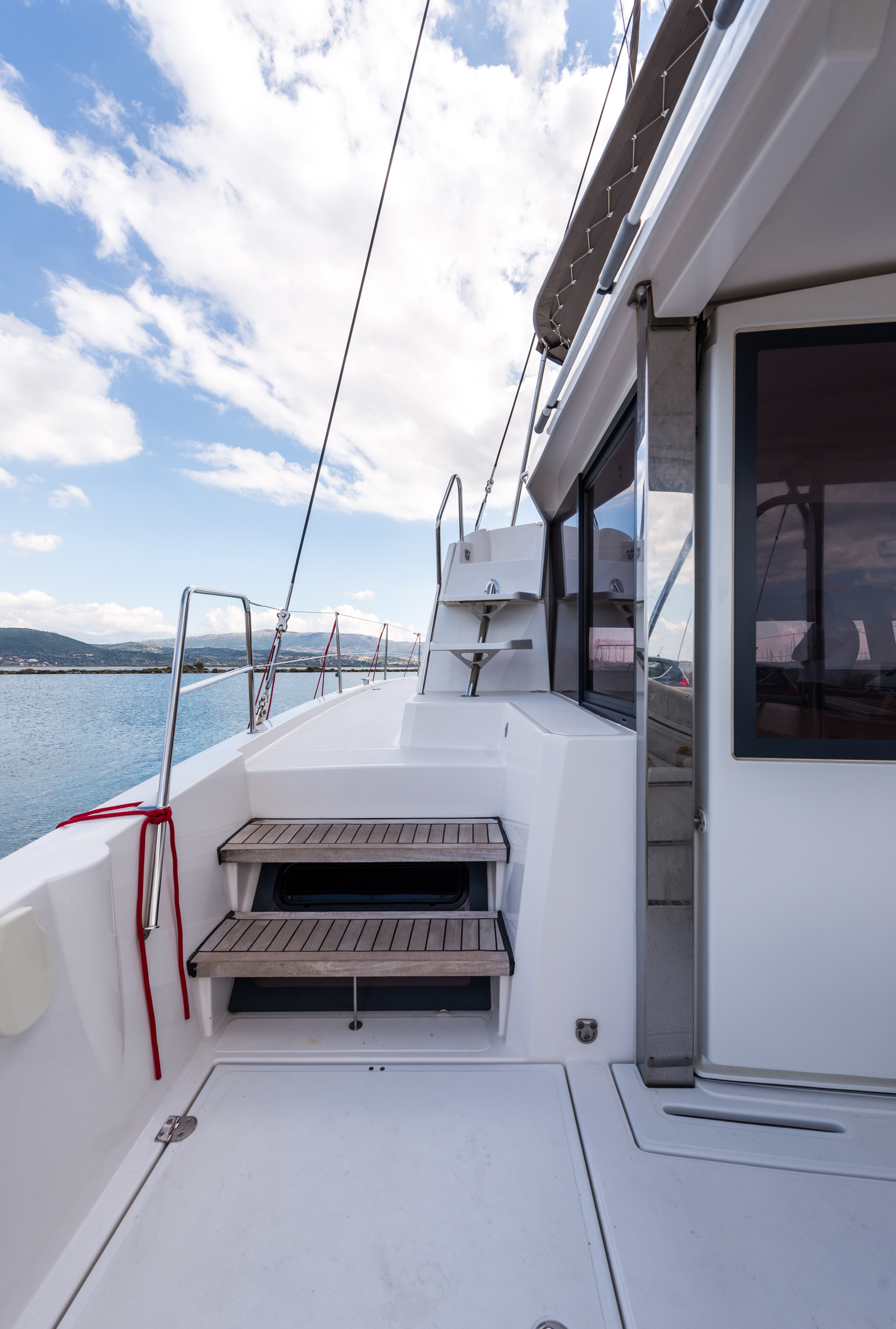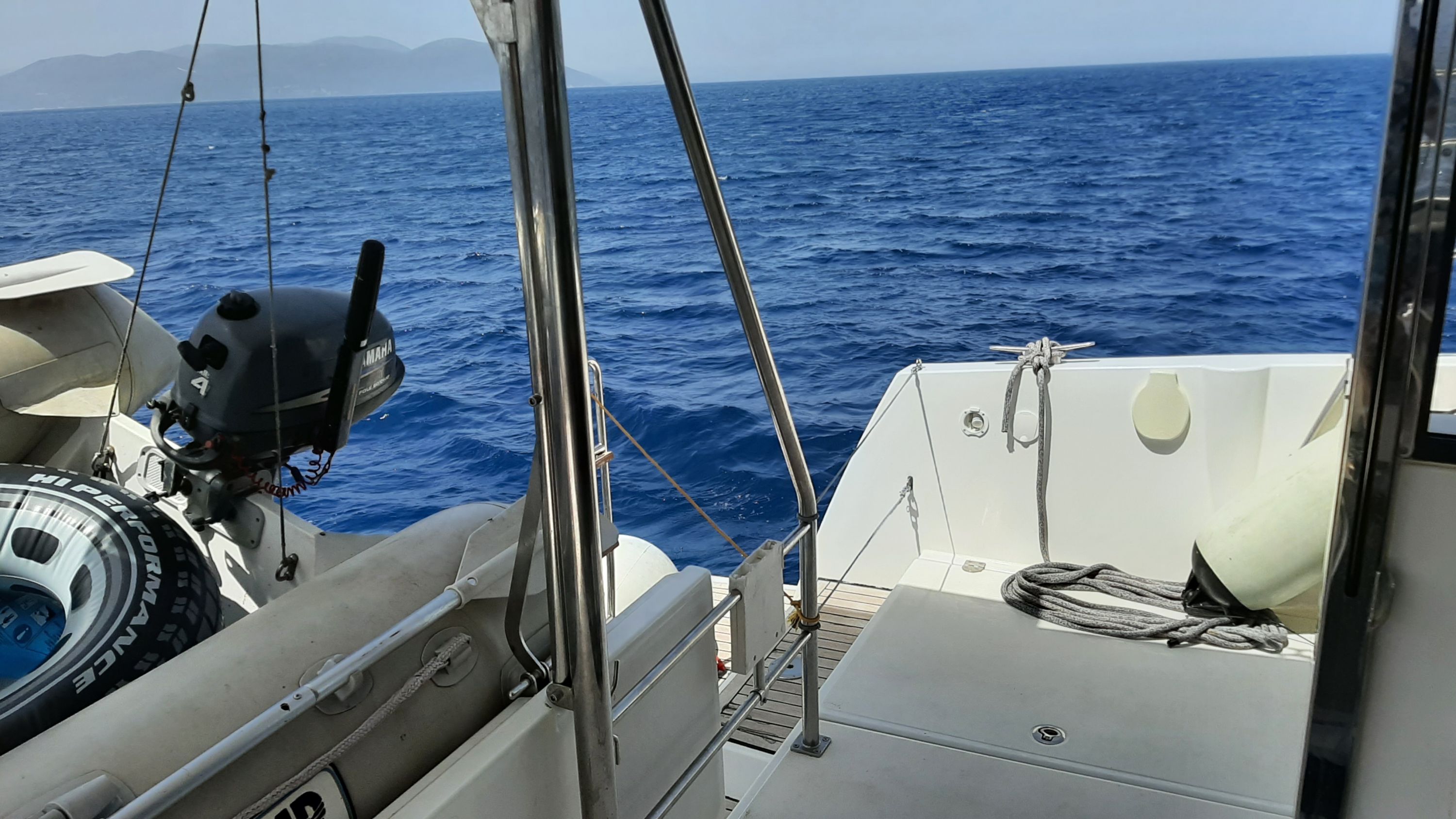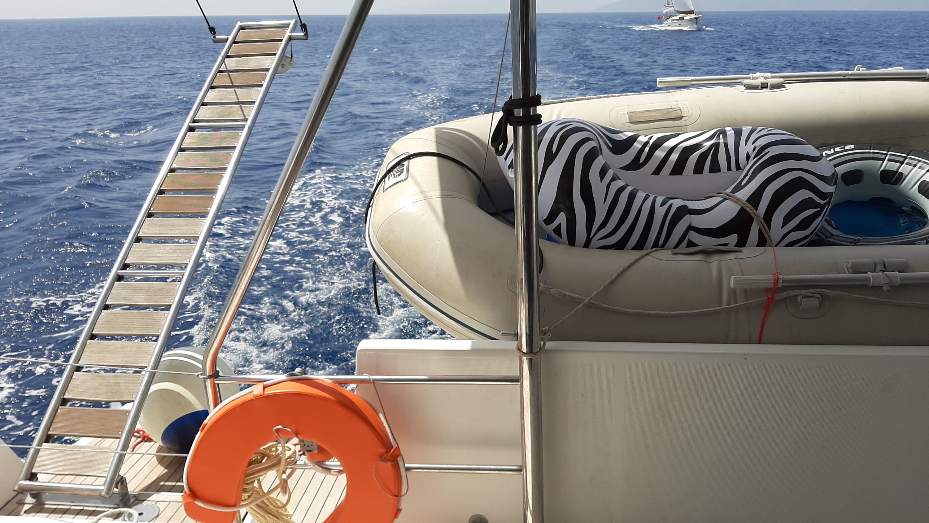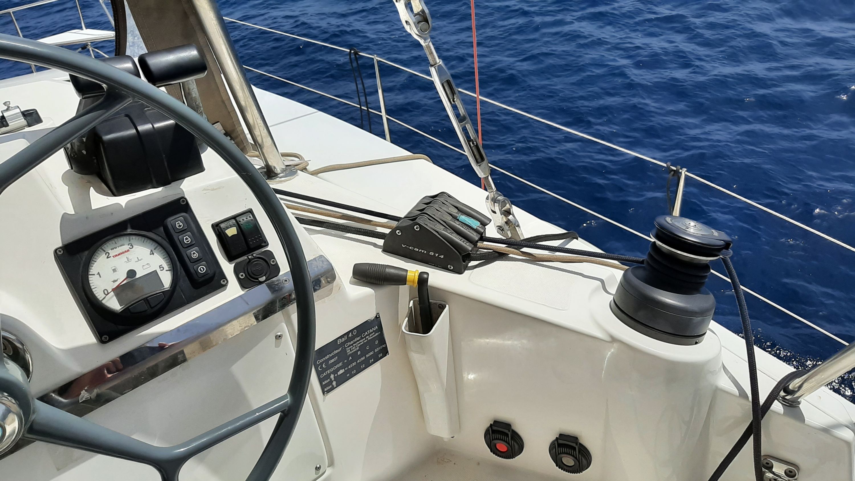 | Outside | Badeleiter, Biminitop, Cockpitdusche, Cockpitpolster, Cockpittisch, Deckpolster, elektr. Ankerwinsch, elektr. Winsch, Schnorchelausrüstung, Segel-Flickwerkzeug, Solaranlage, Sonnendeck, Sprayhood, Windex |