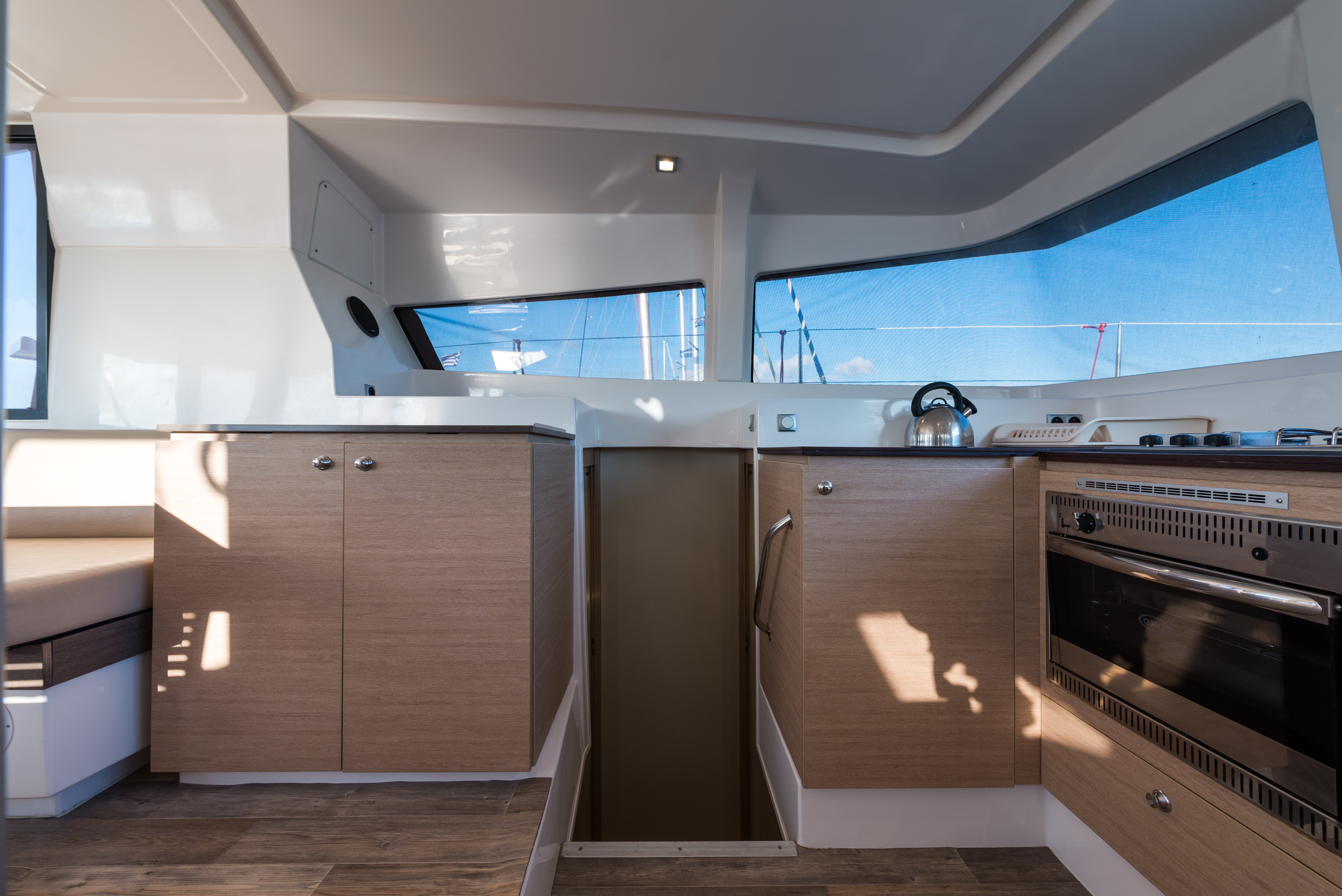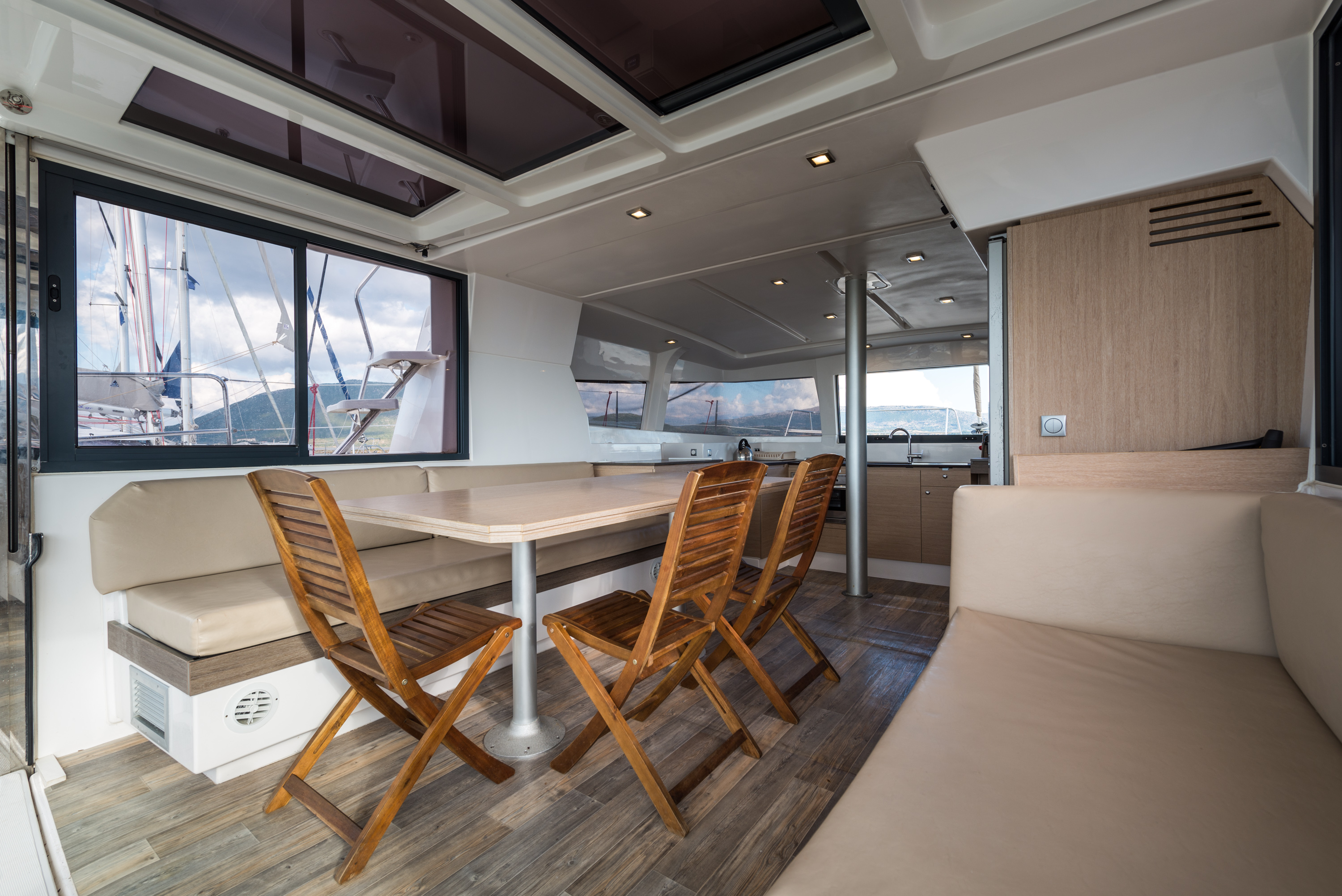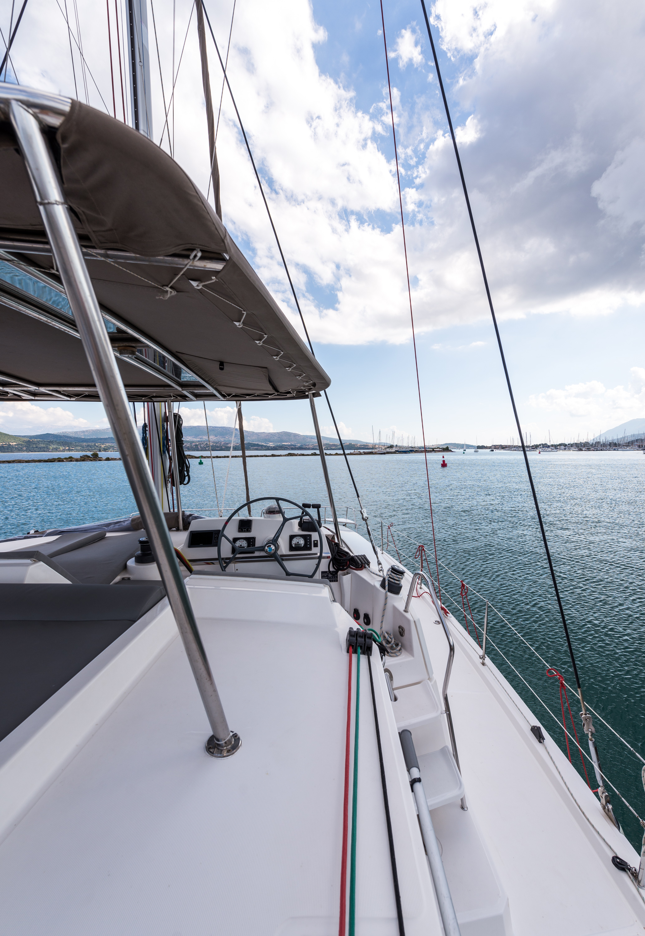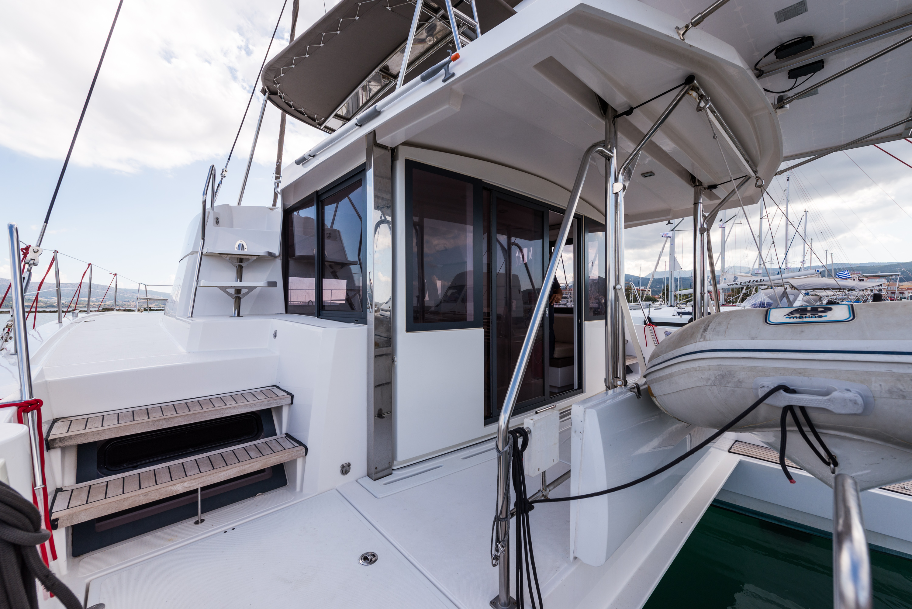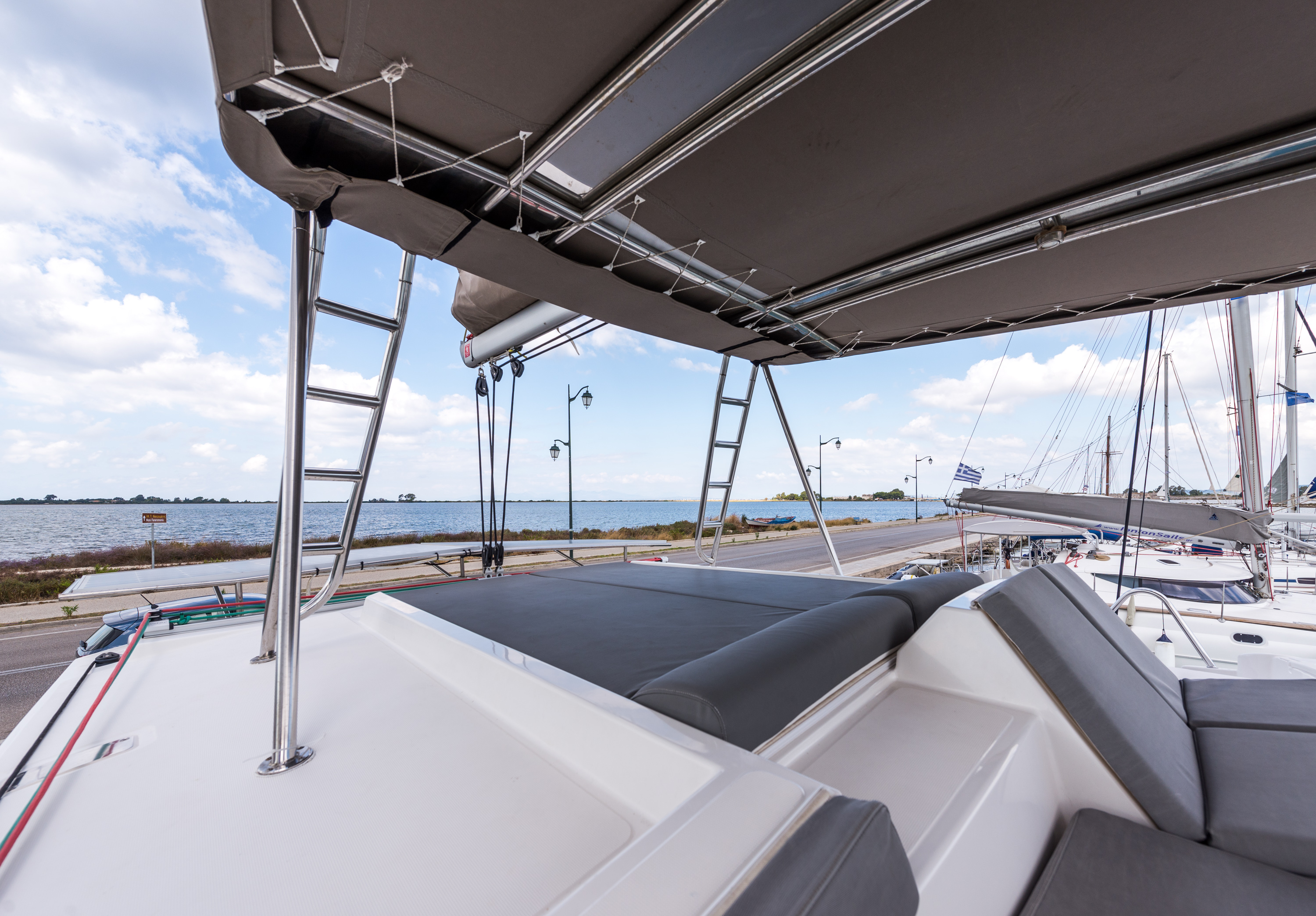 | Outside | Badeleiter, Biminitop, Cockpitdusche, Cockpitpolster, Cockpittisch, Deckpolster, elektr. Ankerwinsch, elektr. Winsch, Schnorchelausrüstung, Segel-Flickwerkzeug, Solaranlage, Sonnendeck, Sprayhood, Windex |