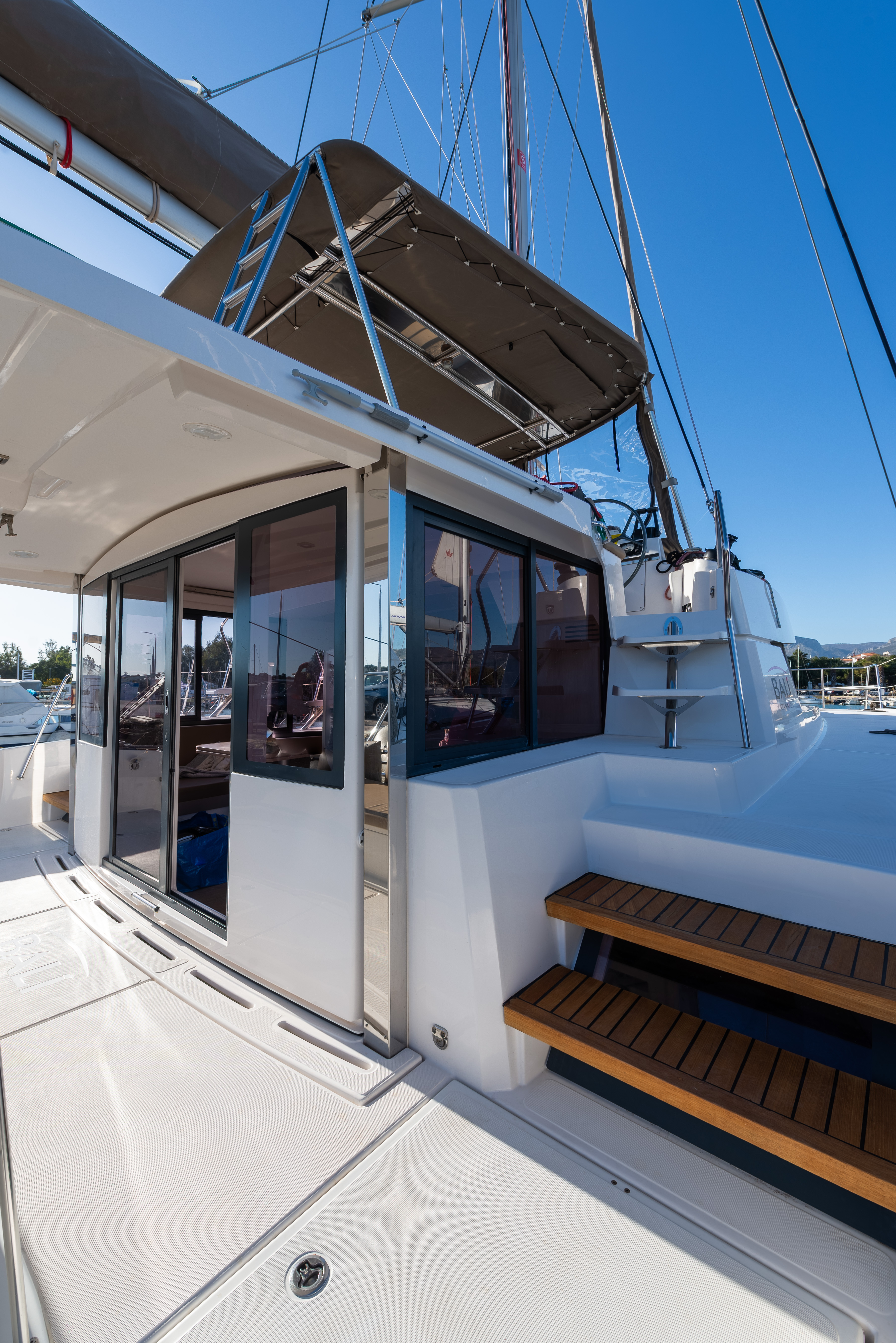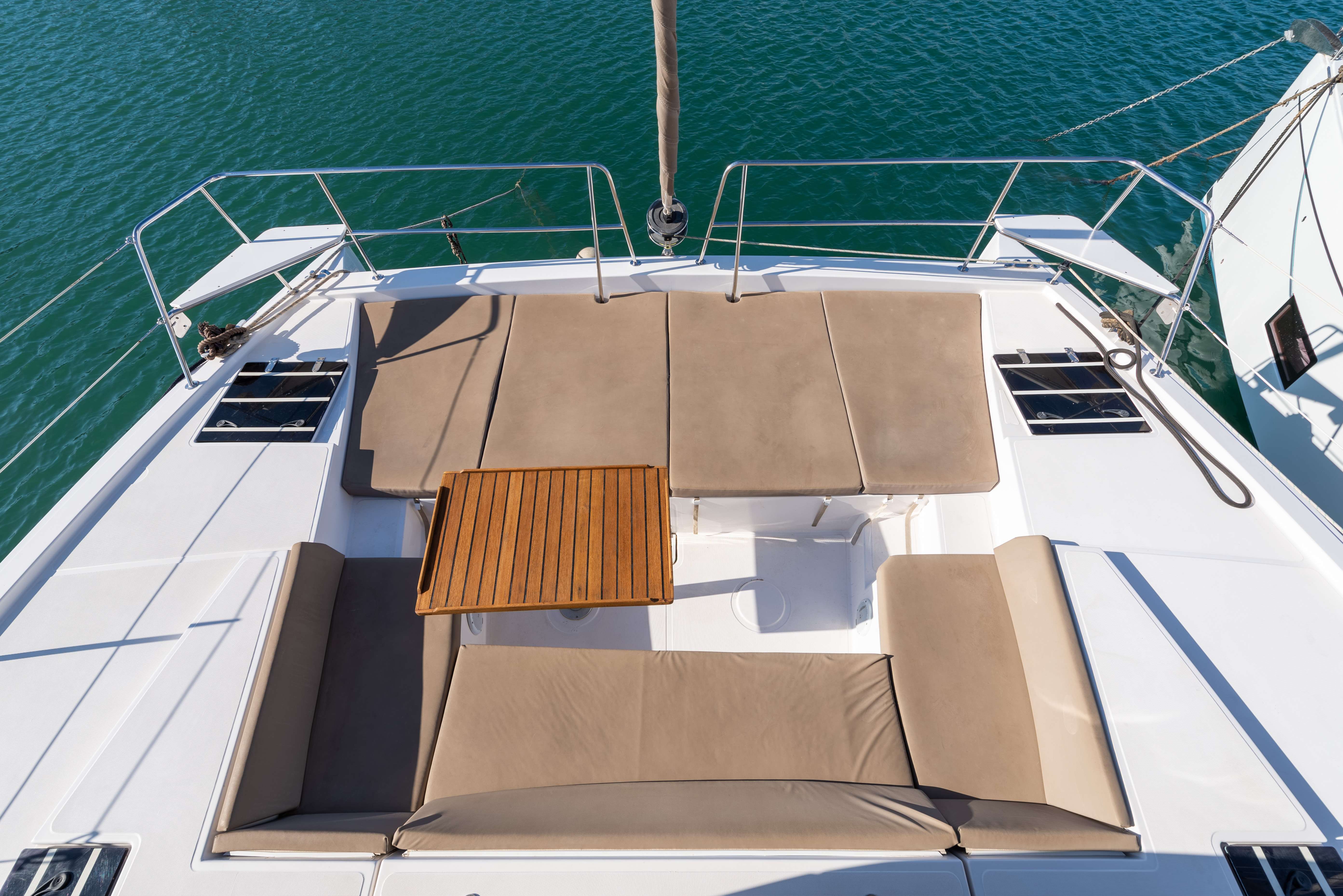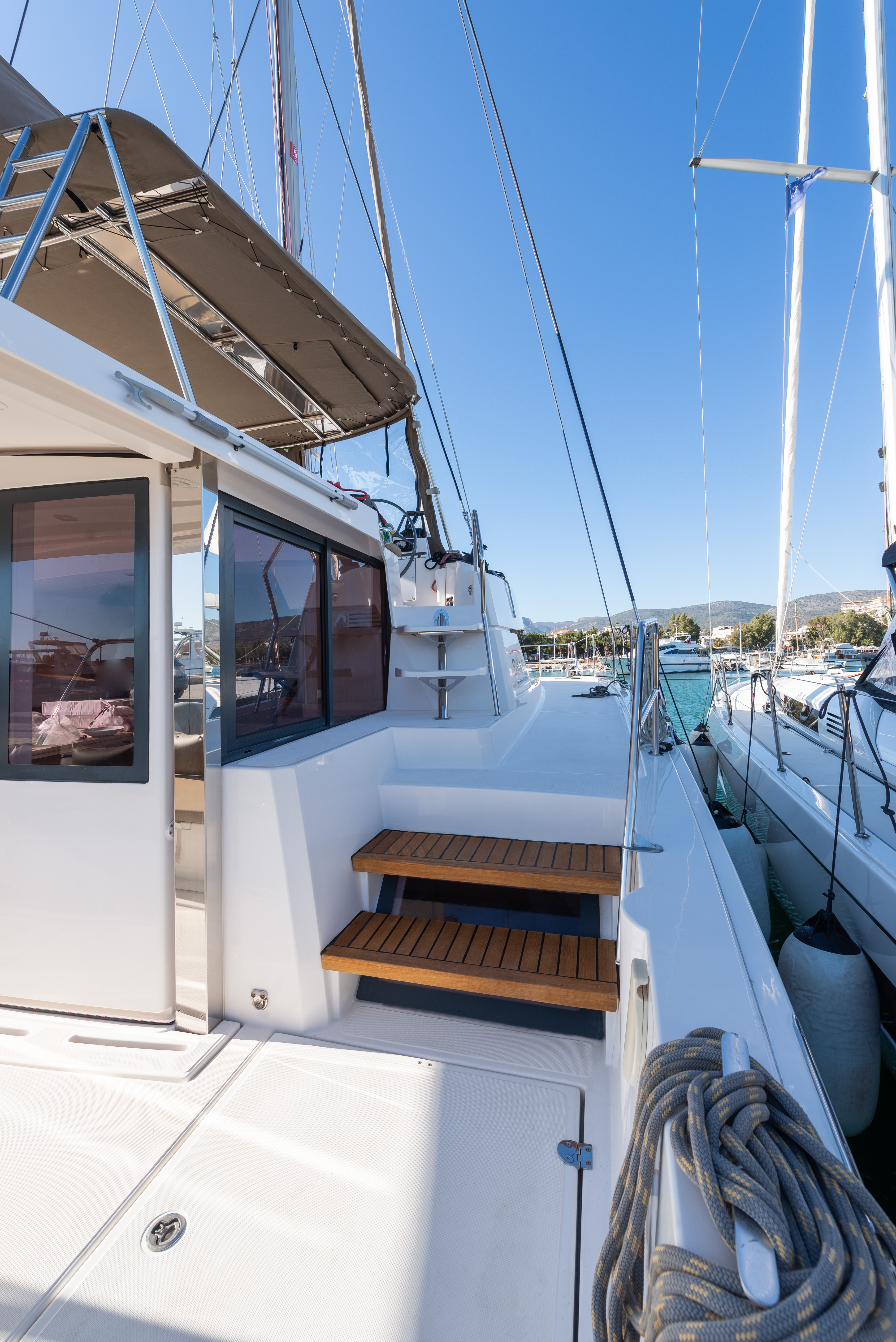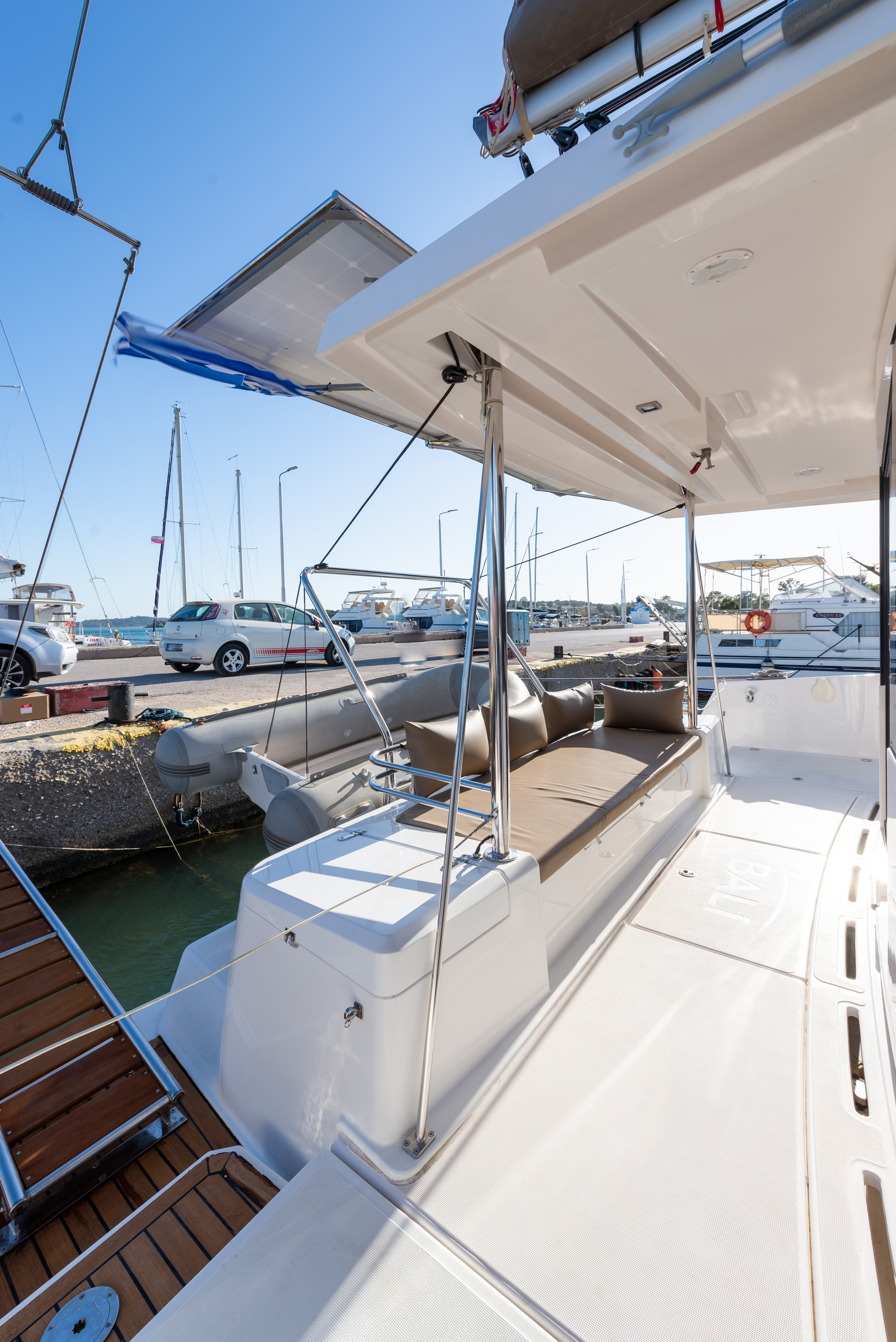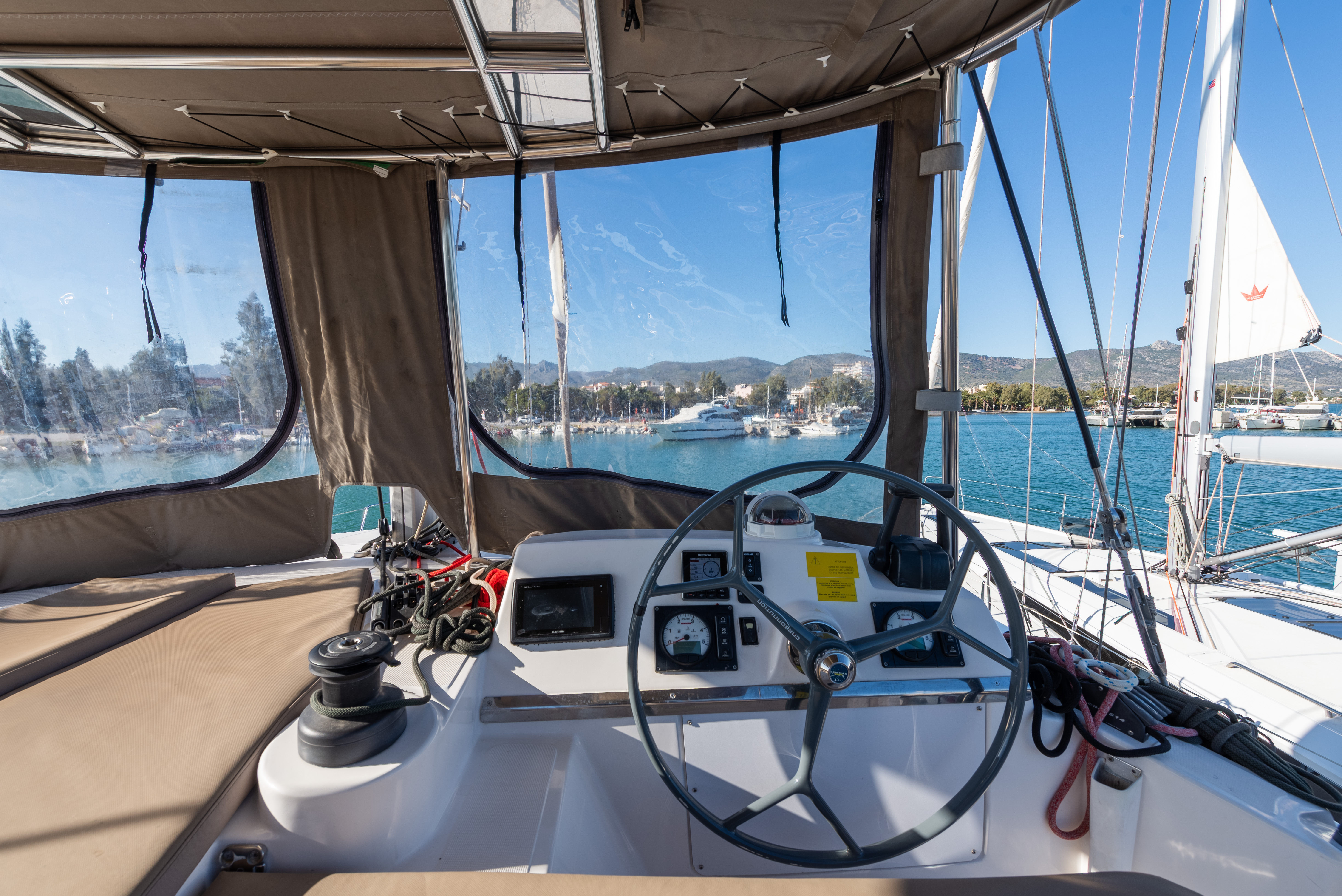 | Outside | Badeleiter, Biminitop, Cockpitdusche, Cockpitpolster, Cockpittisch, Deckpolster, elektr. Ankerwinsch, elektr. Winsch, Segel-Flickwerkzeug, Solaranlage, Sonnendeck, Sprayhood, Treibanker, Windex |