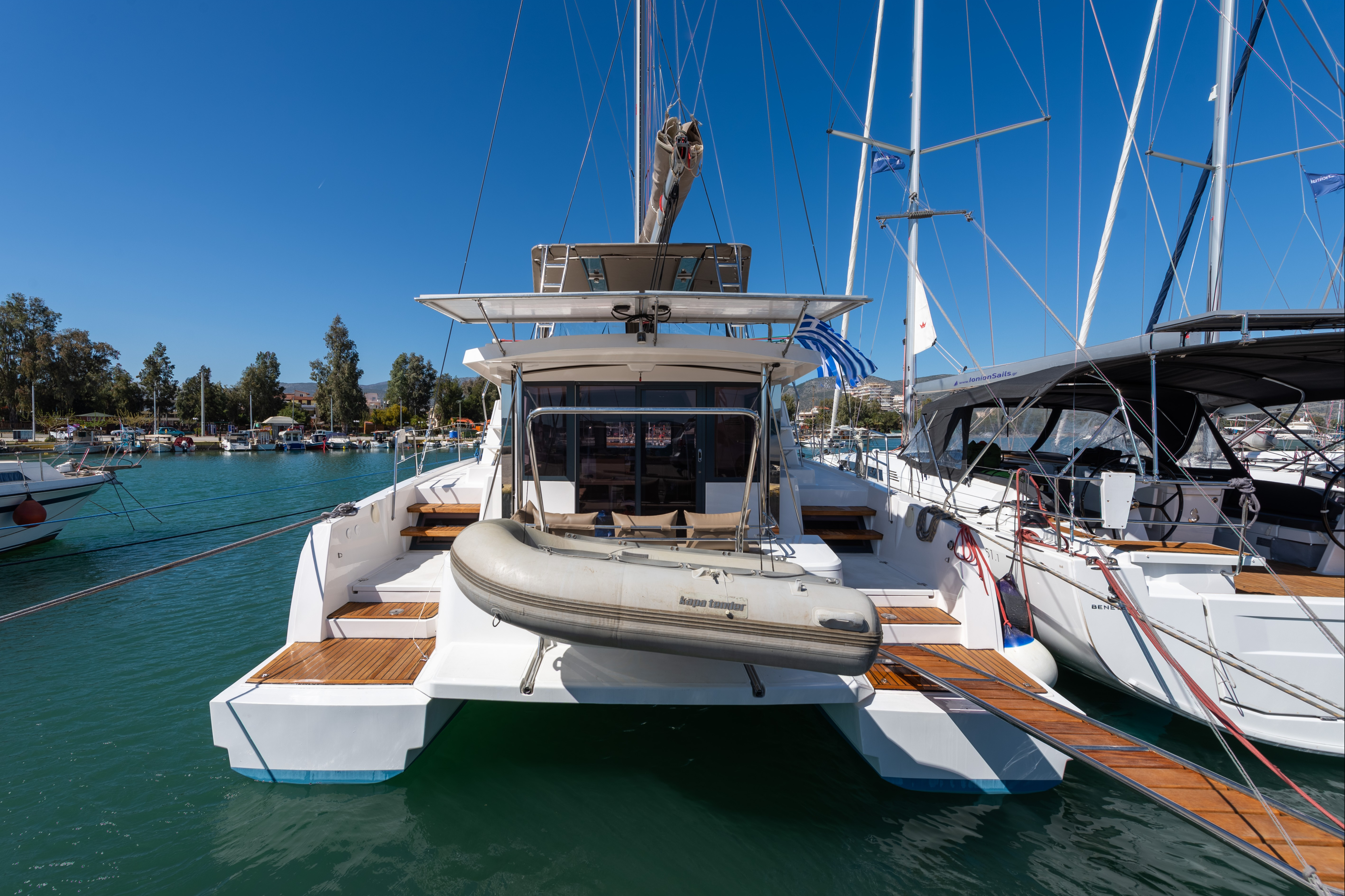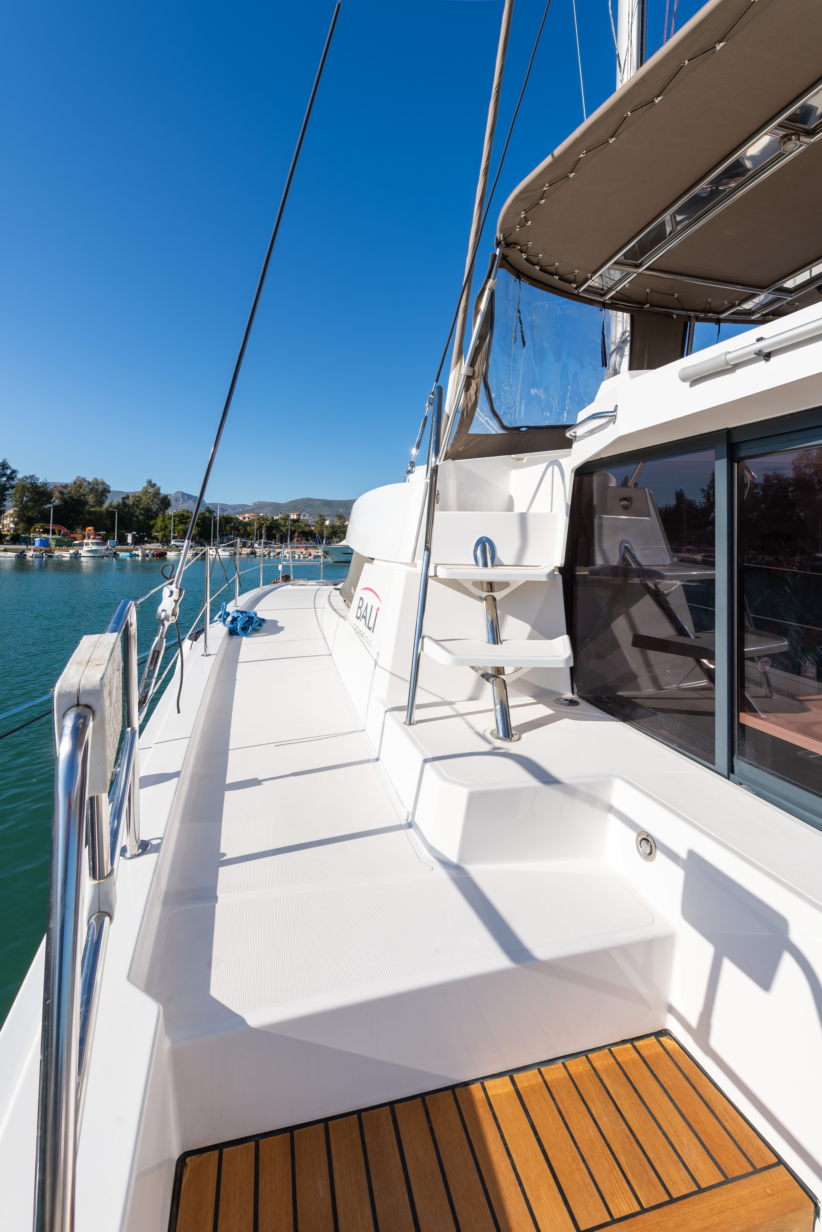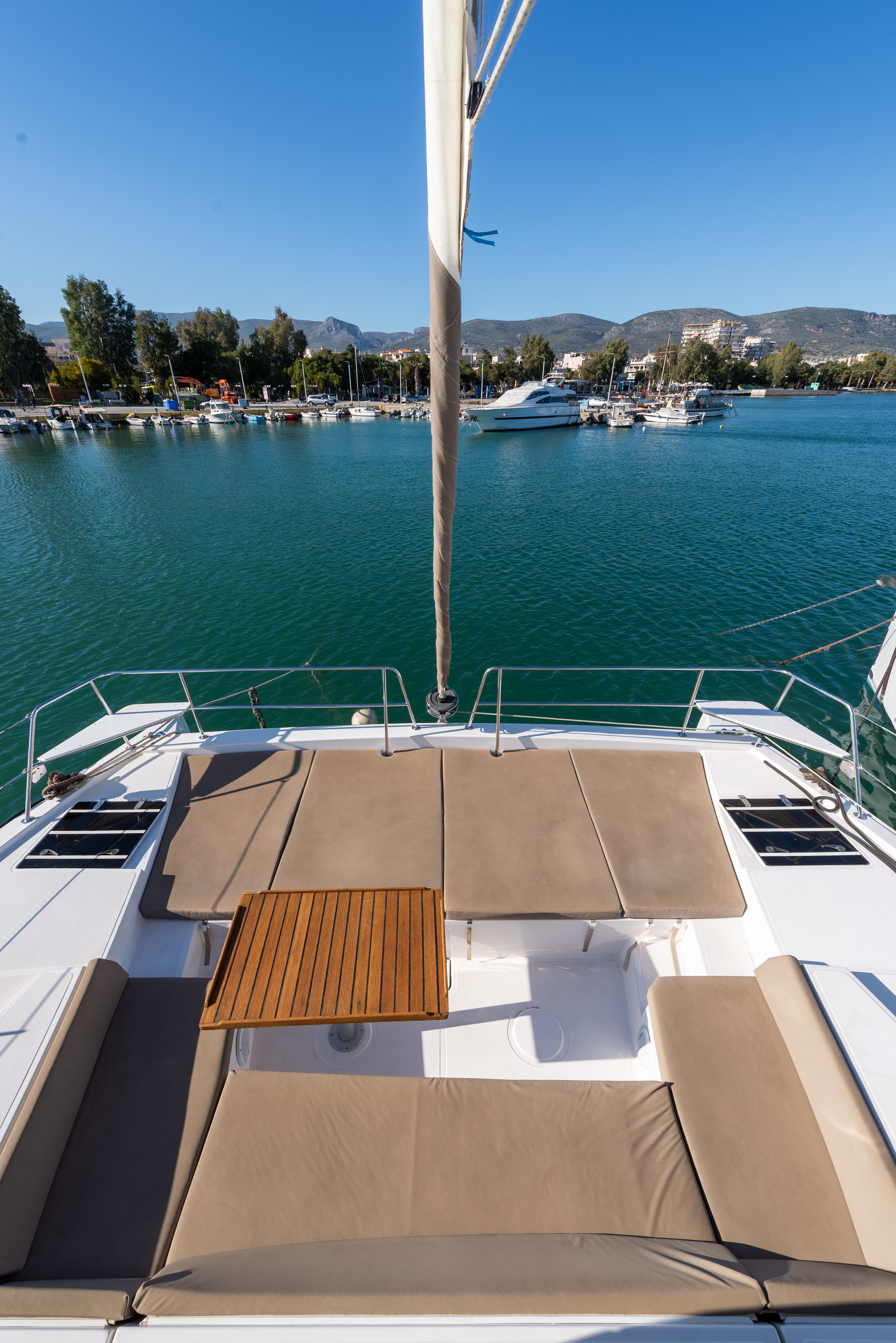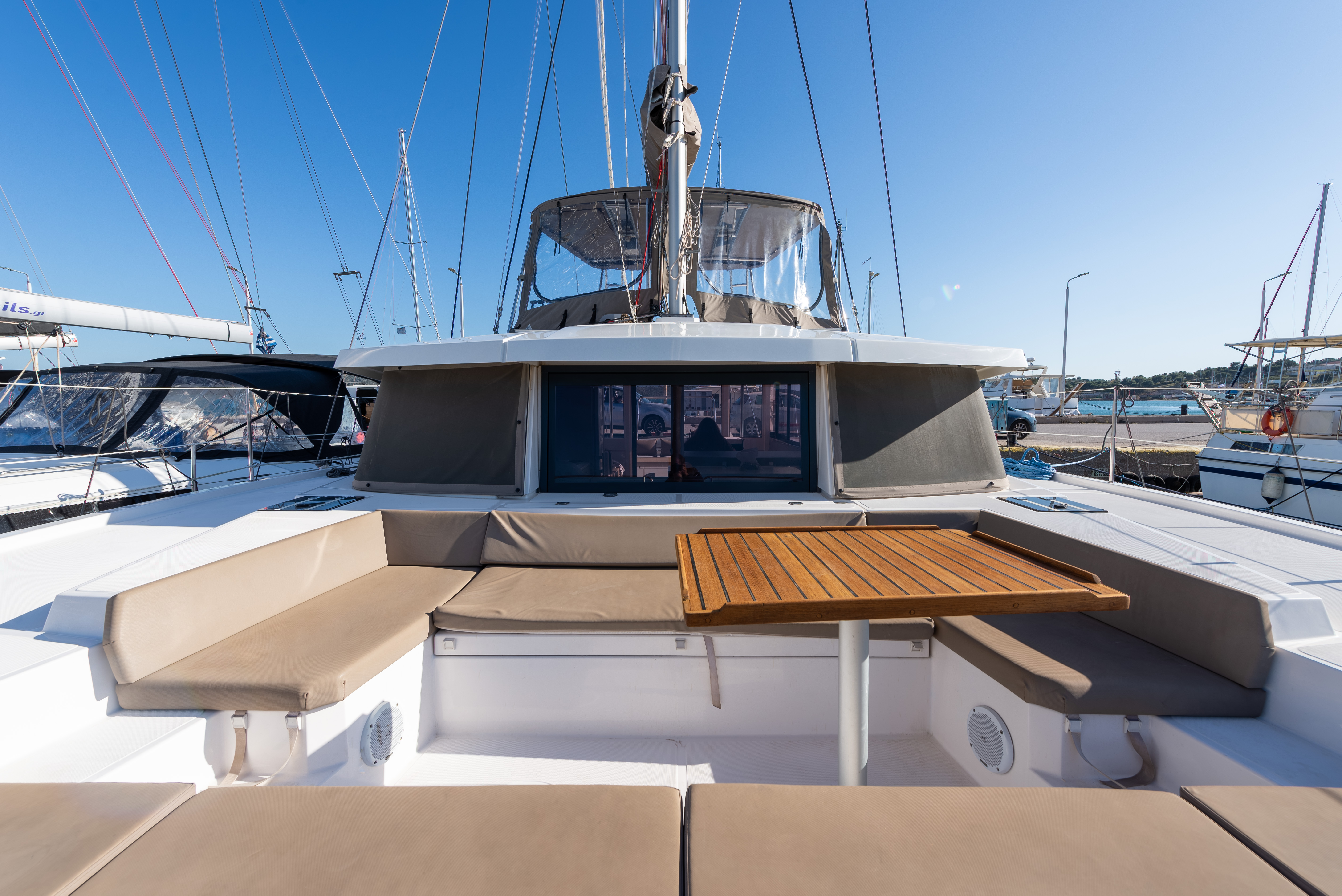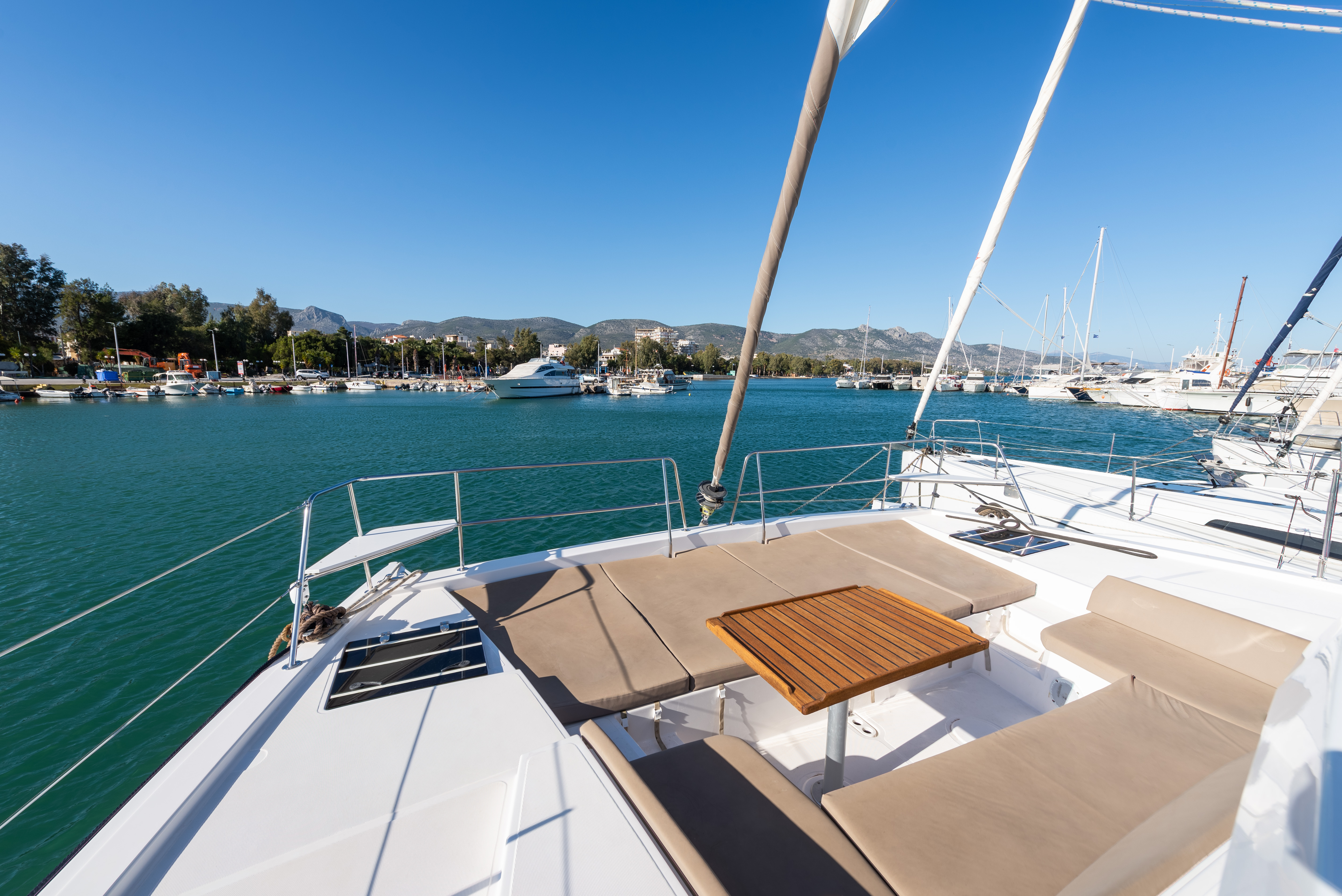 | Outside | Badeleiter, Biminitop, Cockpitdusche, Cockpitpolster, Cockpittisch, Deckpolster, elektr. Ankerwinsch, elektr. Winsch, Segel-Flickwerkzeug, Solaranlage, Sonnendeck, Sprayhood, Treibanker, Windex |