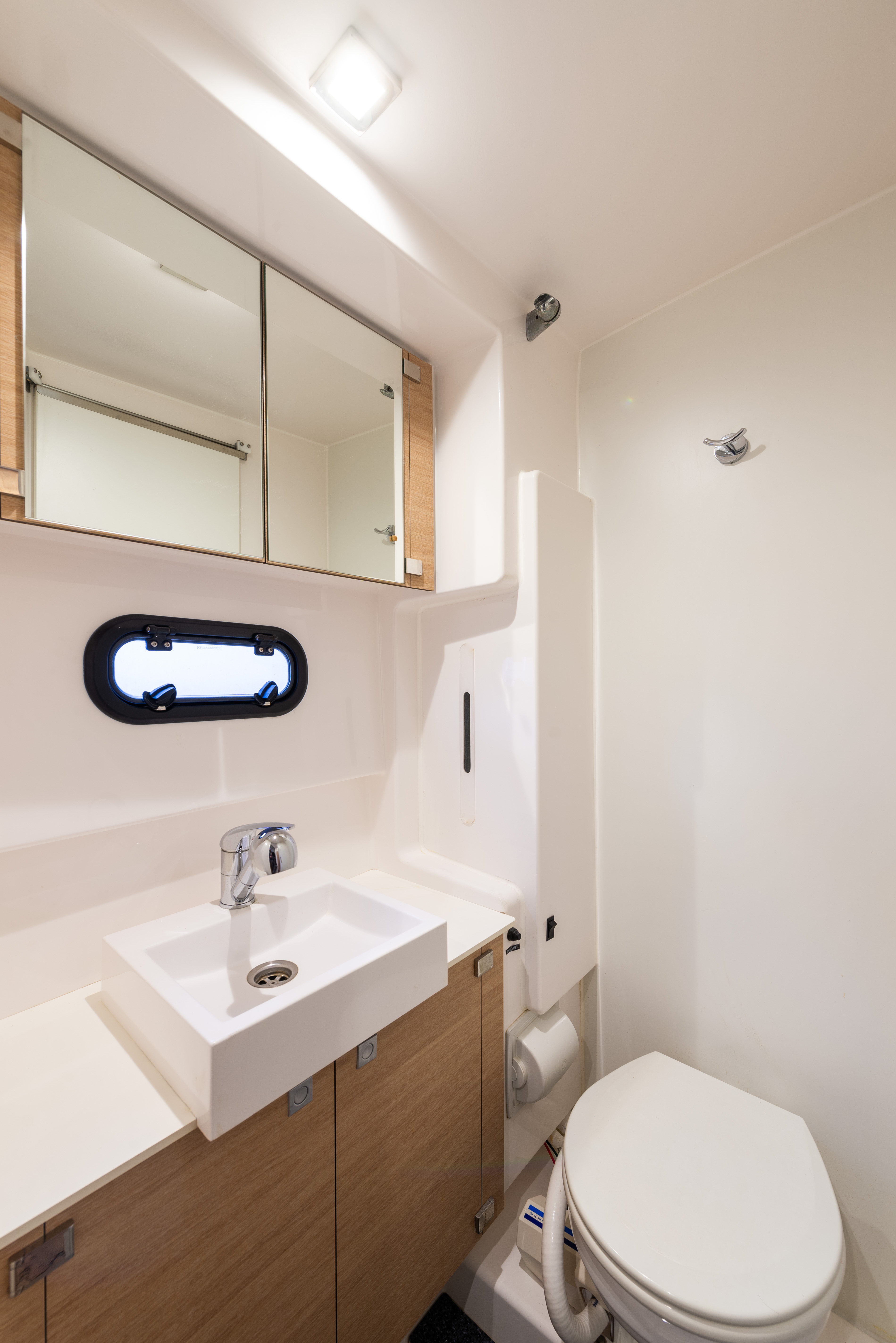 | Inside | 220V Steckdosen, Borduhr, Fäkalientank, Gasherd, Generator, Klimaanlage (ohne Landstrombedarf), Klimaanlage in den Kabinen, Kühlschrank, Pantryausstattung, Radio mit CD, USB Steckdosen in den Kabinen, Ventilatoren in Kabinen, Warmwasser, WC (elektr.) |