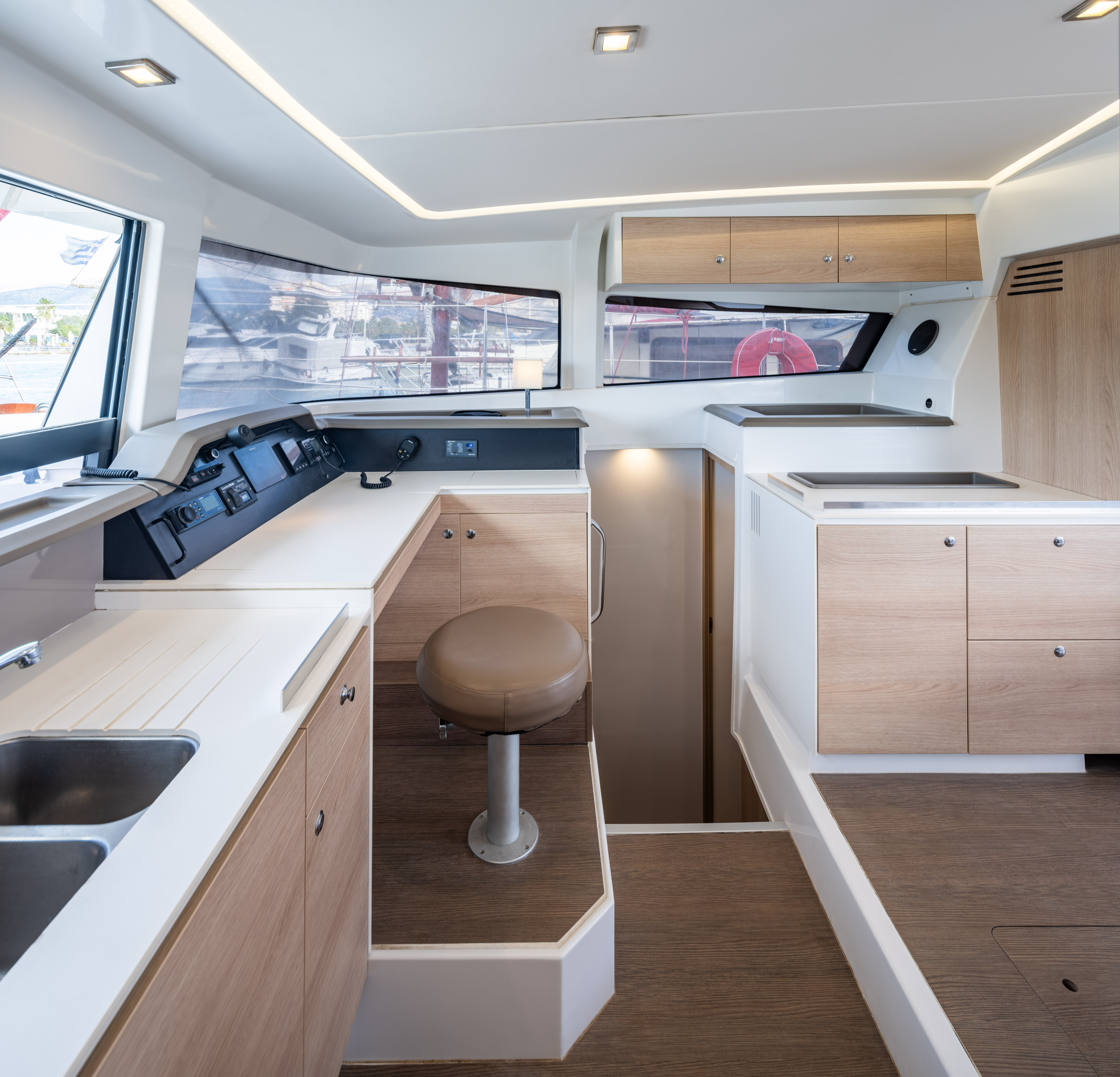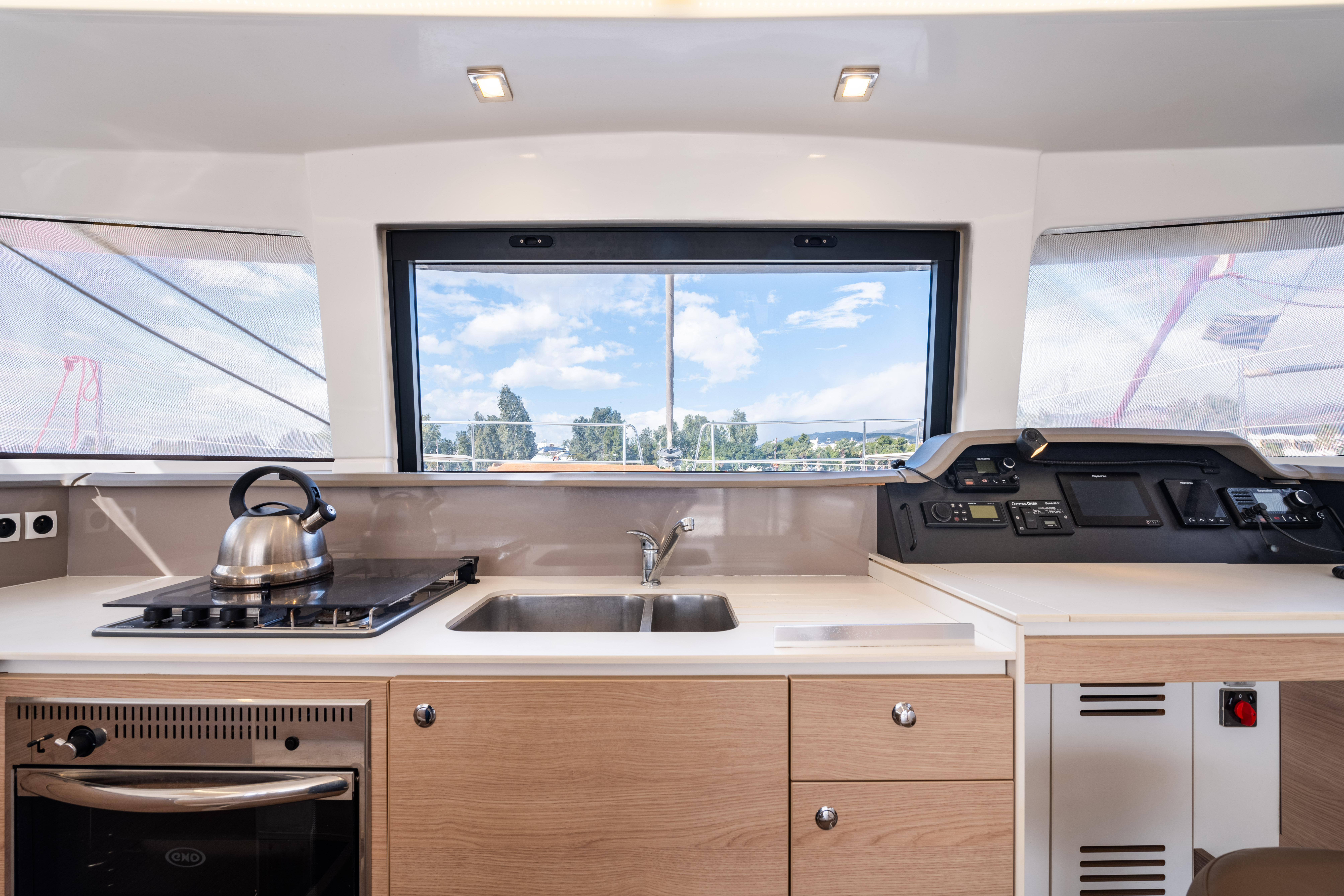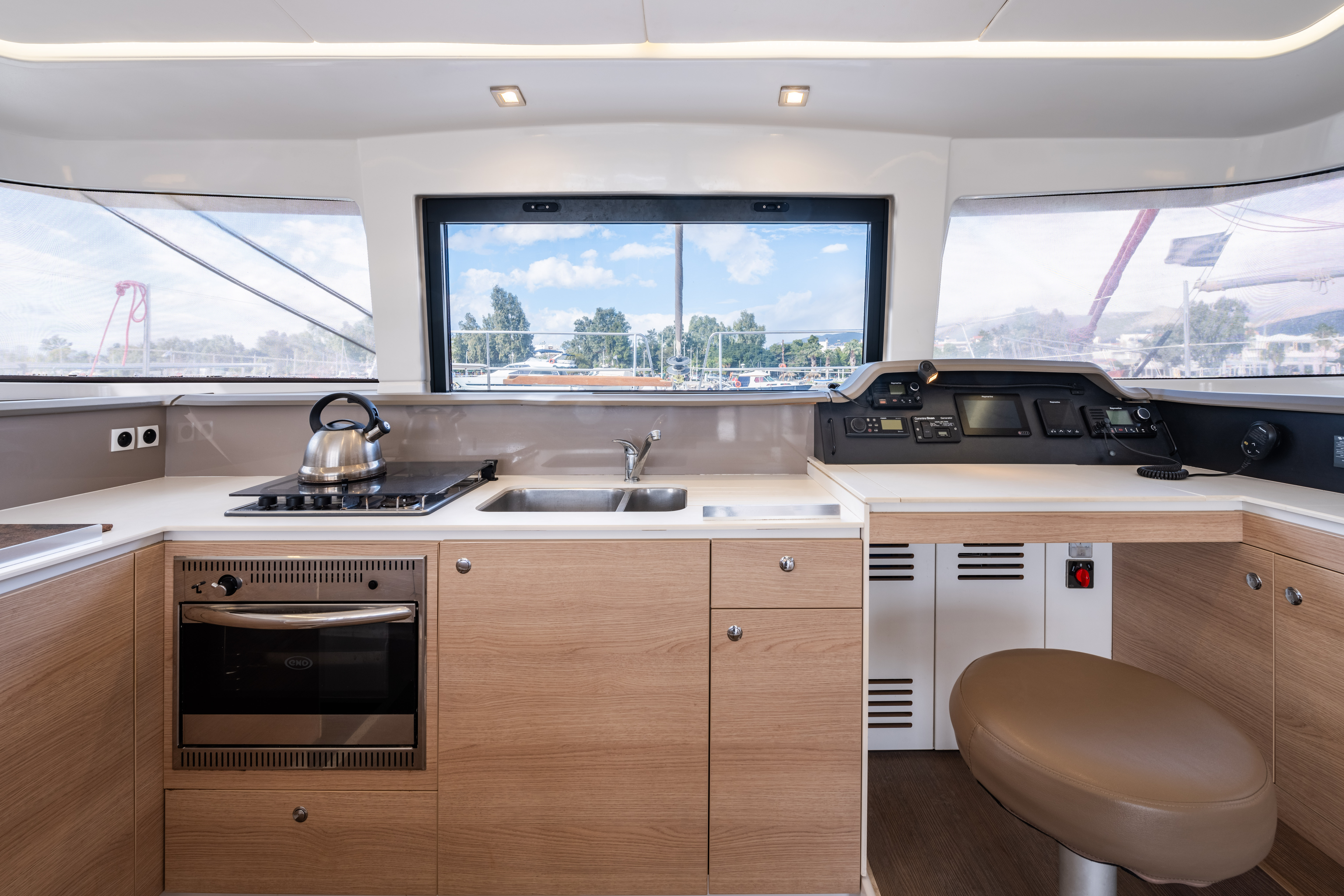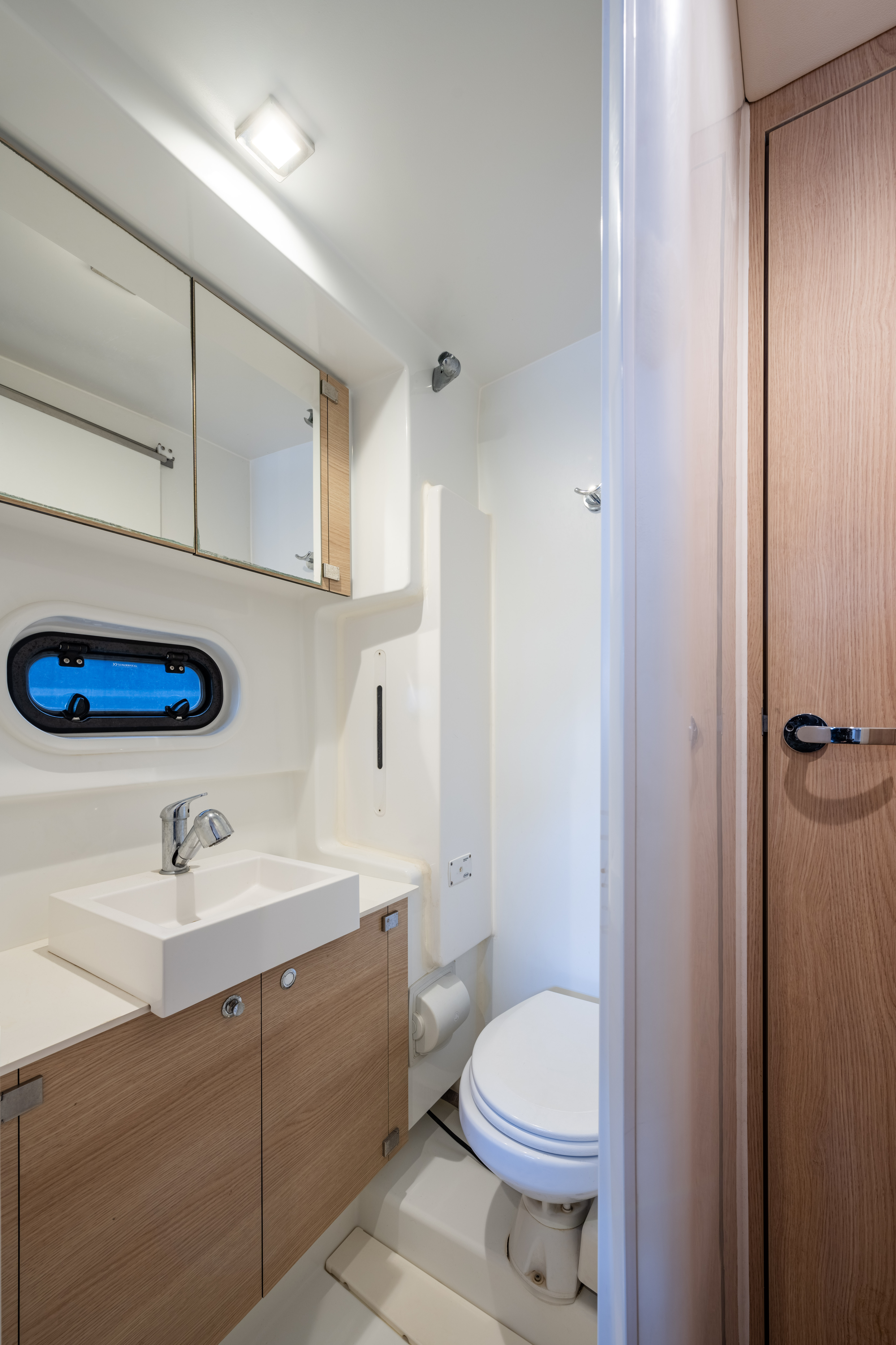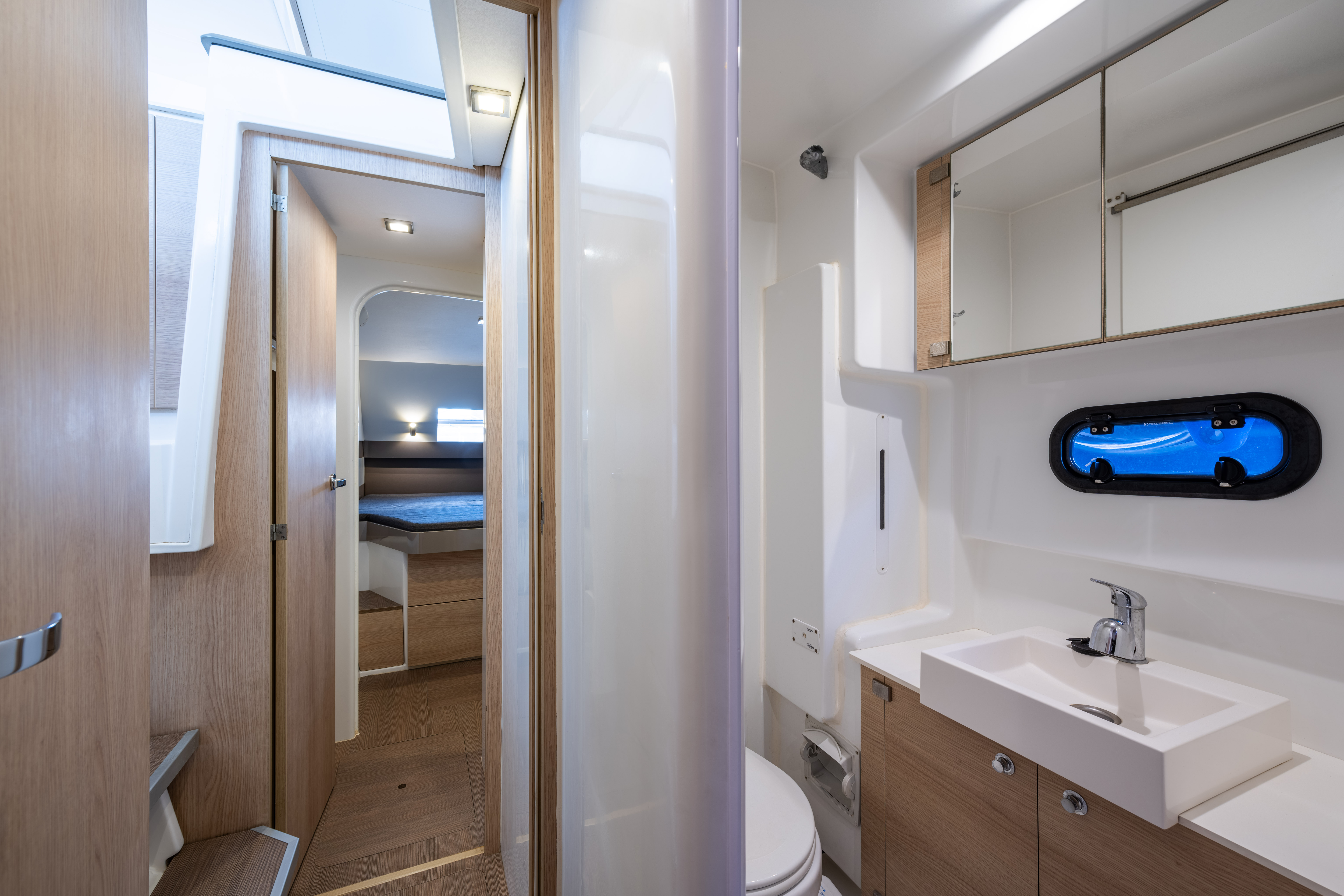 | Inside | 12V Steckdose, 220V Steckdosen, Borduhr, Fäkalientank, Gasherd, Generator, Klimaanlage (ohne Landstrombedarf), Klimaanlage in den Kabinen, Kühlschrank, Pantryausstattung, USB Steckdosen in den Kabinen, Ventilatoren in Kabinen, Warmwasser, Watermaker |