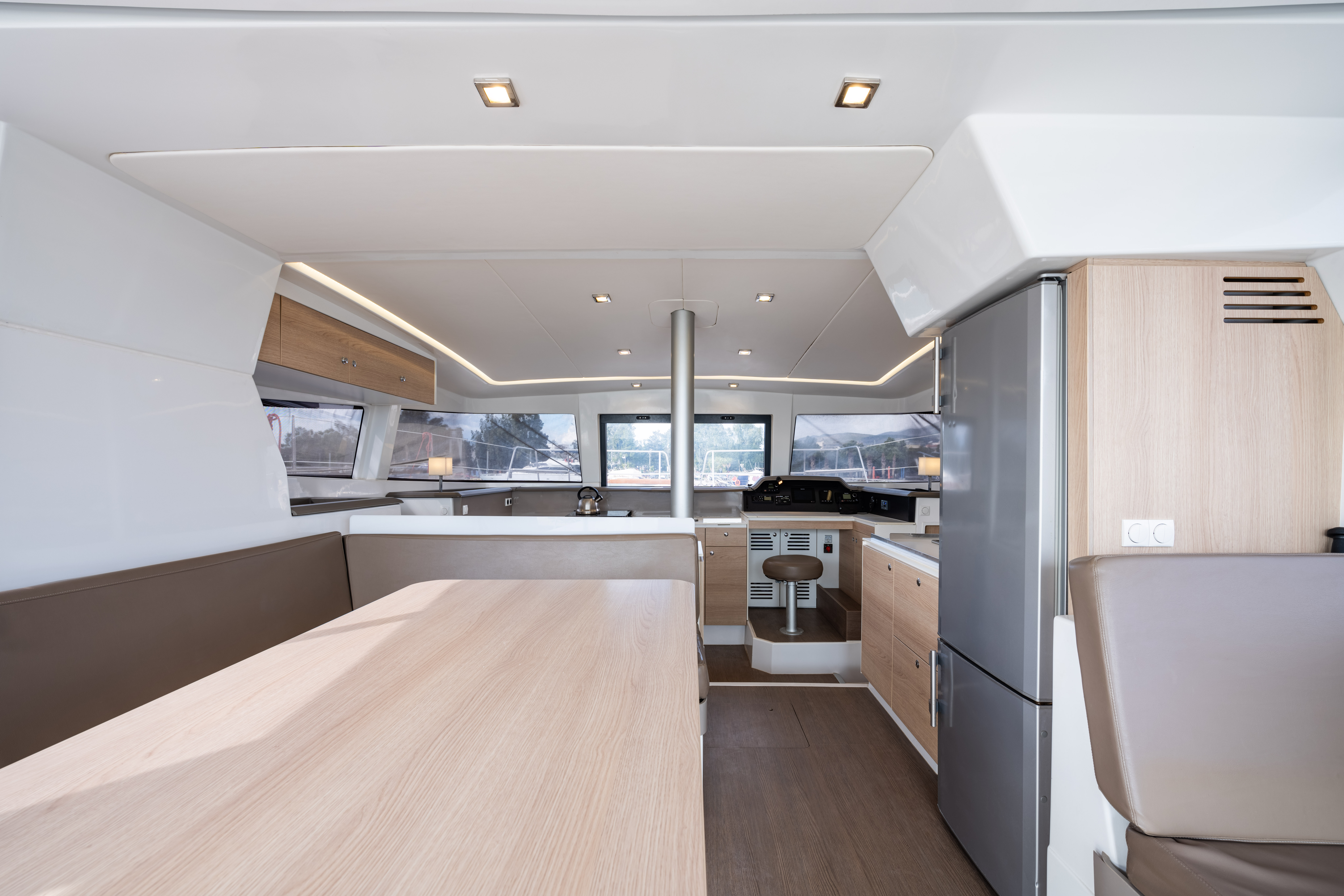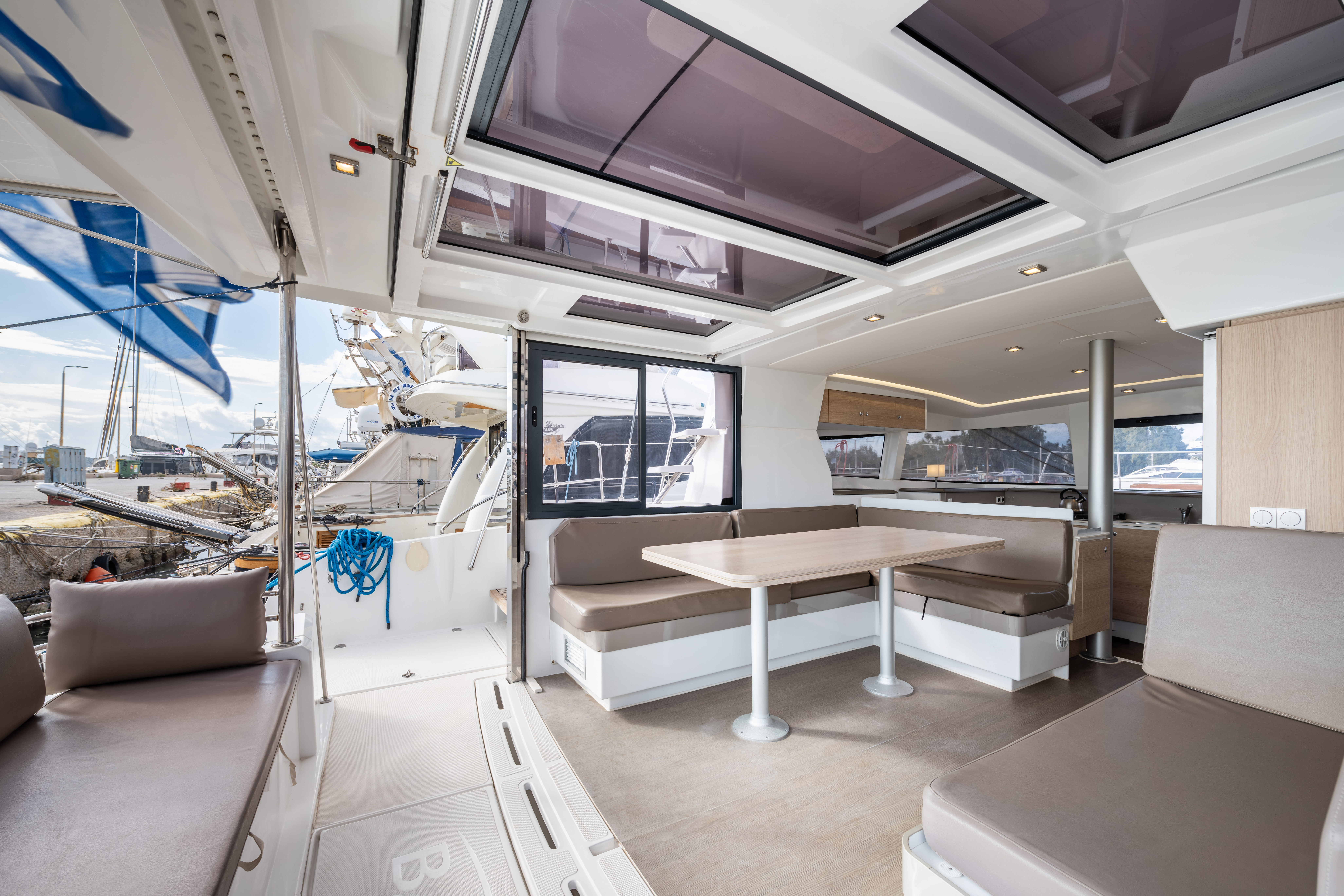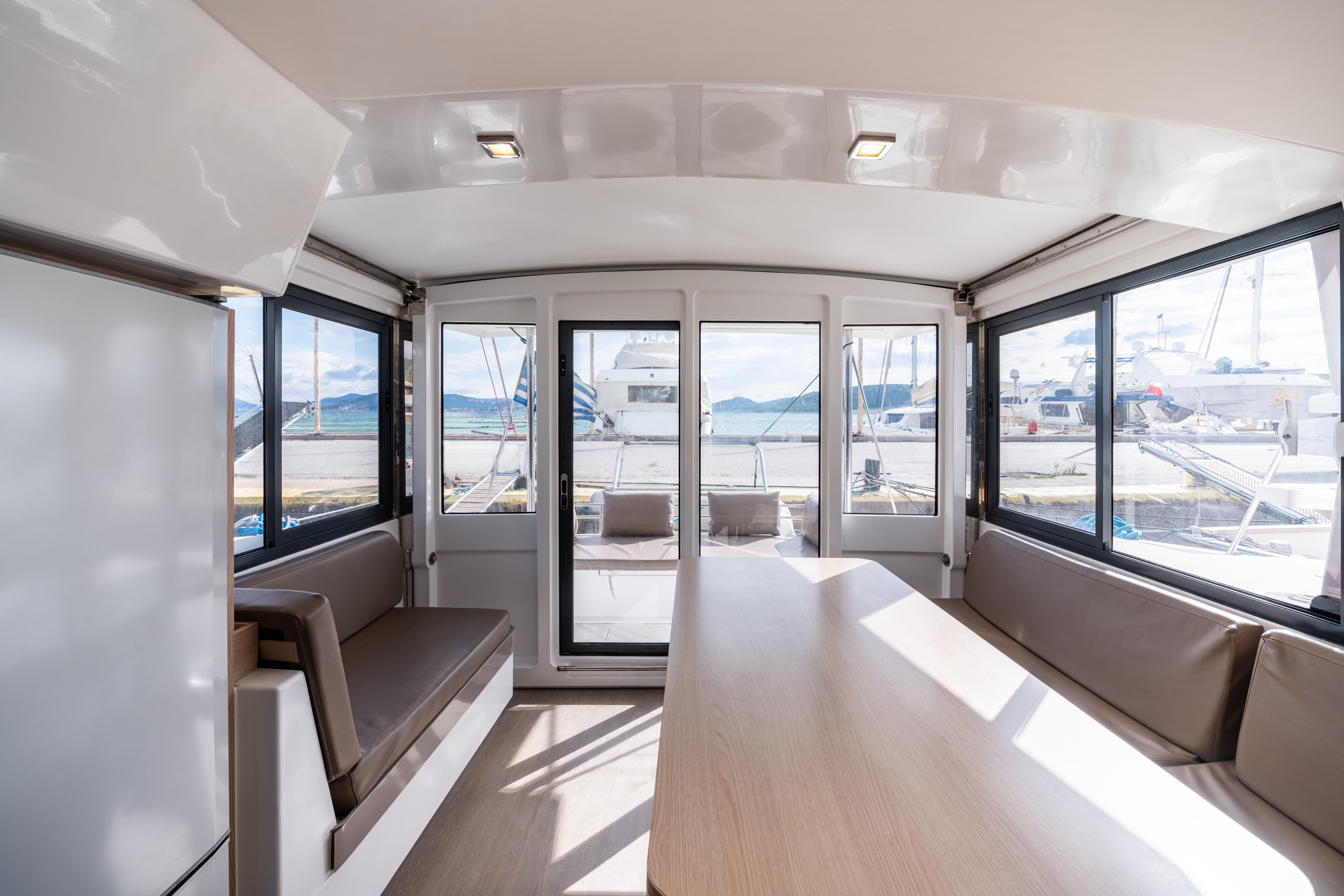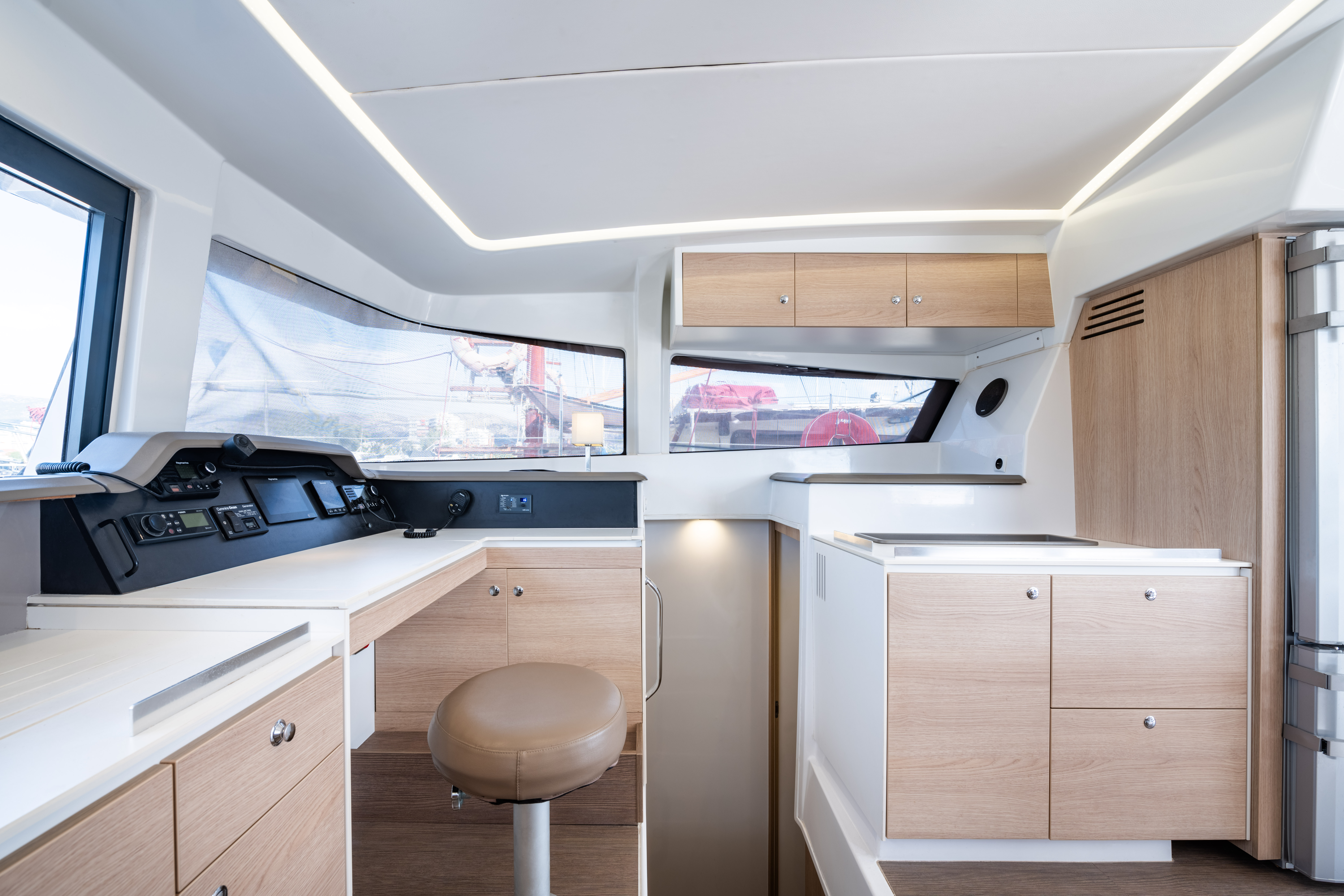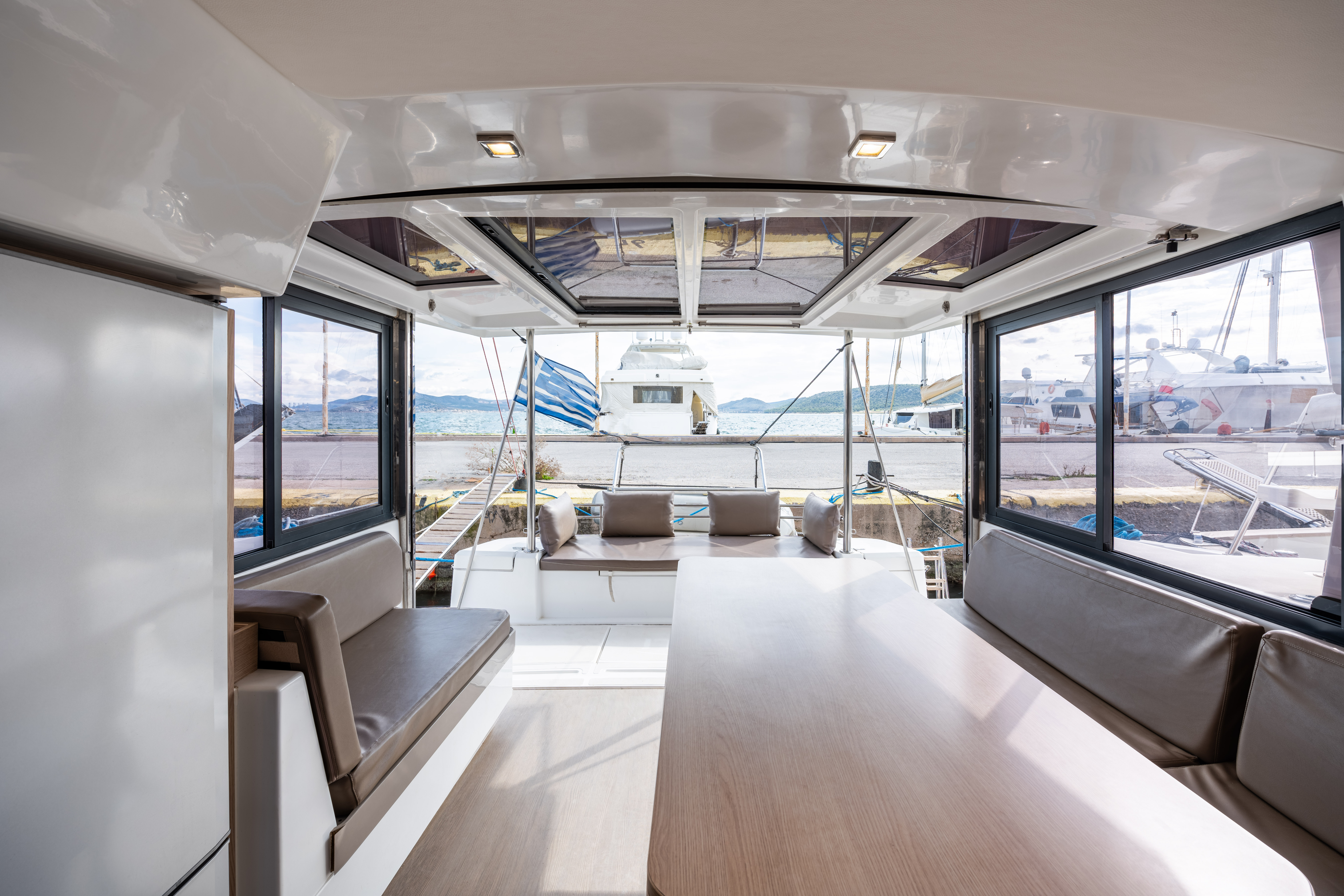 | Inside | 12V Steckdose, 220V Steckdosen, Borduhr, Fäkalientank, Gasherd, Generator, Klimaanlage (ohne Landstrombedarf), Klimaanlage in den Kabinen, Kühlschrank, Pantryausstattung, USB Steckdosen in den Kabinen, Ventilatoren in Kabinen, Warmwasser, Watermaker |