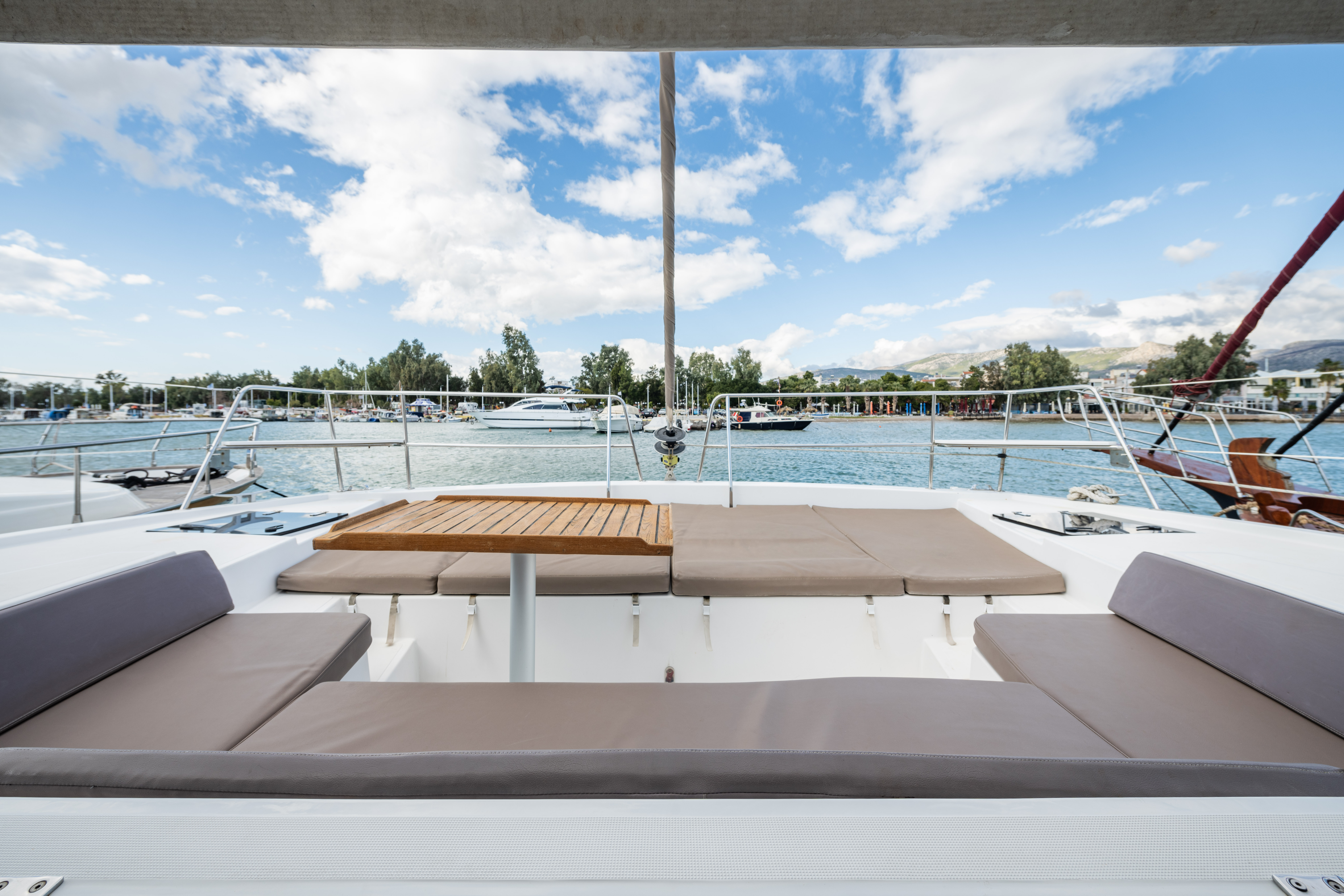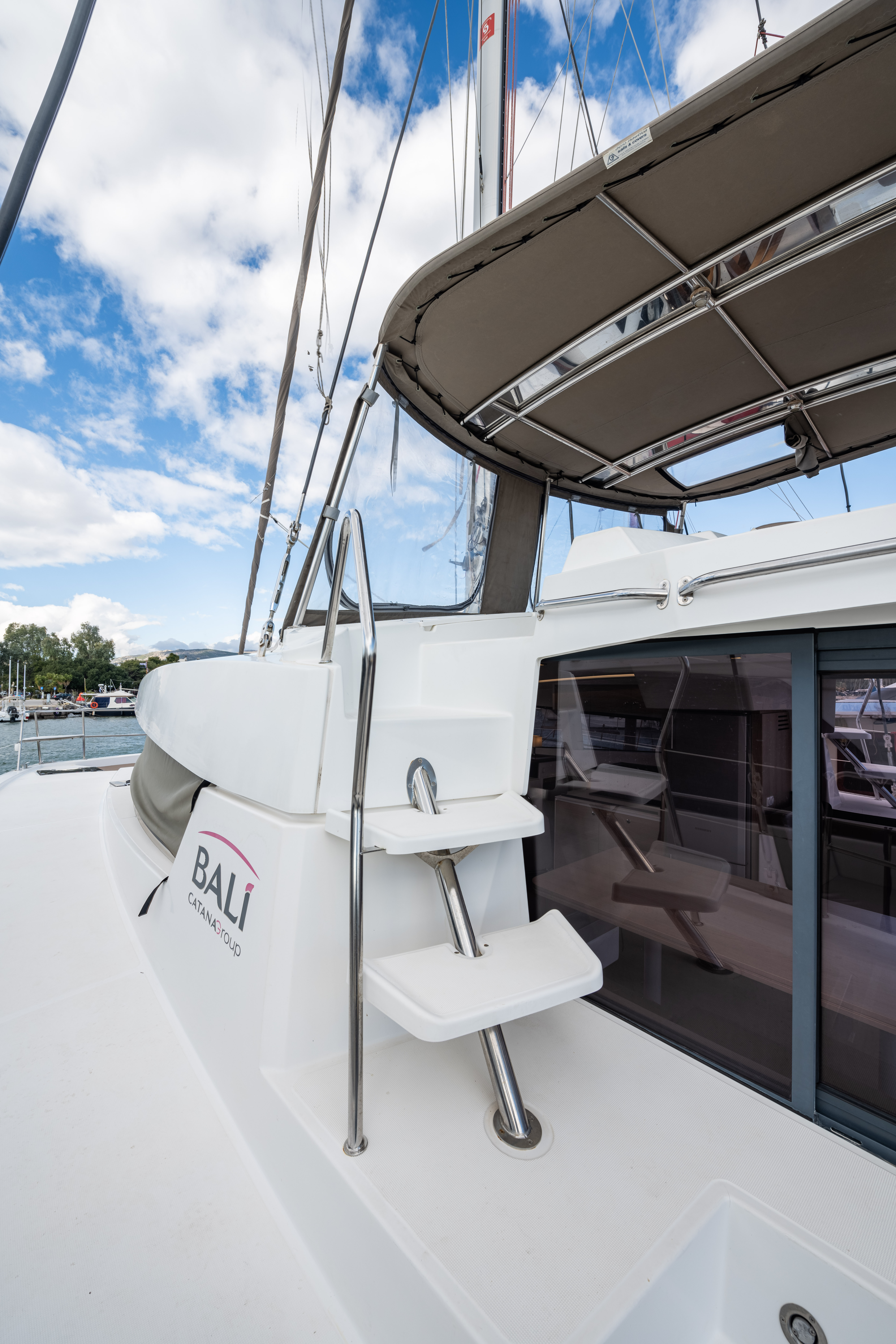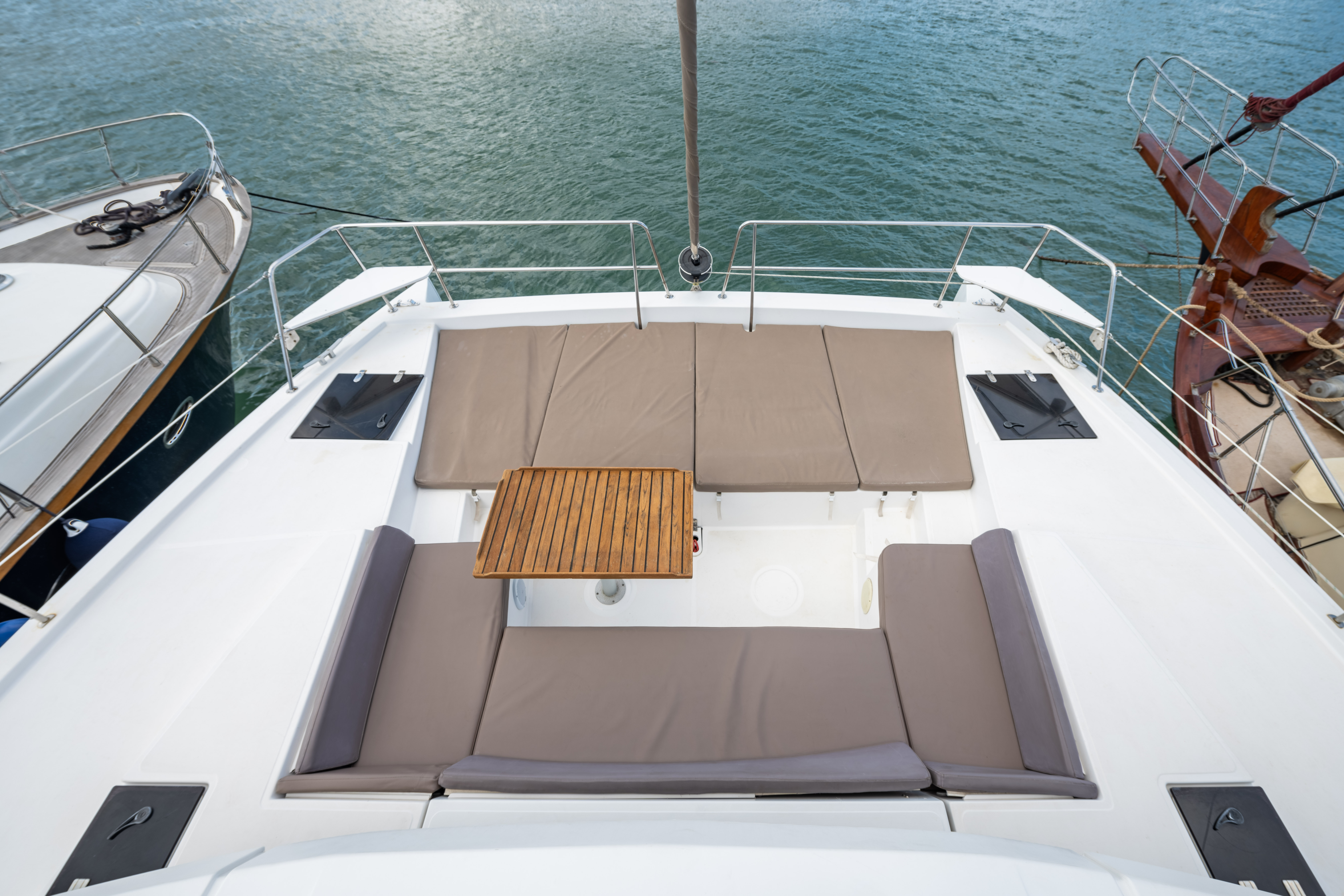 | Outside | Badeleiter, Cockpitdusche, Cockpitpolster, Cockpittisch, Deckpolster, elektr. Winsch, Segel-Flickwerkzeug, Solaranlage, Sonnendeck, Sprayhood, Treibanker |