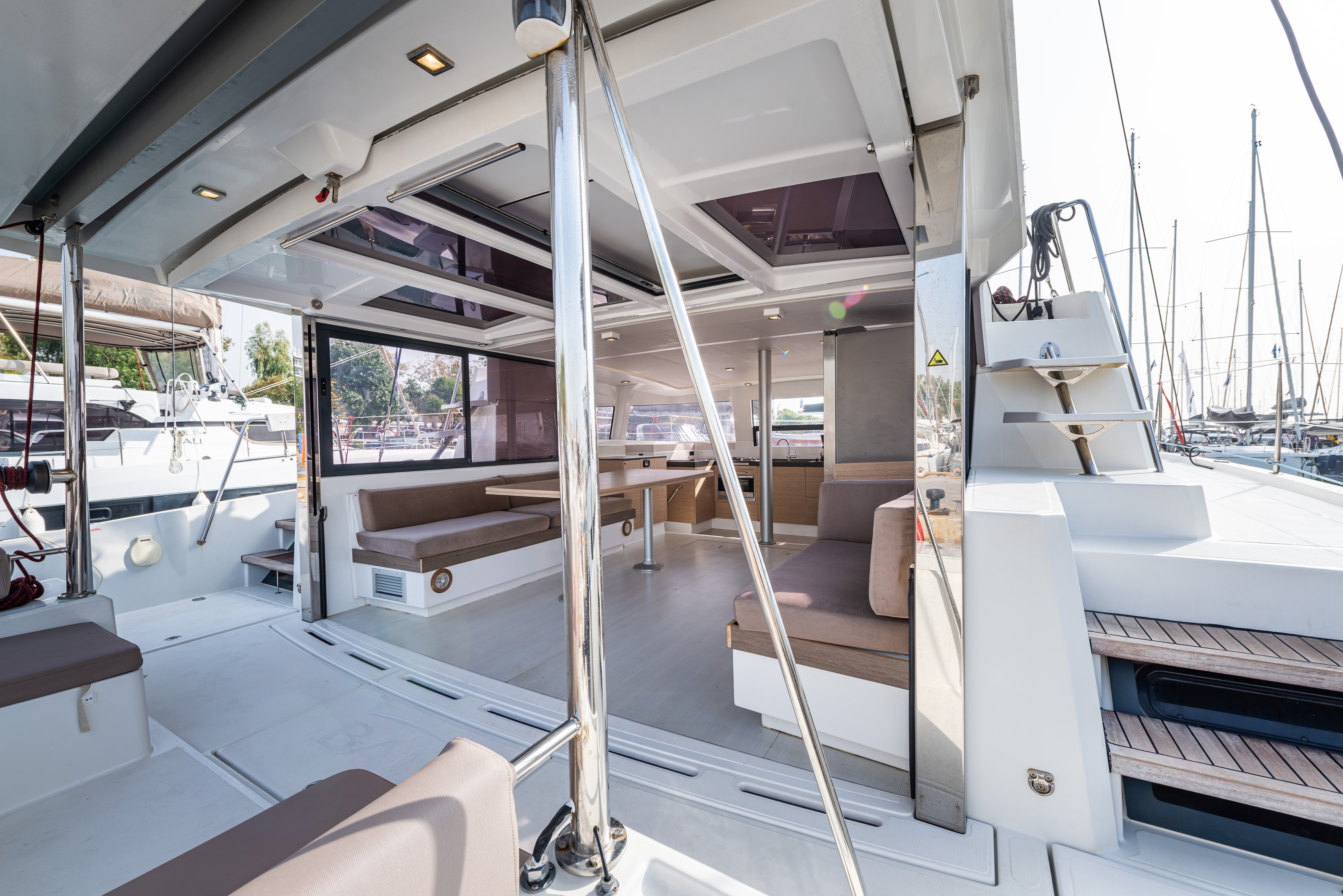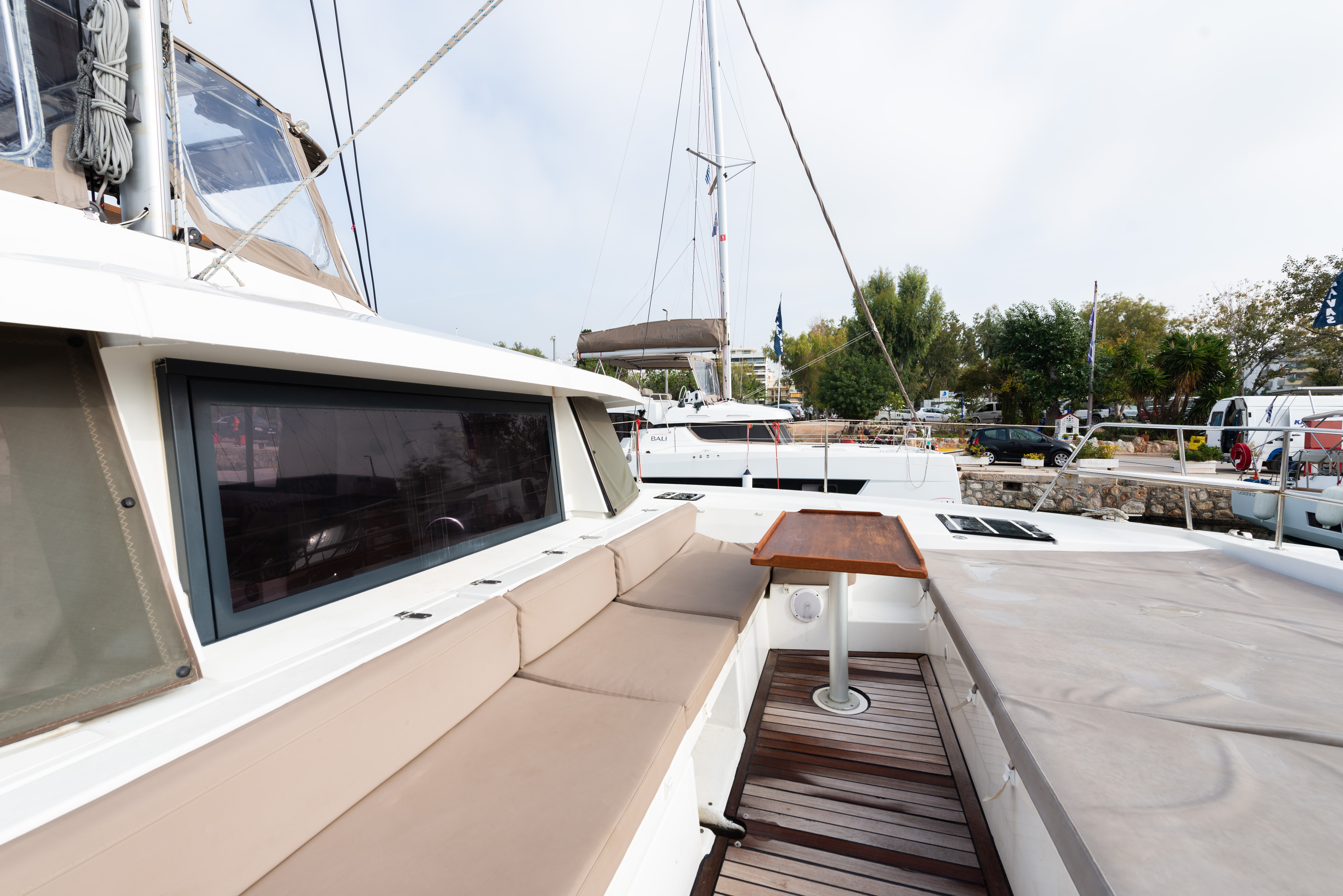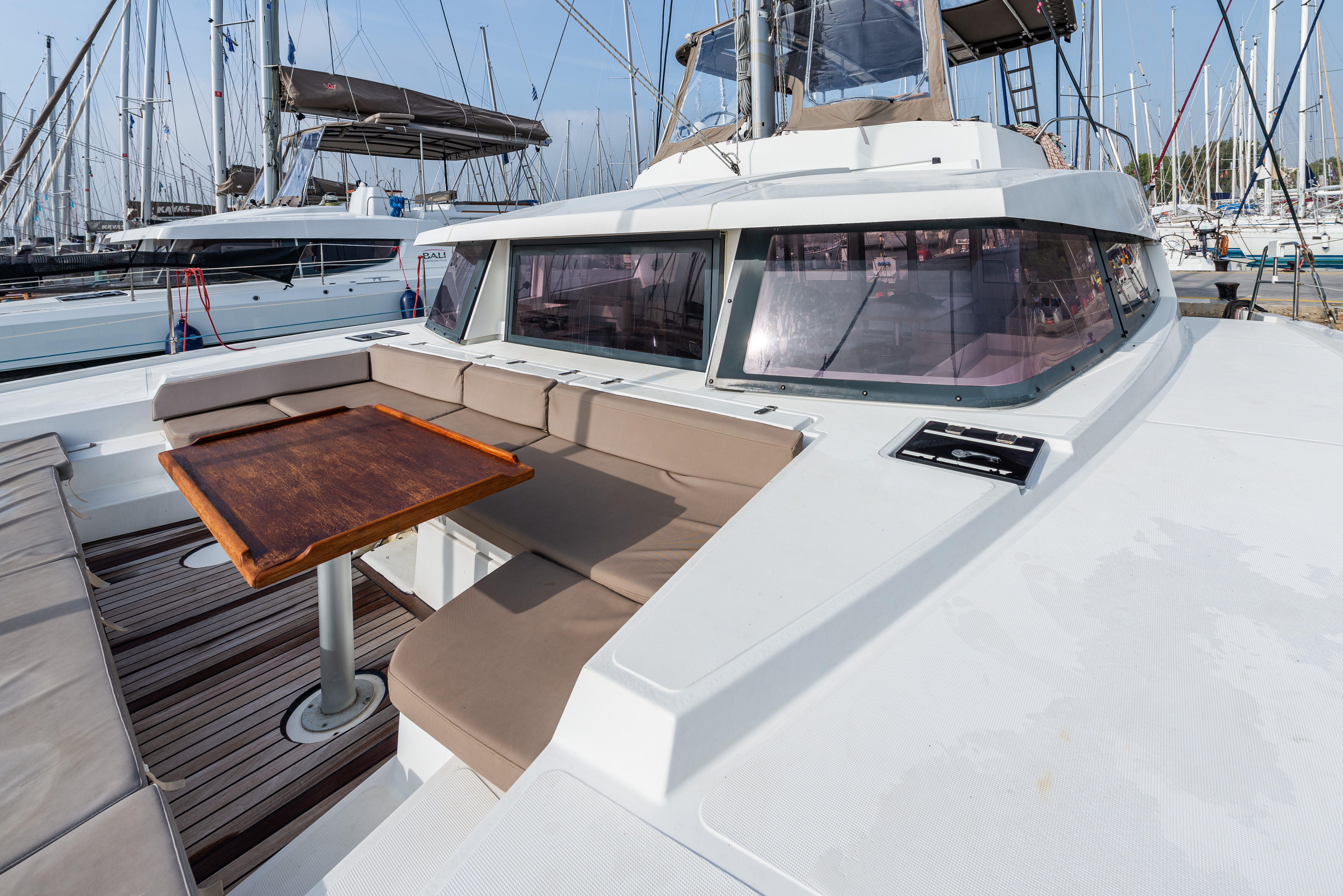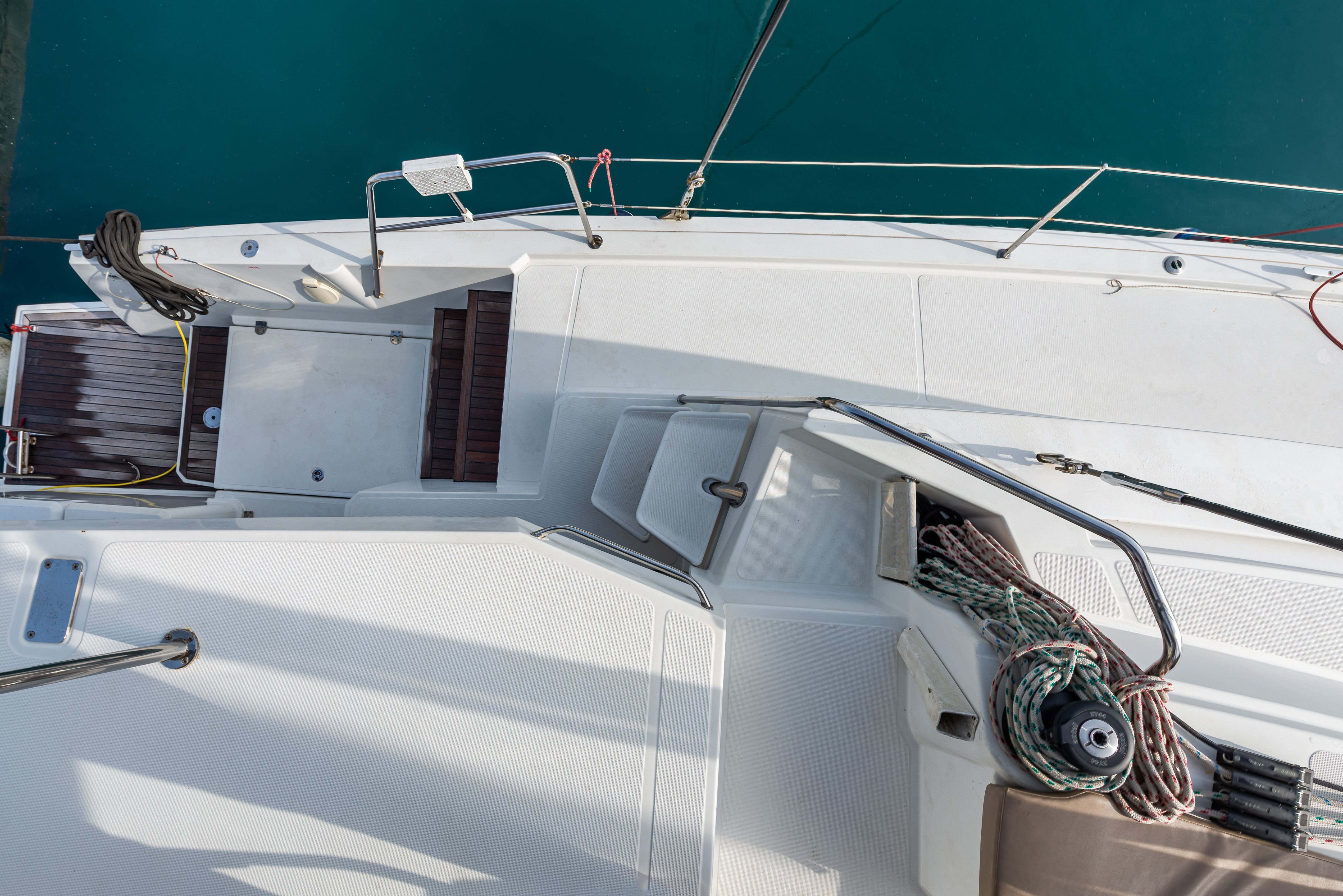 | Outside | Badeleiter, Biminitop, Cockpitdusche, Cockpitlautsprecher, Cockpittisch, Deckpolster, elektr. Ankerwinsch, elektr. Winsch, Segel-Flickwerkzeug, Solaranlage, Sprayhood, Treibanker, Windex |