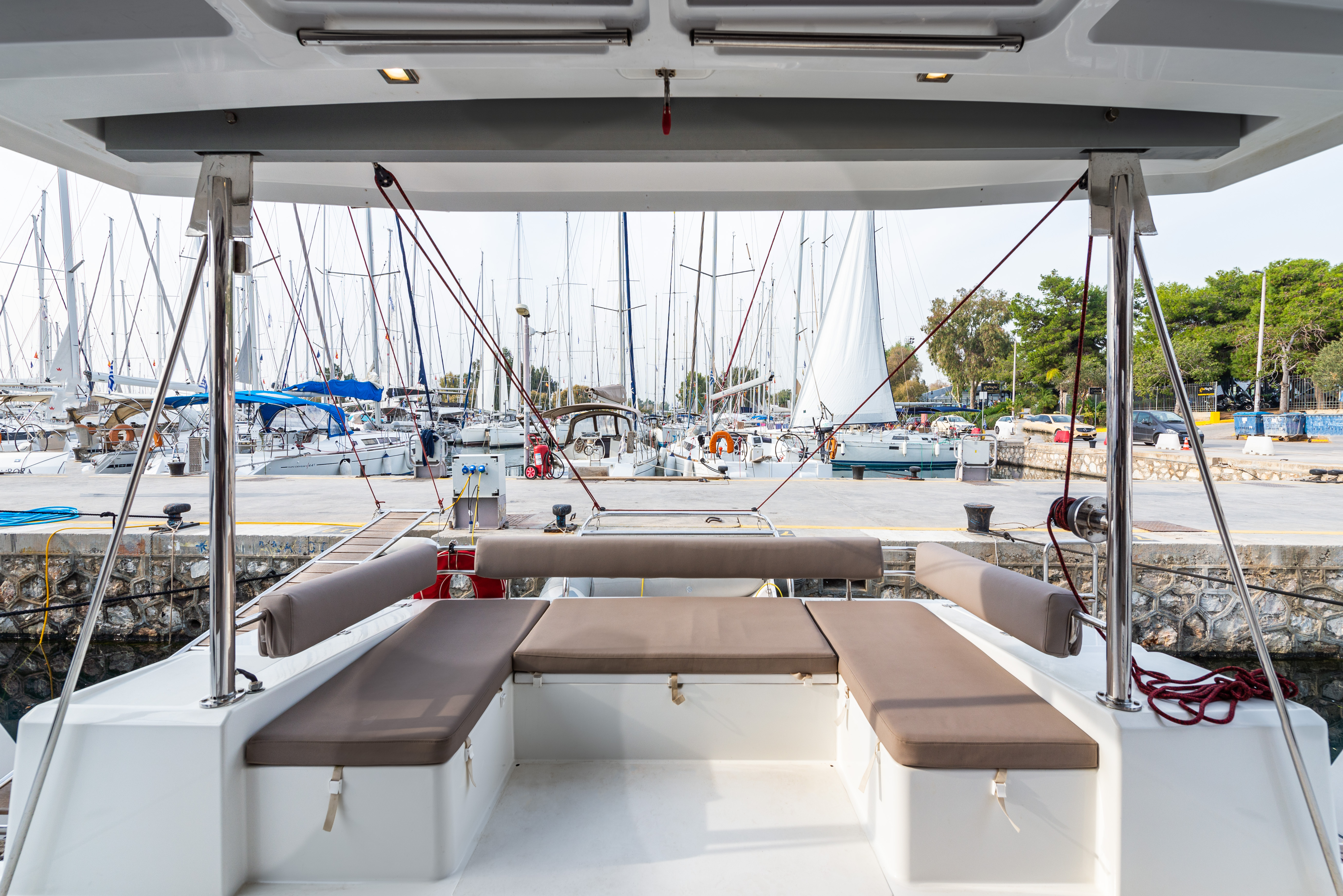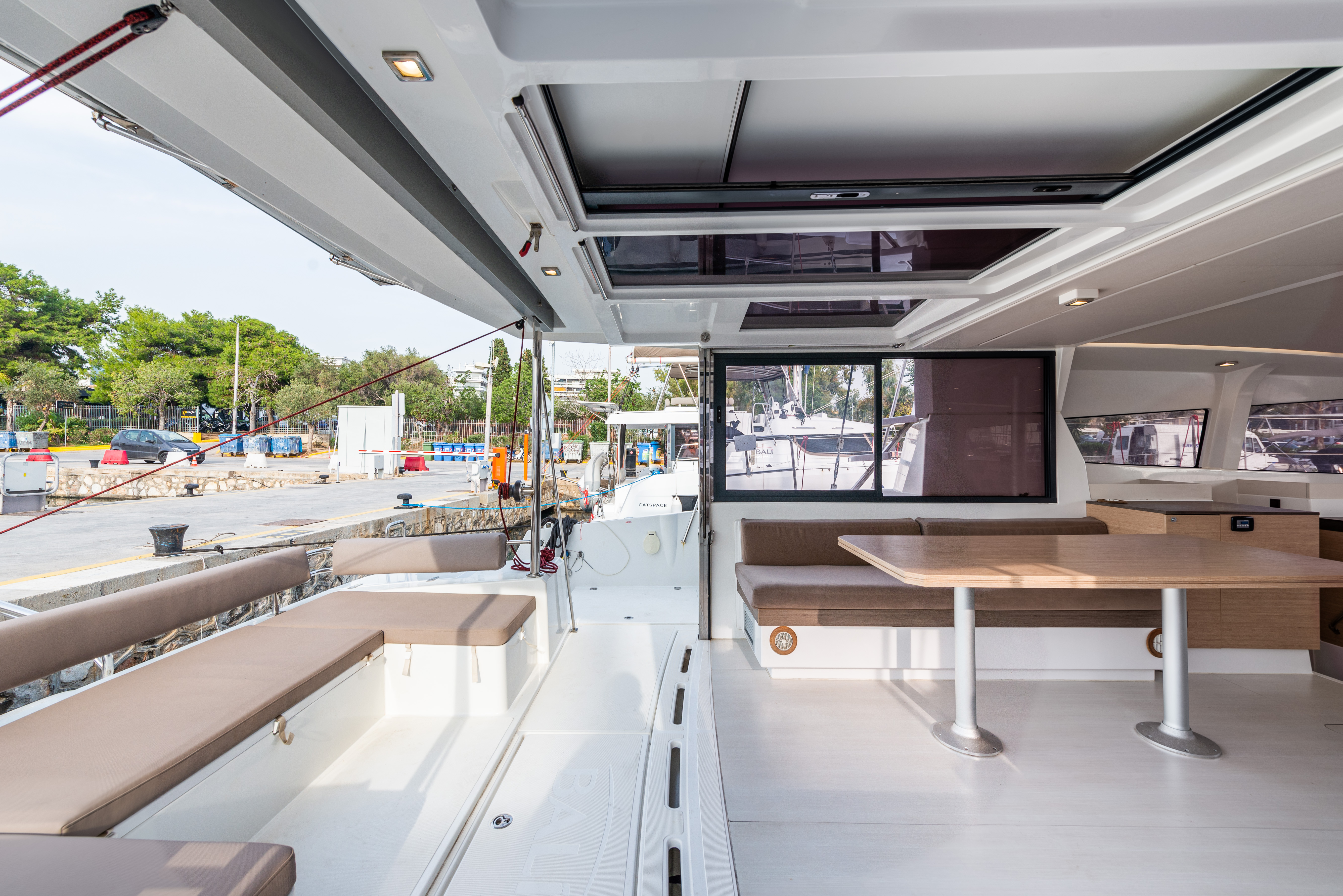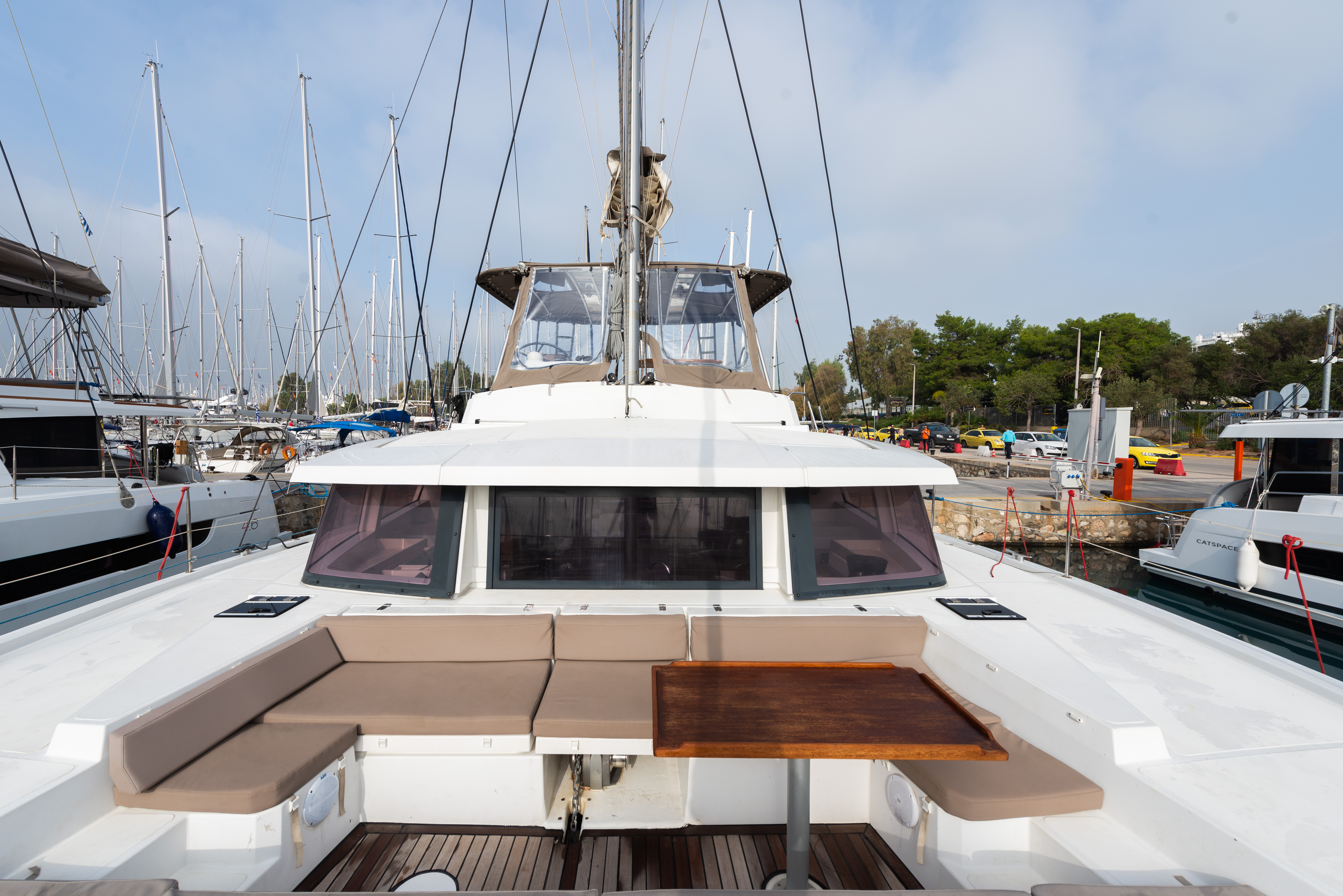 | Outside | Badeleiter, Biminitop, Cockpitdusche, Cockpitlautsprecher, Cockpittisch, Deckpolster, elektr. Ankerwinsch, elektr. Winsch, Segel-Flickwerkzeug, Solaranlage, Sprayhood, Treibanker, Windex |