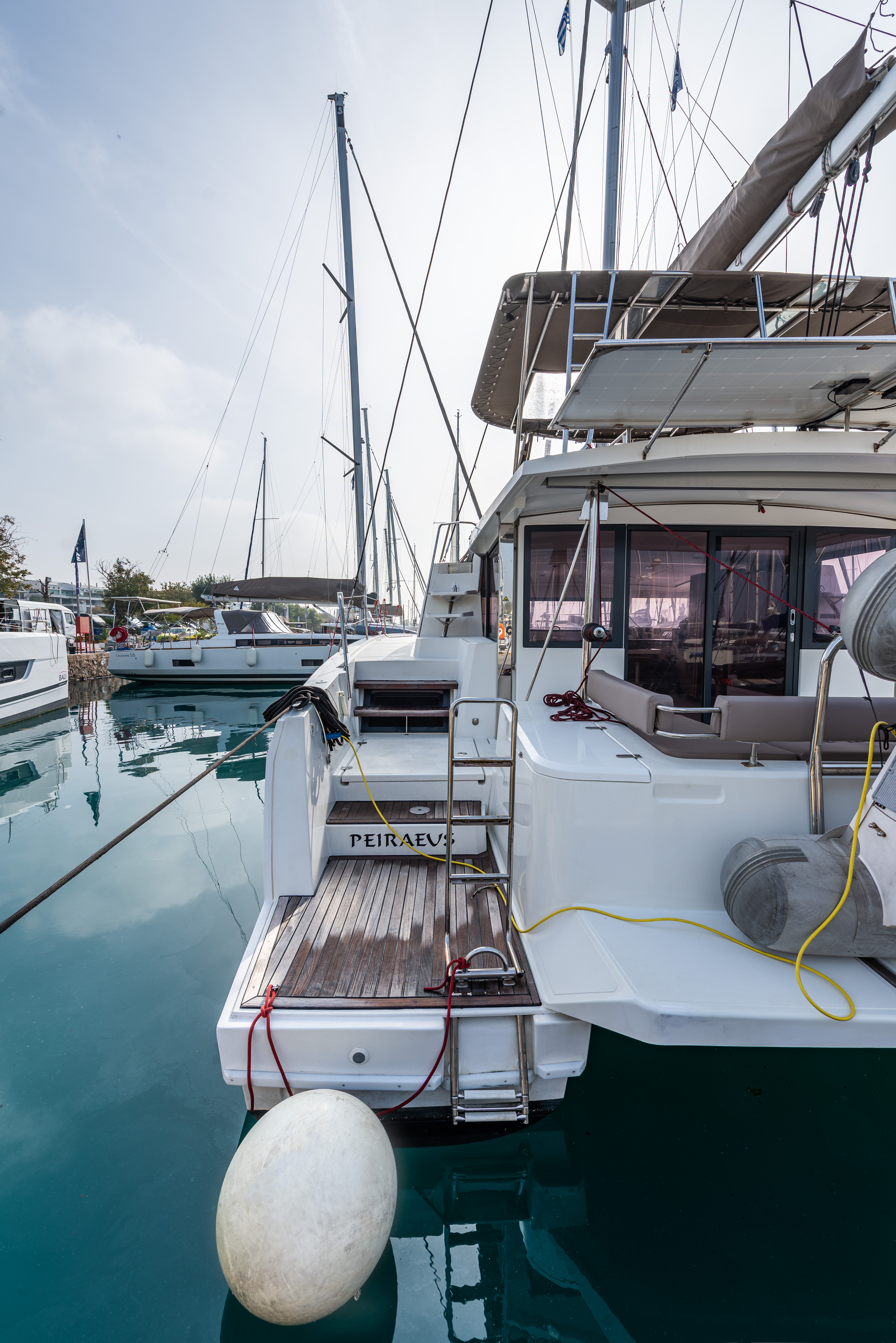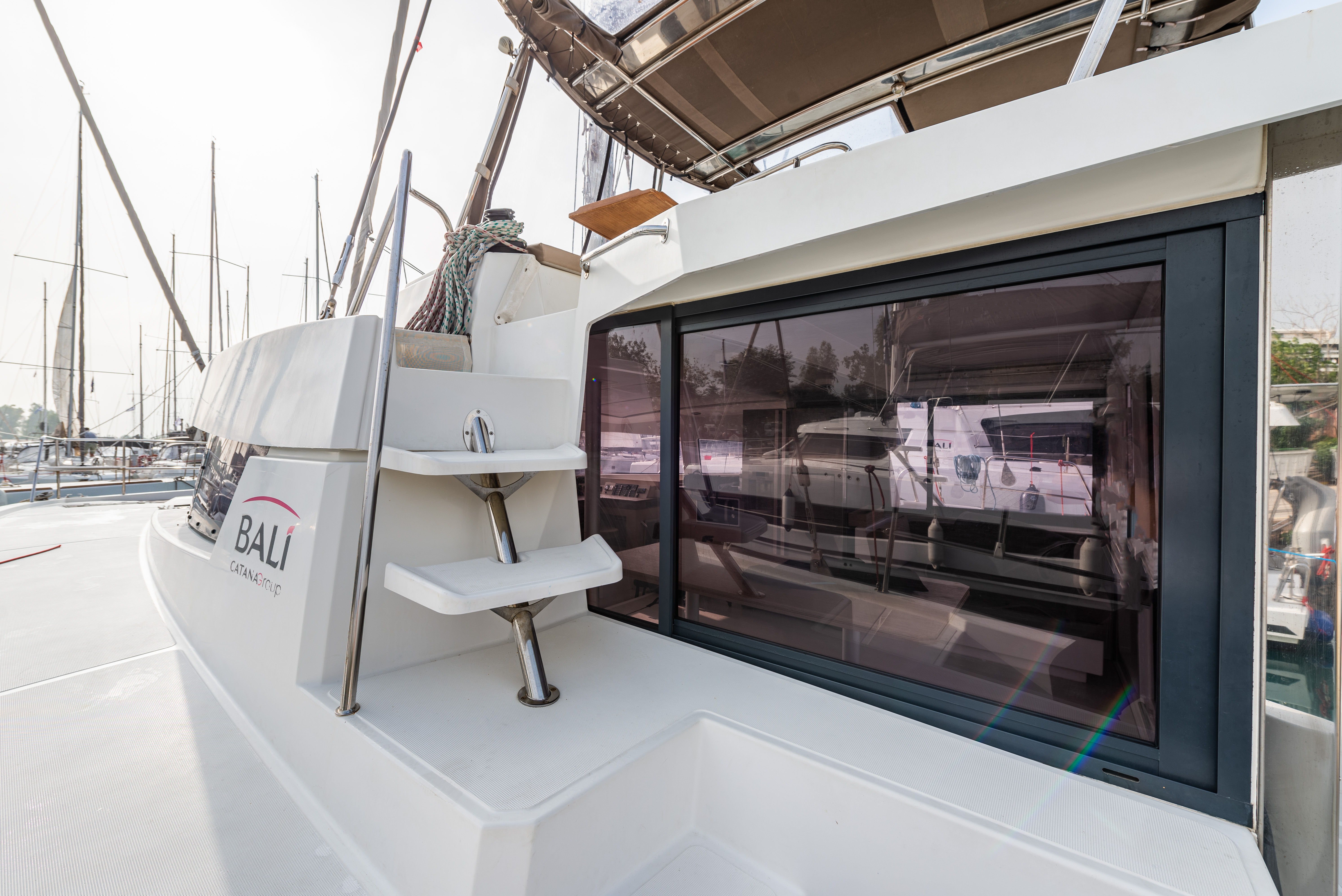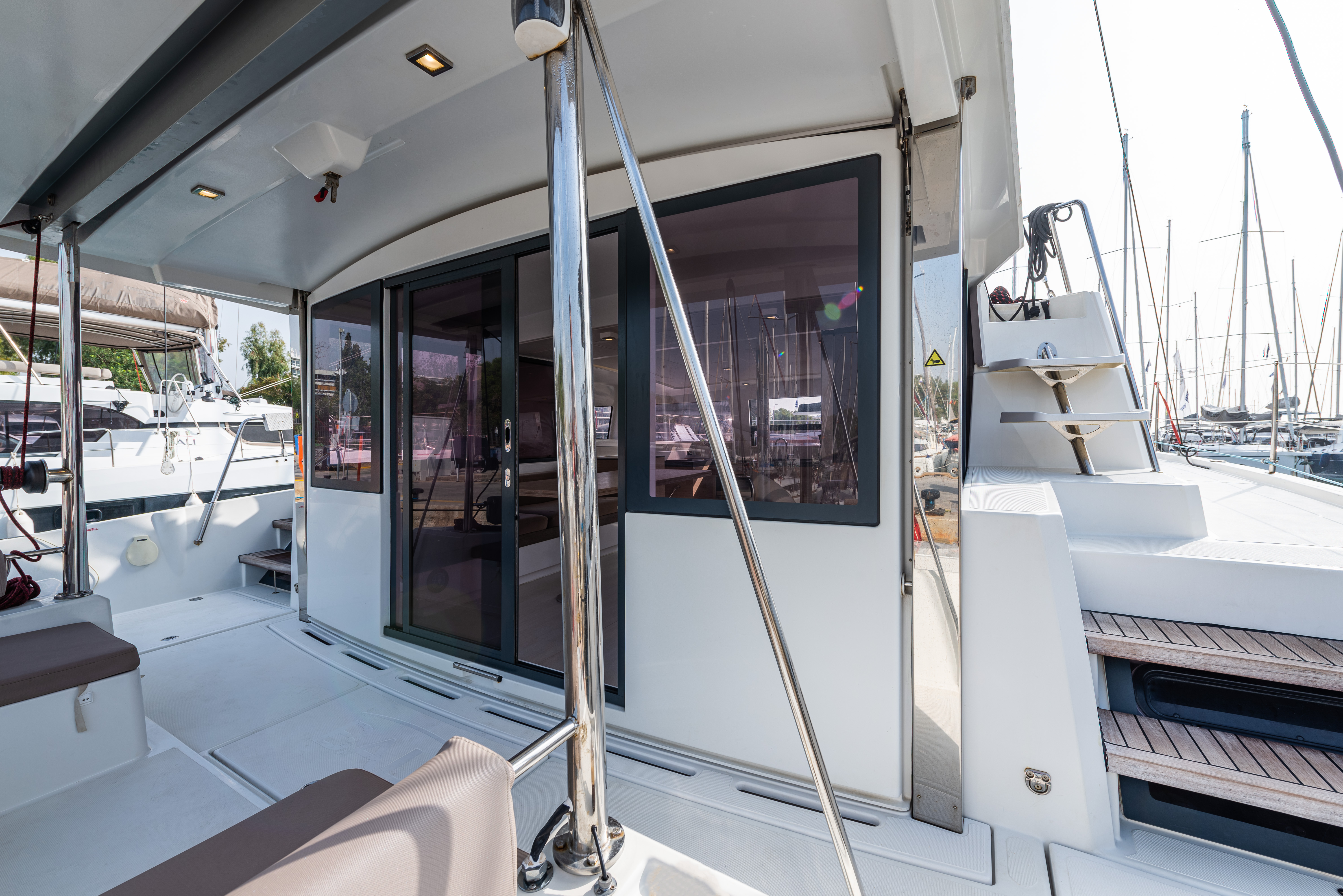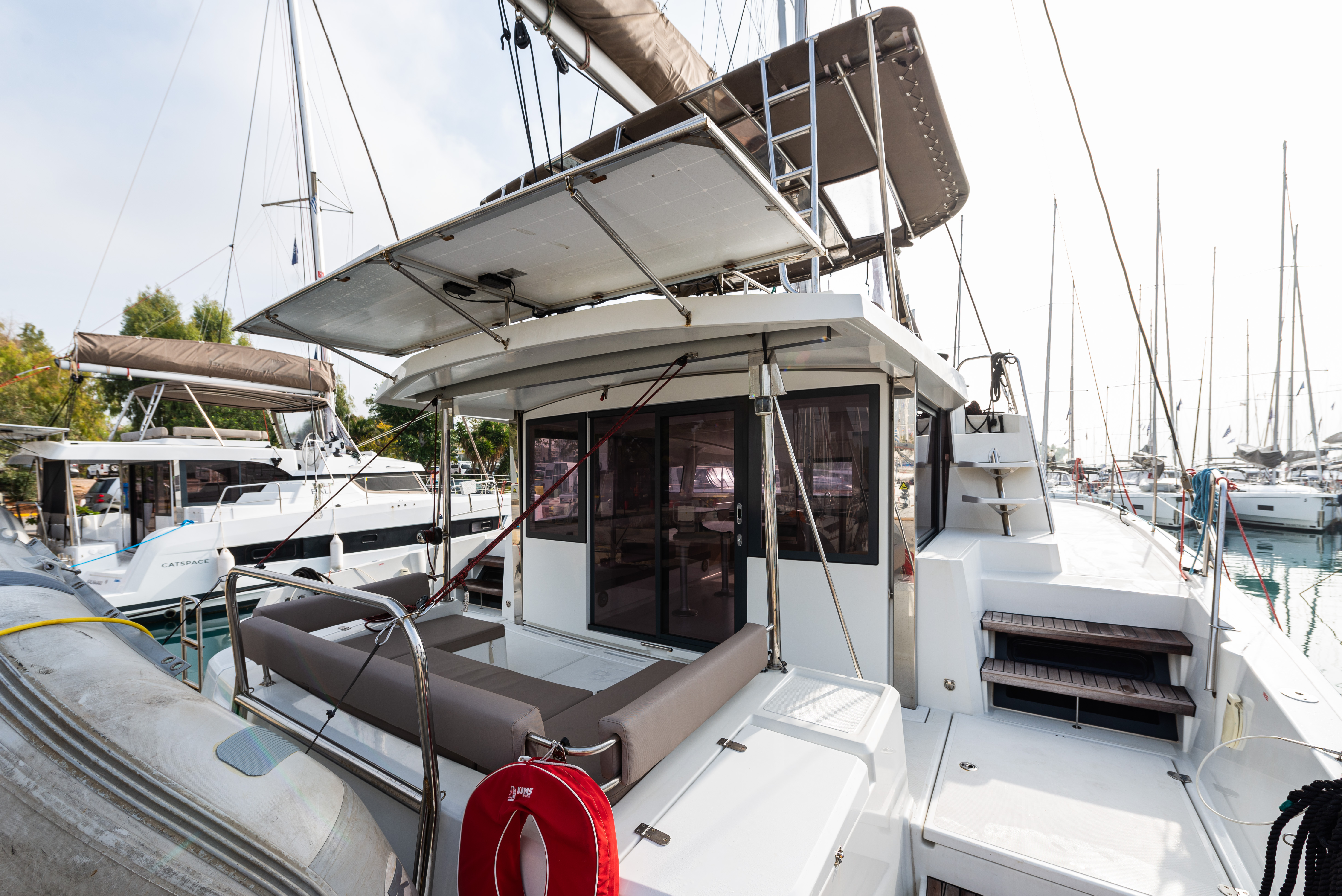 | Outside | Badeleiter, Biminitop, Cockpitdusche, Cockpitlautsprecher, Cockpittisch, Deckpolster, elektr. Ankerwinsch, elektr. Winsch, Segel-Flickwerkzeug, Solaranlage, Sprayhood, Treibanker, Windex |