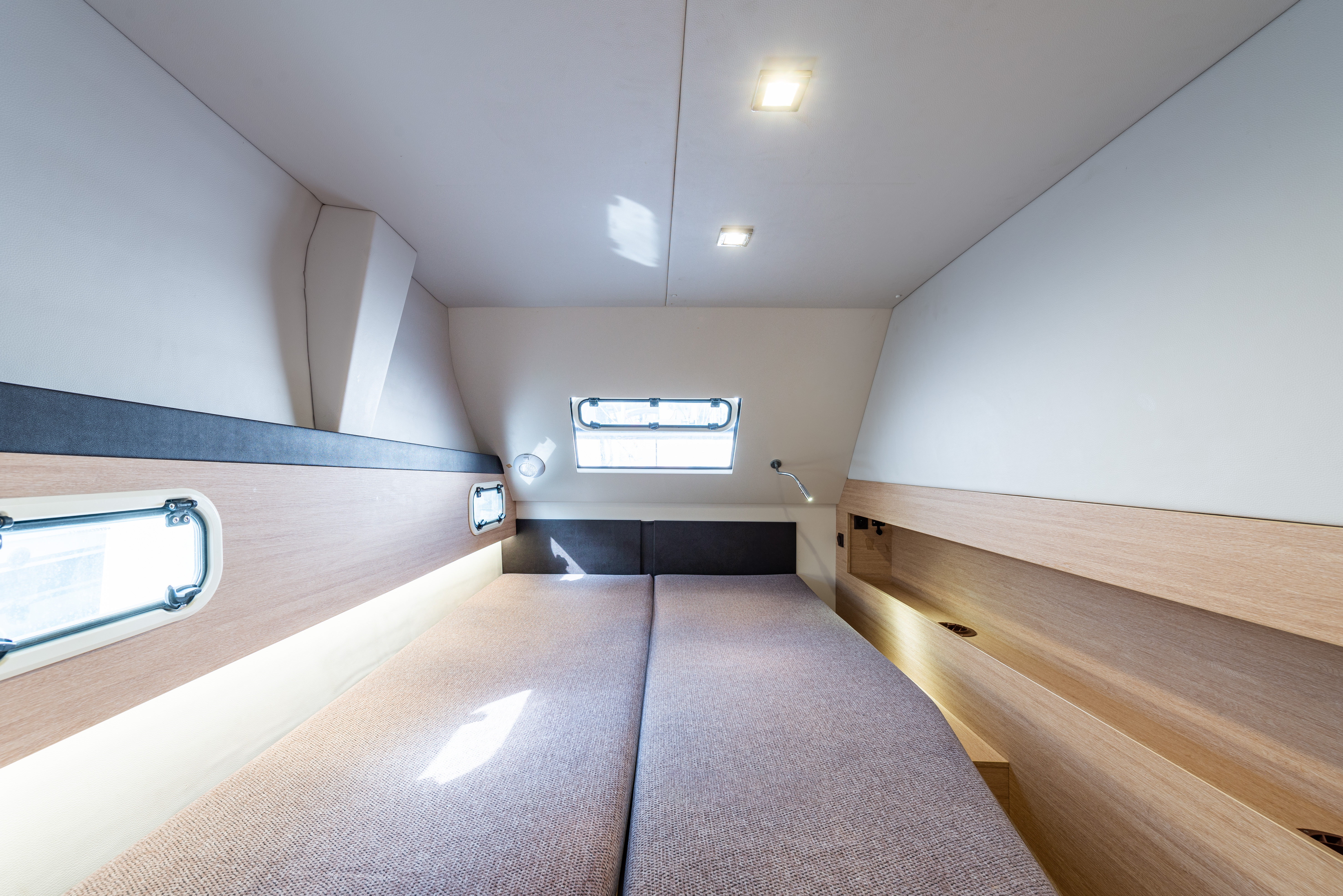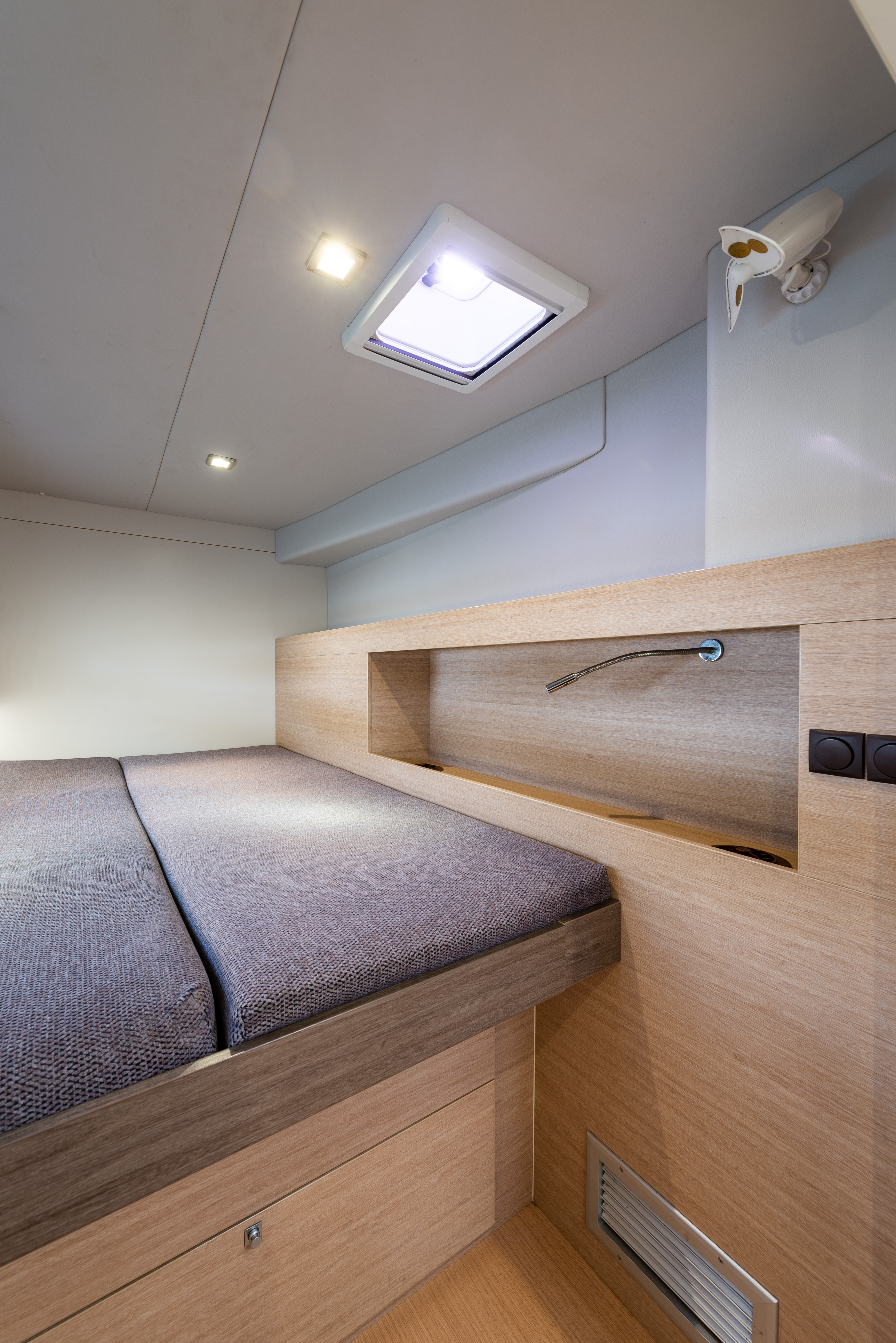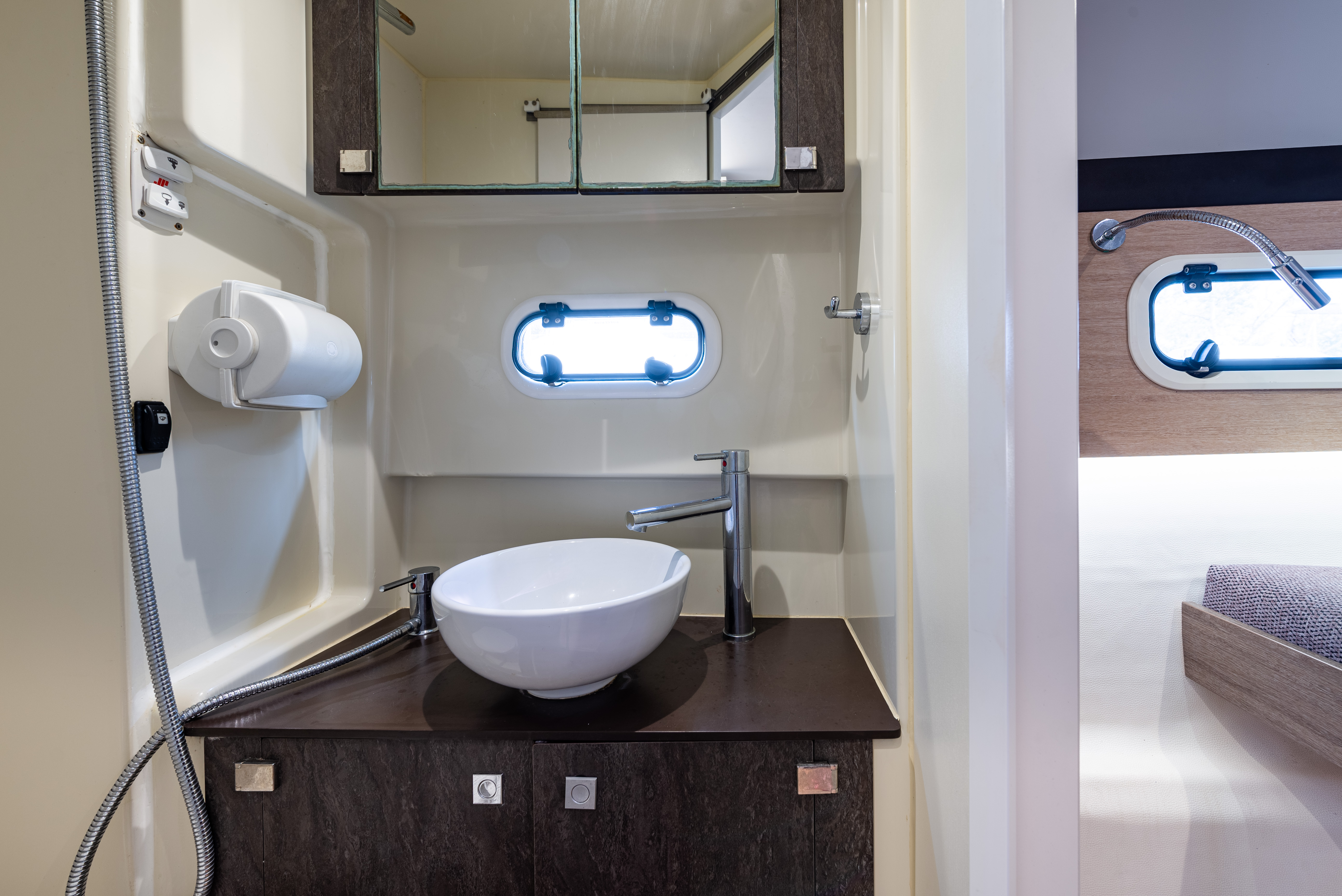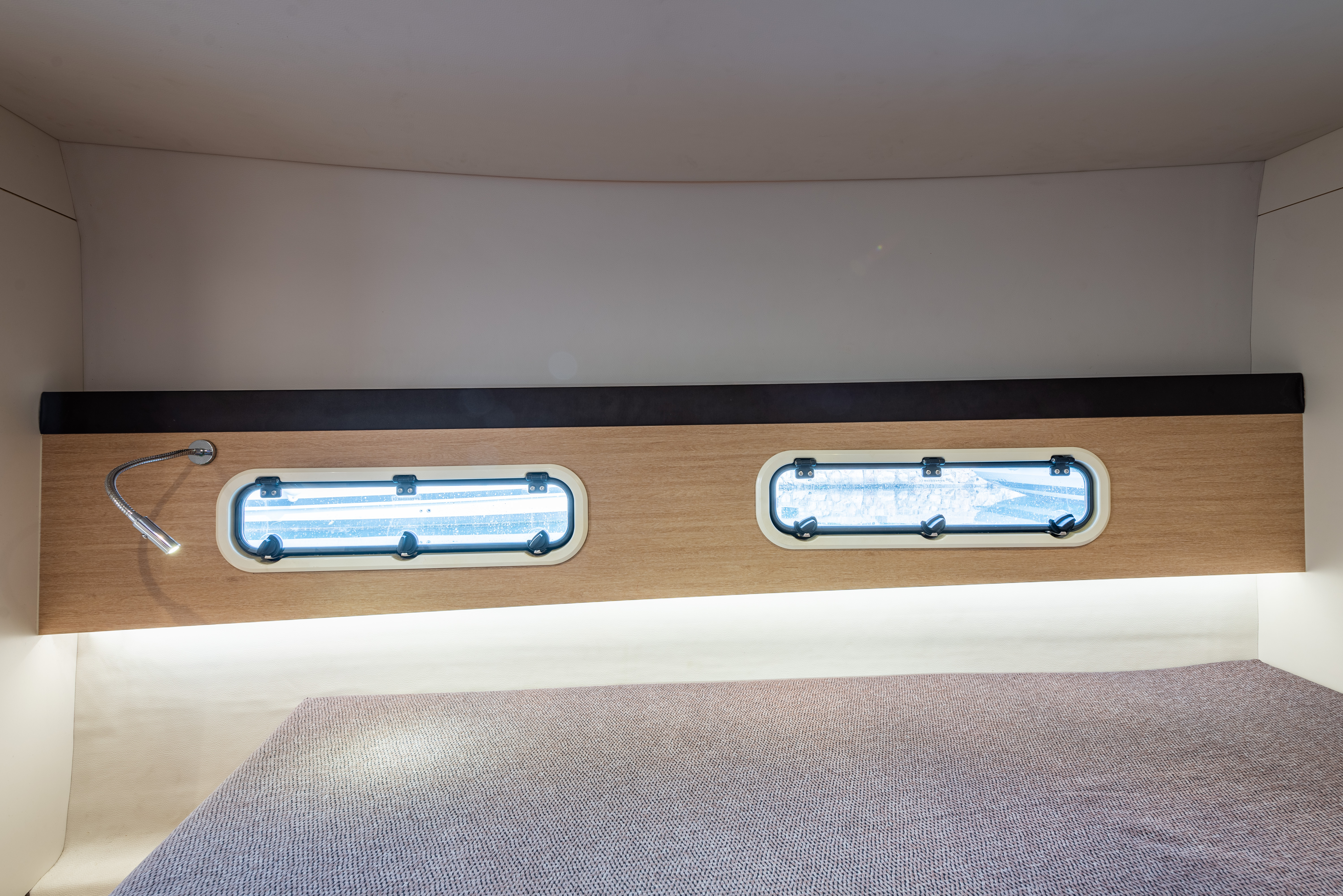 | Inside | 12V Steckdose, 220V Steckdosen, Borduhr, Fäkalientank, Gasherd mit Backofen, Generator, Klimaanlage (ohne Landstrombedarf), Radio mit CD, USB Steckdosen in den Kabinen, Ventilatoren in Kabinen, Warmwasser, Watermaker, WC (elektr.) |