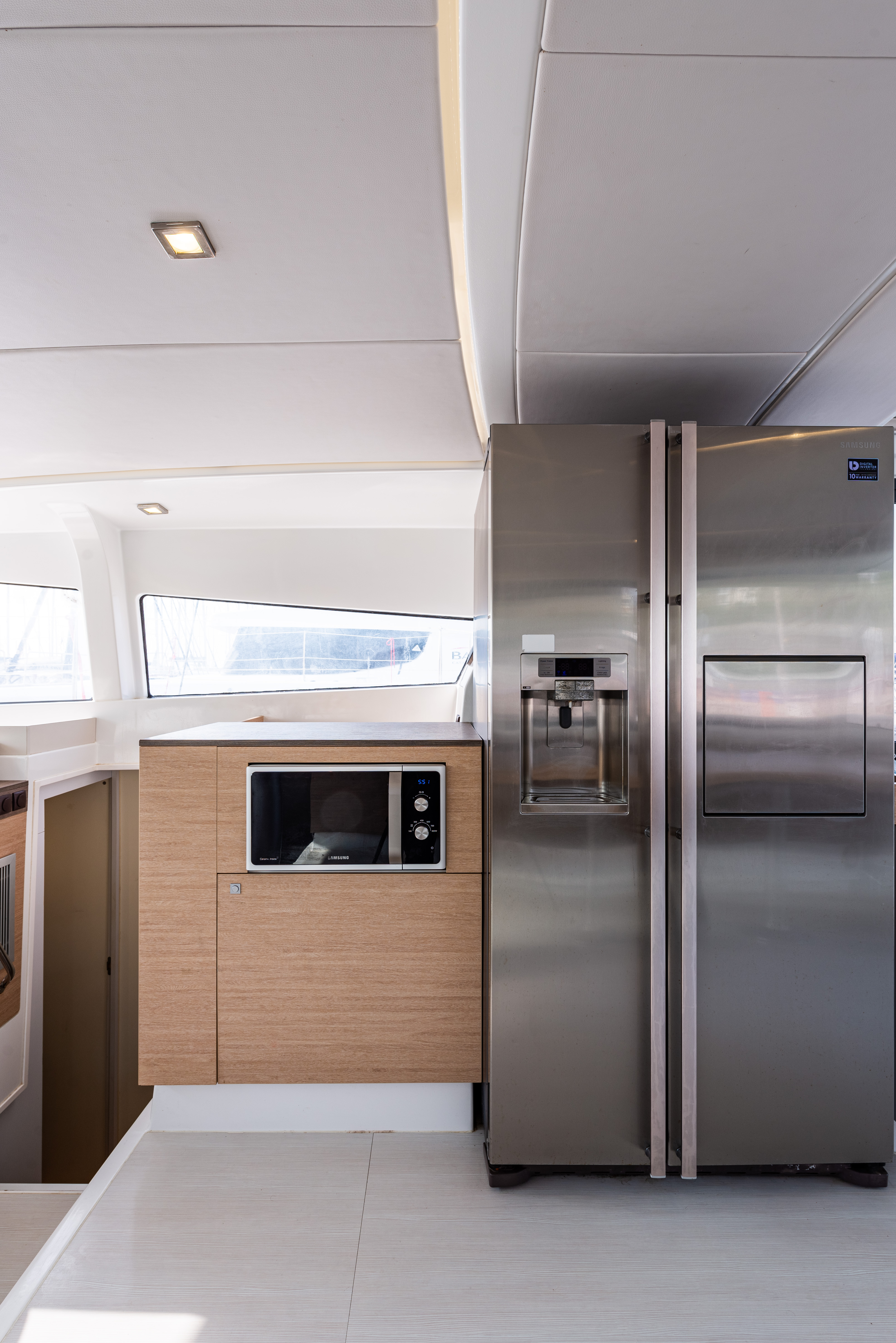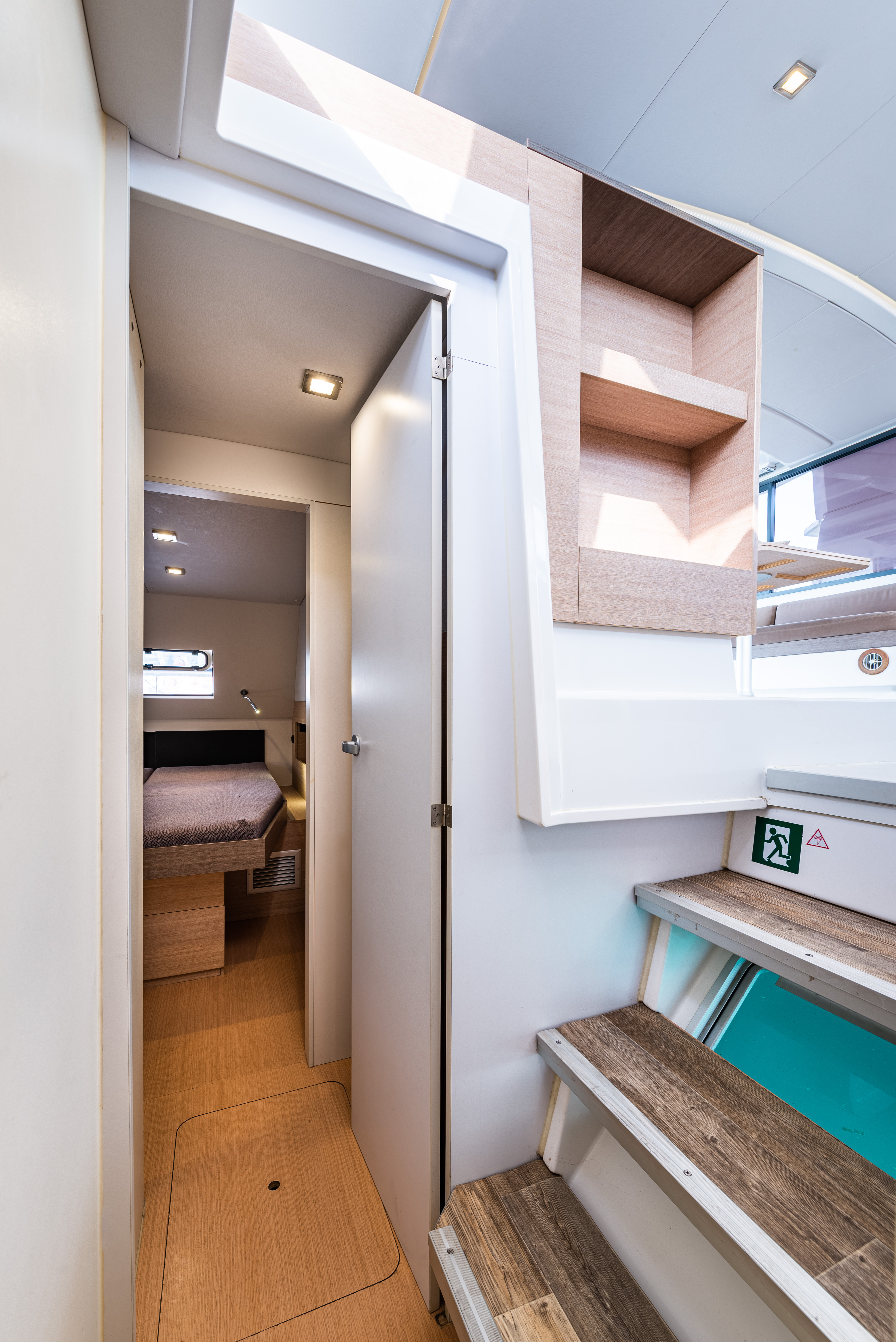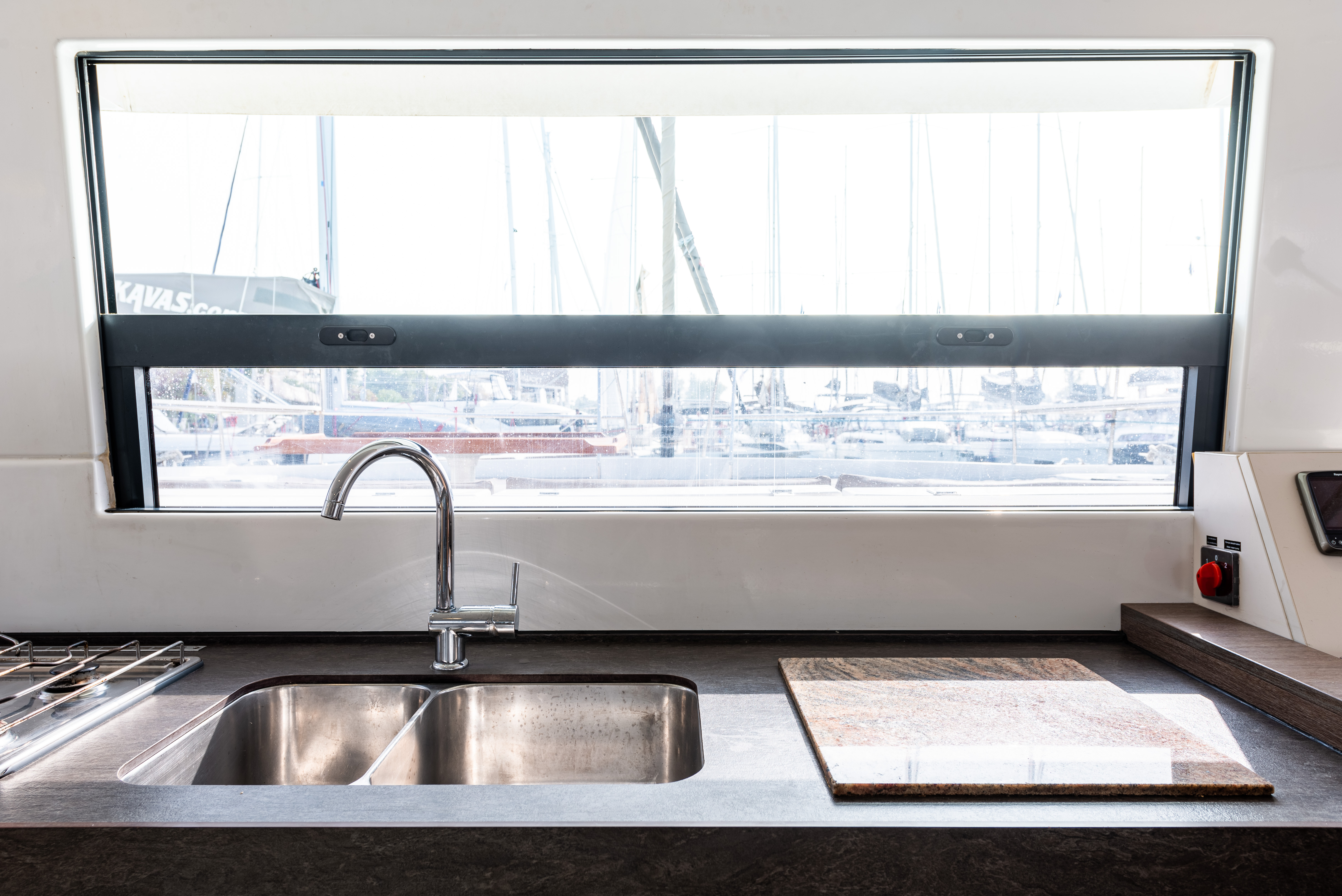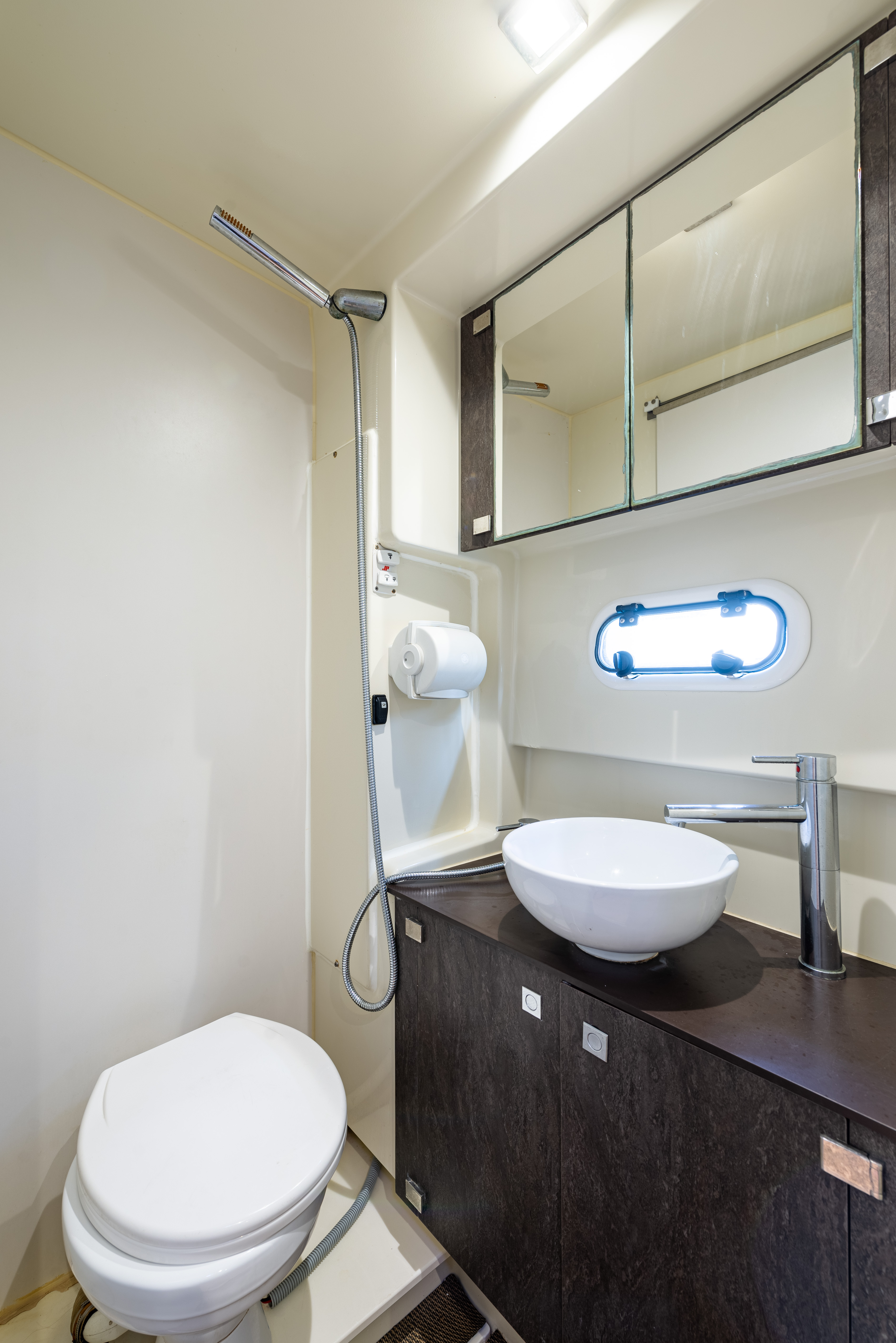 | Inside | 12V Steckdose, 220V Steckdosen, Borduhr, Fäkalientank, Gasherd mit Backofen, Generator, Klimaanlage (ohne Landstrombedarf), Radio mit CD, USB Steckdosen in den Kabinen, Ventilatoren in Kabinen, Warmwasser, Watermaker, WC (elektr.) |