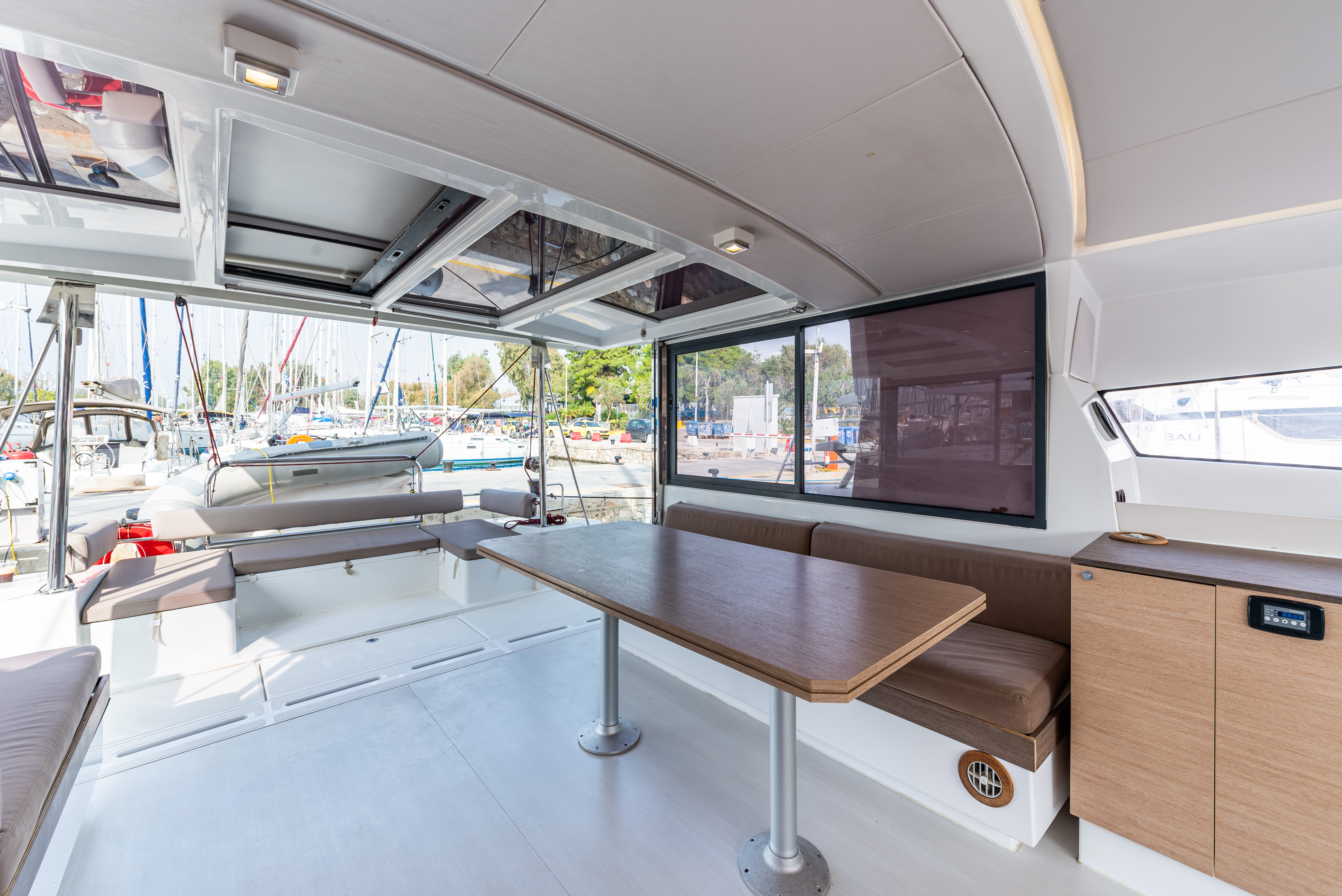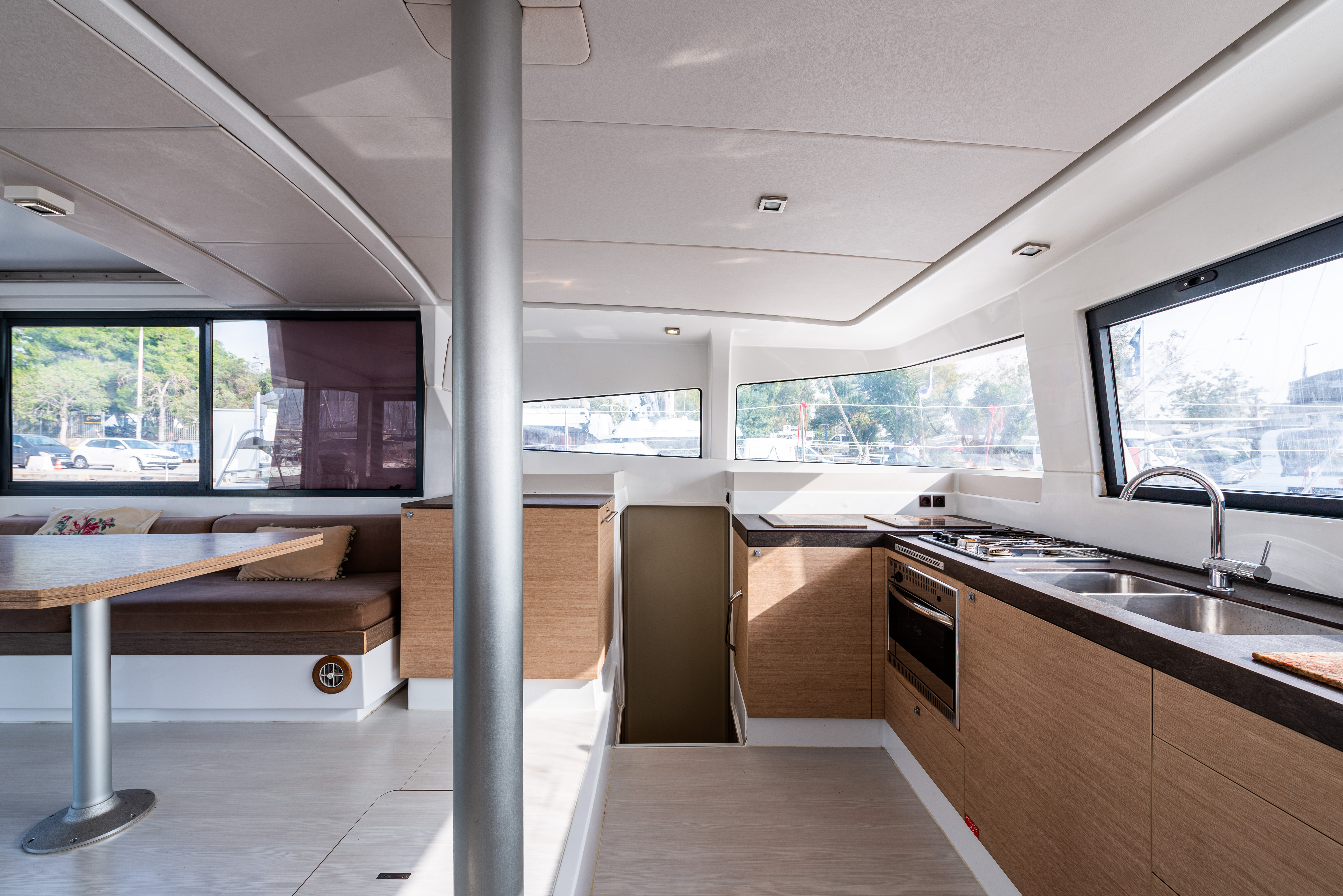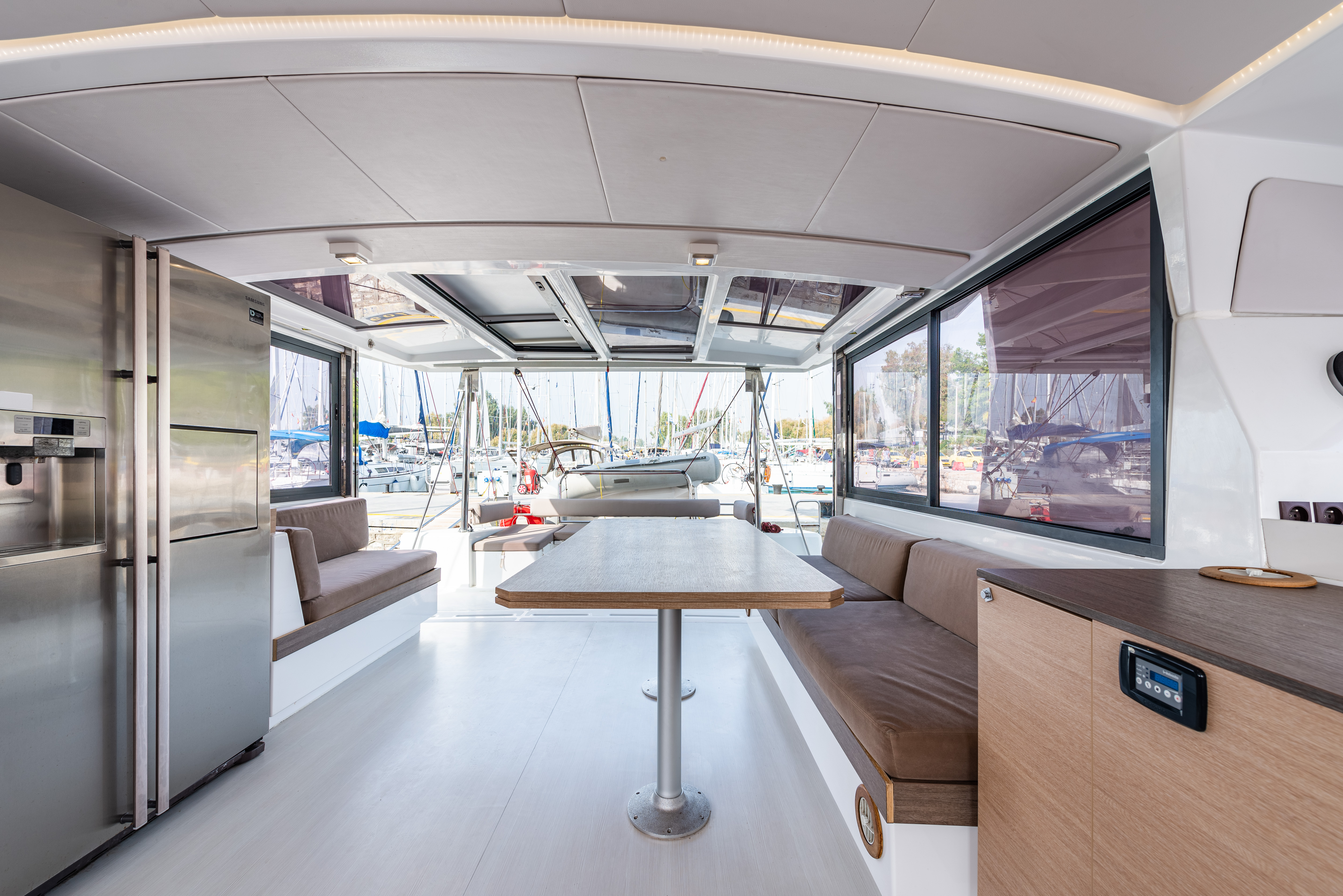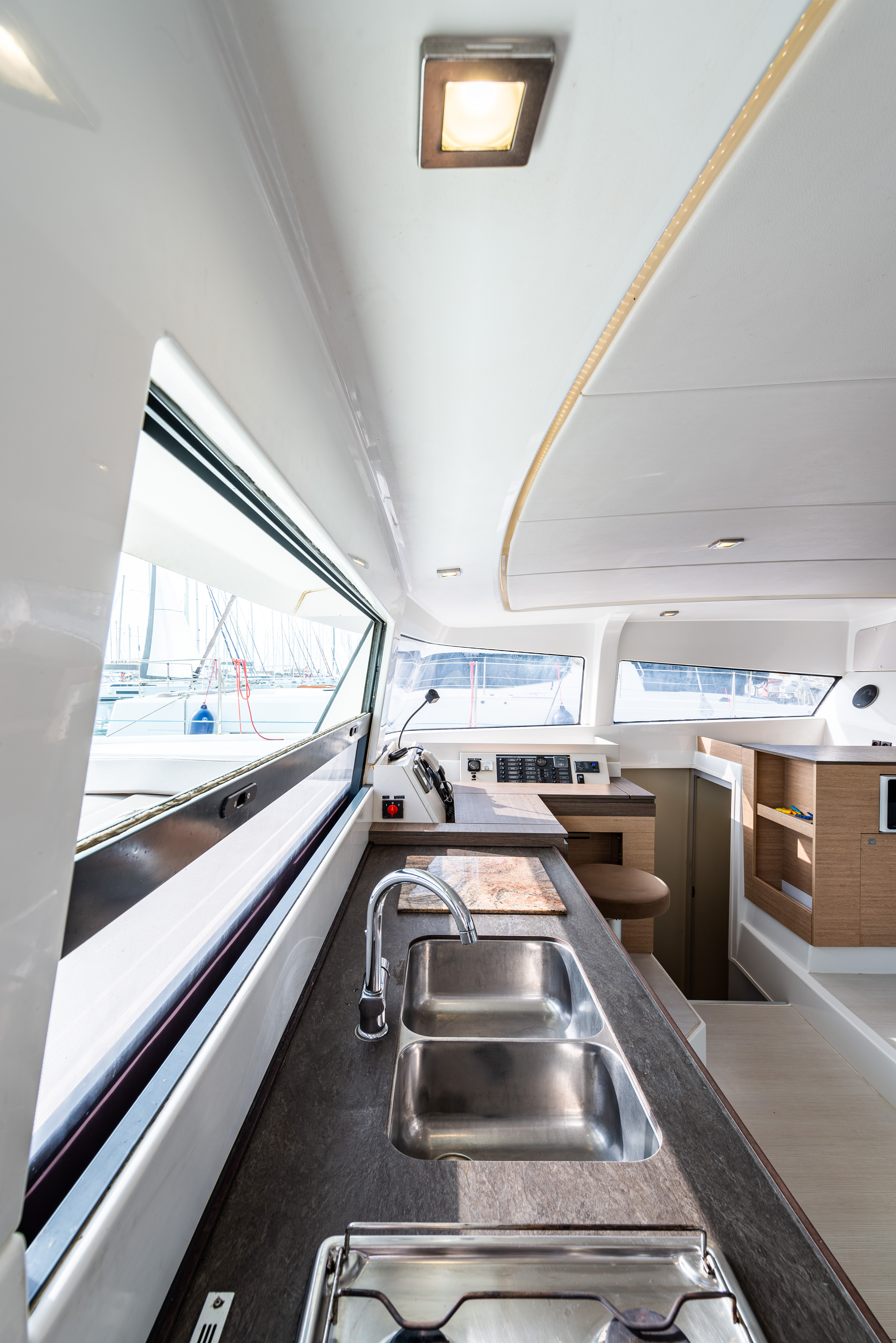 | Inside | 12V Steckdose, 220V Steckdosen, Borduhr, Fäkalientank, Gasherd mit Backofen, Generator, Klimaanlage (ohne Landstrombedarf), Radio mit CD, USB Steckdosen in den Kabinen, Ventilatoren in Kabinen, Warmwasser, Watermaker, WC (elektr.) |