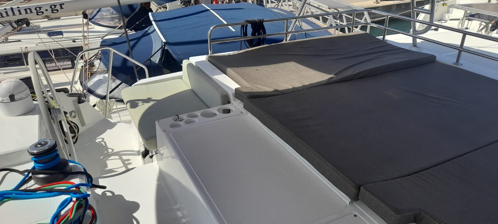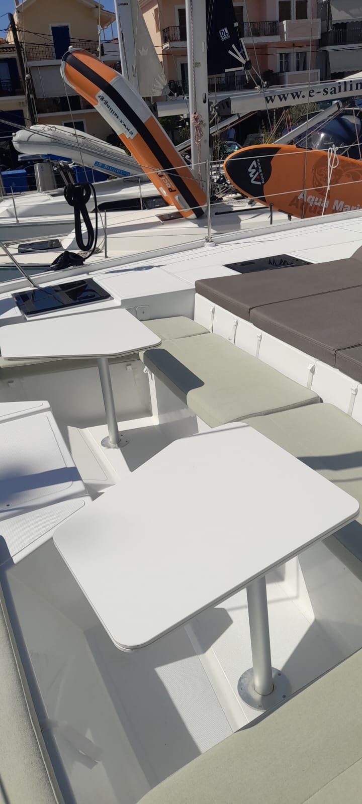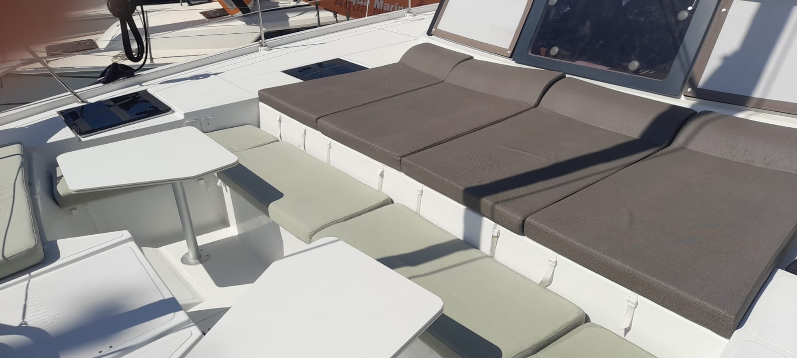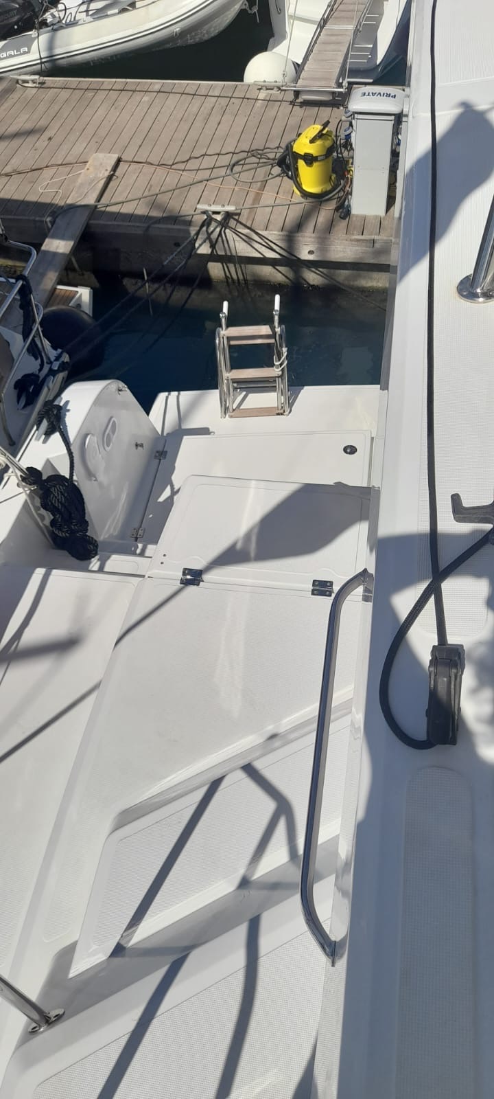 | Outside | Badeleiter, Badeplattform, Biminitop, Cockpitlautsprecher, Cockpittisch, elektr. Ankerwinsch, elektr. Winsch, Fender, Festmacherleinen, Solaranlage, Winschen |