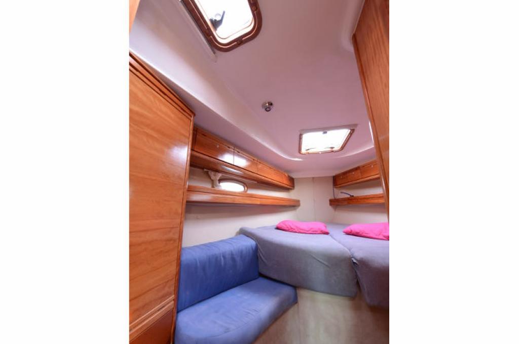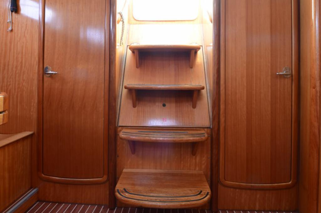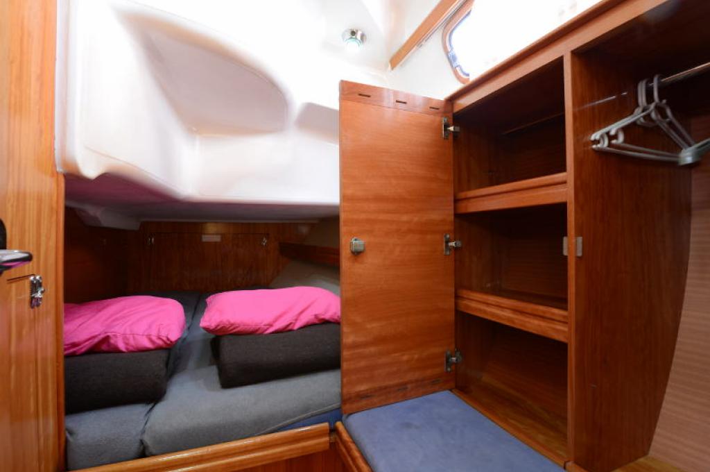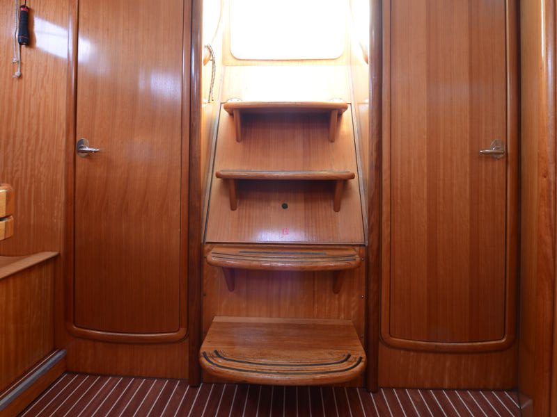 | Safety | Autopilot, Bootsmannstuhl, Bordapotheke, Bordwerkzeug, elektr. Bilgepumpe, Epirb, Feststoffschwimmwesten, Flaggen, GMDSS, Leuchtboje, Navigationslichter, Notpinne, Notsignale, Rettungsinsel, Rettungskragen, Sicherheitsgurt, Taschenlampe, UKW-Funk |