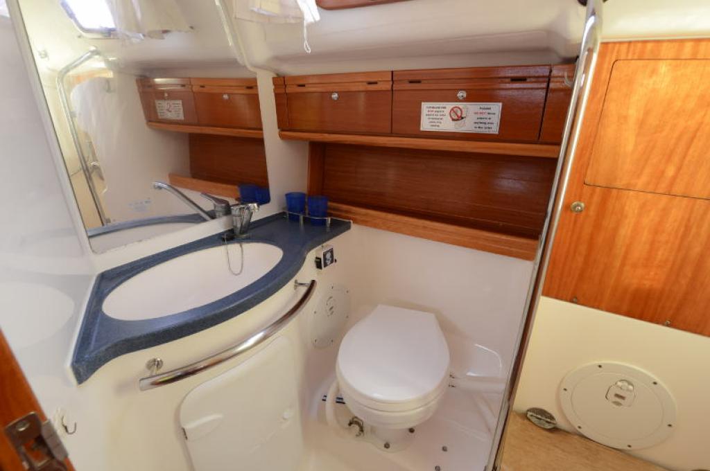 | Outside | Badeleiter, Biminitop, Cockpitdusche, Cockpitlautsprecher, Cockpittisch, elektr. Ankerwinsch, Segel-Flickwerkzeug, Sprayhood, Treibanker, Windex |