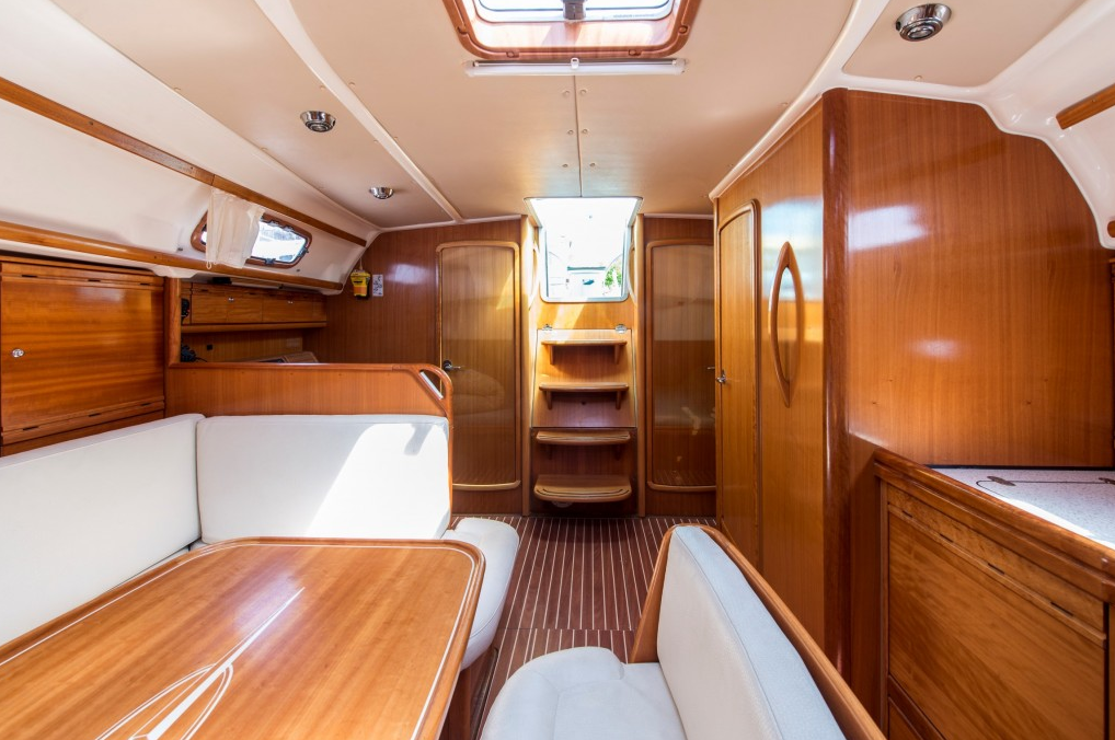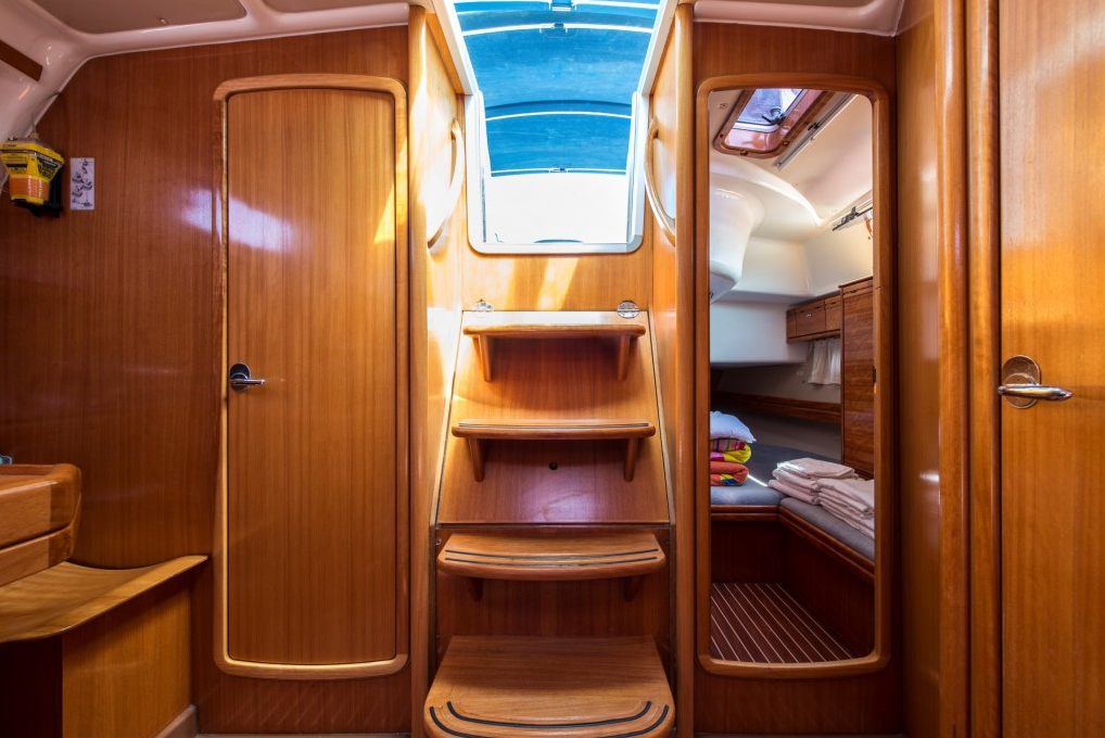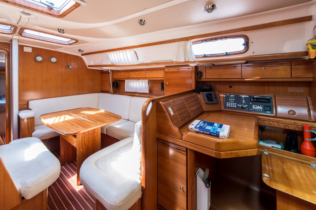 | Safety | Autopilot, Bootsmannstuhl, Bordapotheke, Bordwerkzeug, elektr. Bilgepumpe, Epirb, Feststoffschwimmwesten, Flaggen, GMDSS, Leuchtboje, Navigationslichter, Notpinne, Notsignale, Rettungsinsel, Rettungskragen, Sicherheitsgurt, Taschenlampe, UKW-Funk |