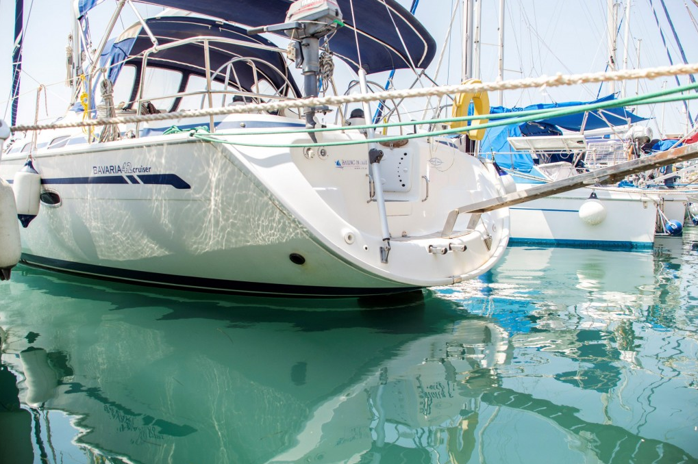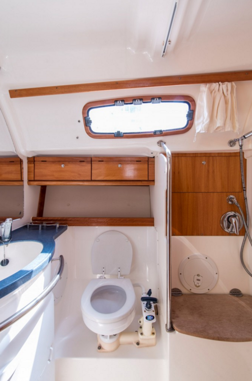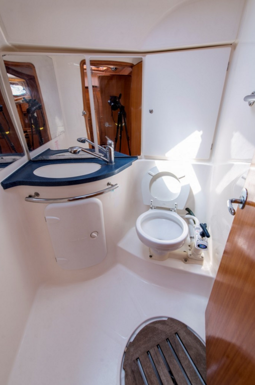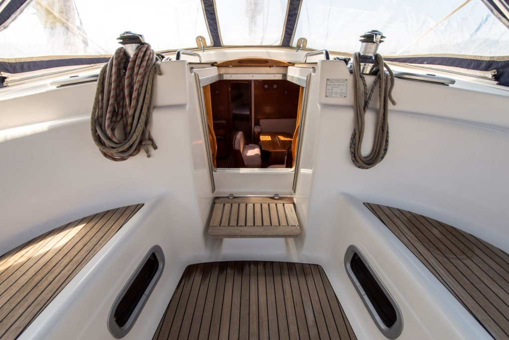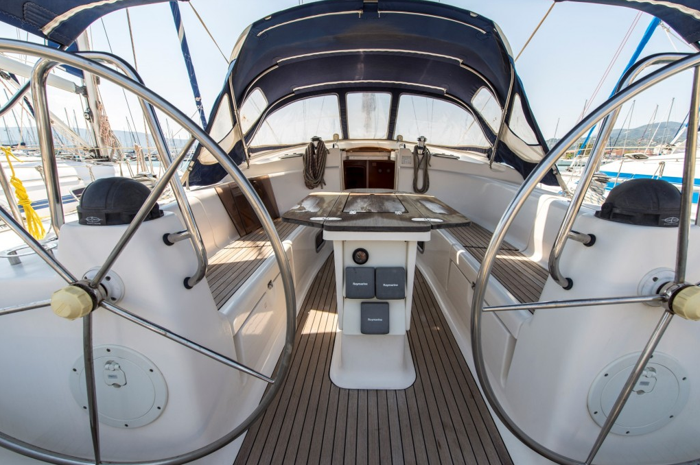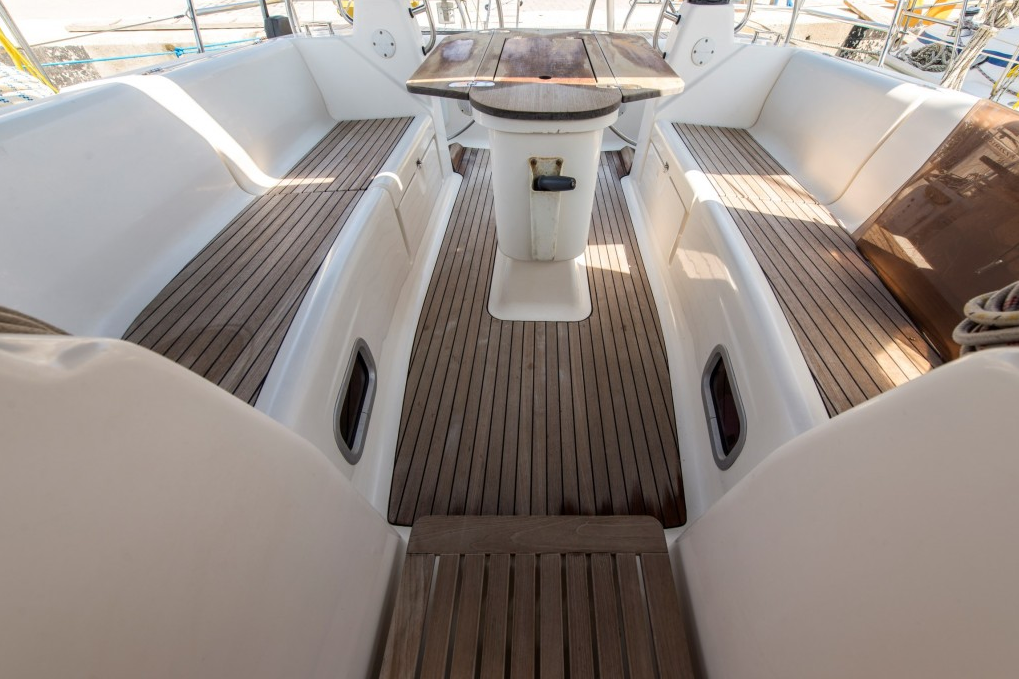 | Outside | 220 V-Landanschluss, Badeleiter, Biminitop, Cockpitlautsprecher, Cockpittisch, Heckdusche, Solaranlage, Sprayhood, Teak im Cockpit, Treibanker, Windex |