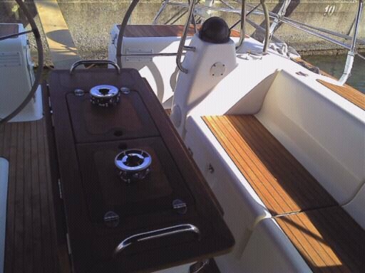 | Outside | Badeleiter, Badeplattform, Biminitop, Cockpitdusche, Cockpitlautsprecher, Cockpittisch, elektr. Ankerwinsch, Fender, Festmacherleinen, Solaranlage, Sprayhood, Teak im Cockpit, Winschen |