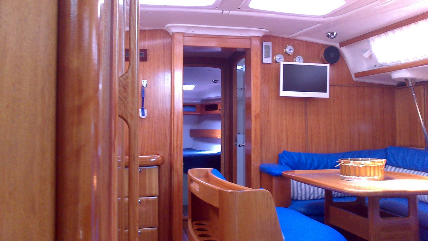 | Navigation | Barometer, Echolot, Fernglas, GPS mit Kartenplotter im Cockpit, Hafenhandbücher, Kompass, Sumlog |