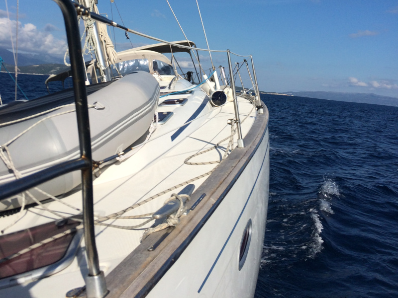 | Outside | Anker mit Kette, Badeleiter, Biminitop, Cockpitdusche, Cockpitlautsprecher, Cockpittisch, elektr. Ankerwinsch, Gangway, Segel-Flickwerkzeug, Sprayhood, Teak im Cockpit, Treibanker, Windex |