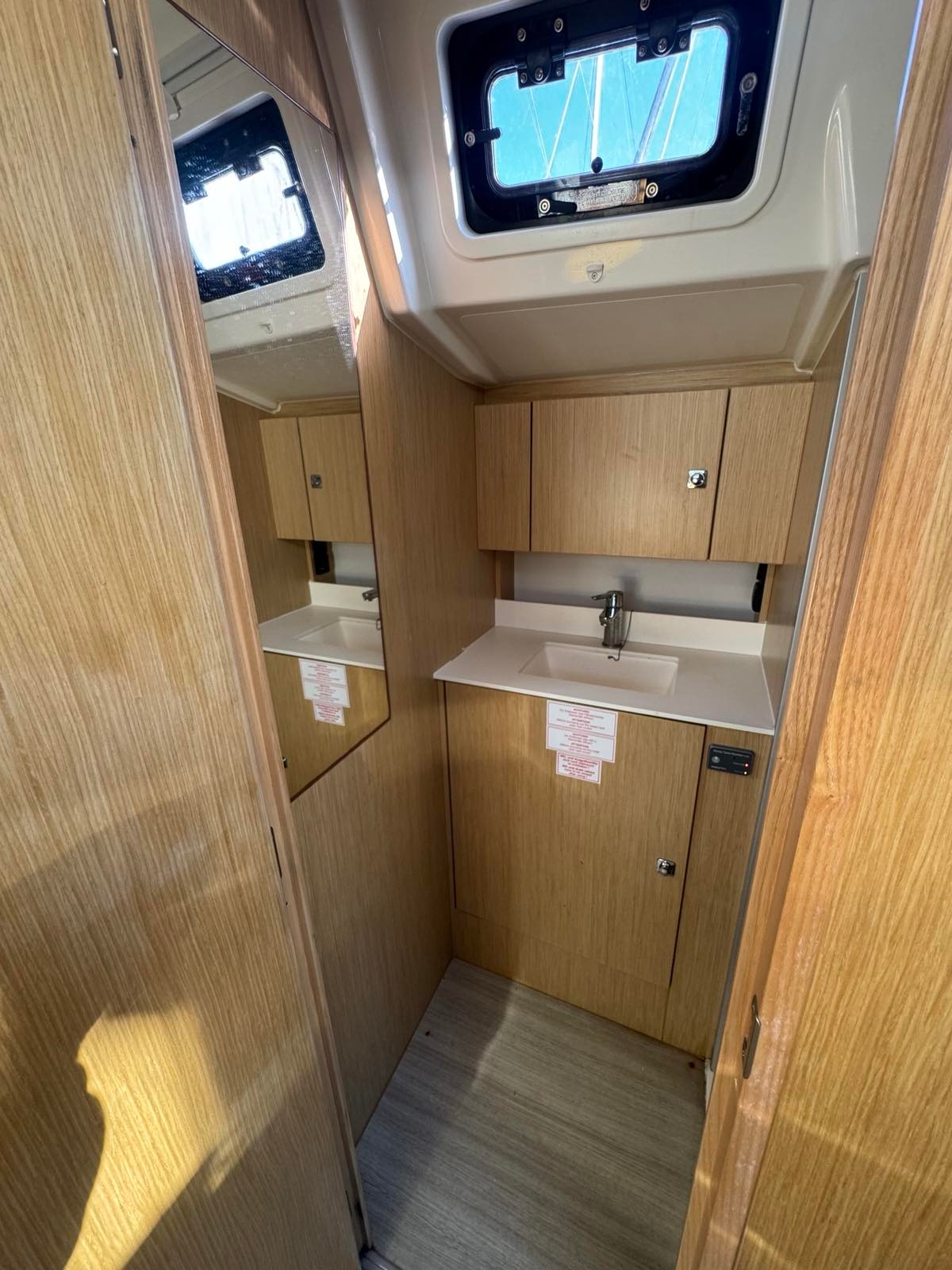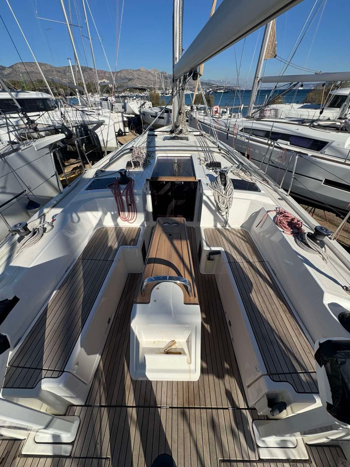 | Outside | Außendusche, Badeleiter, Biminitop, Cockpitlautsprecher, Cockpitpolster, Cockpittisch, Segel-Flickwerkzeug, Solaranlage, Sprayhood, Teak im Cockpit, Treibanker, Windex |
