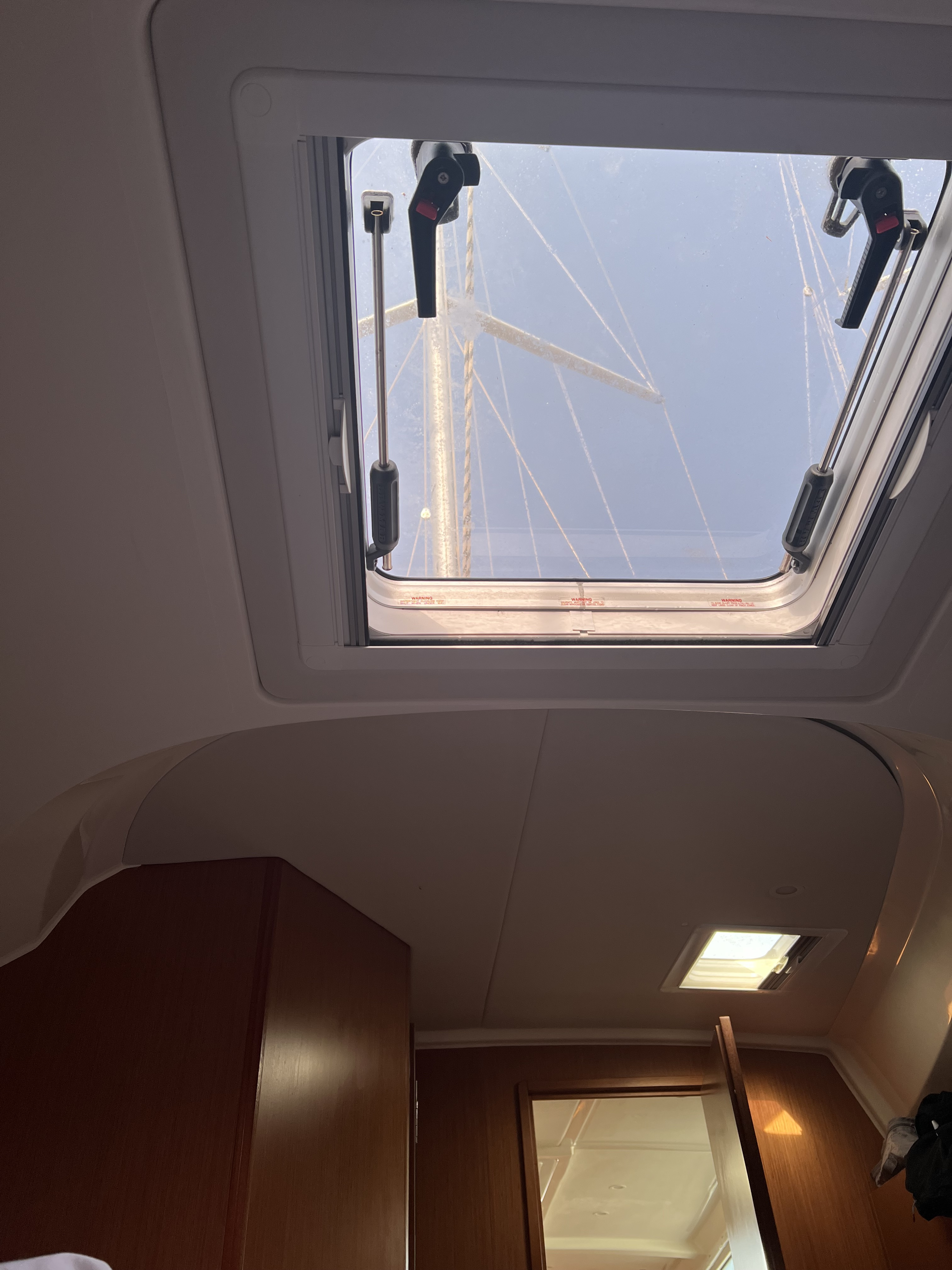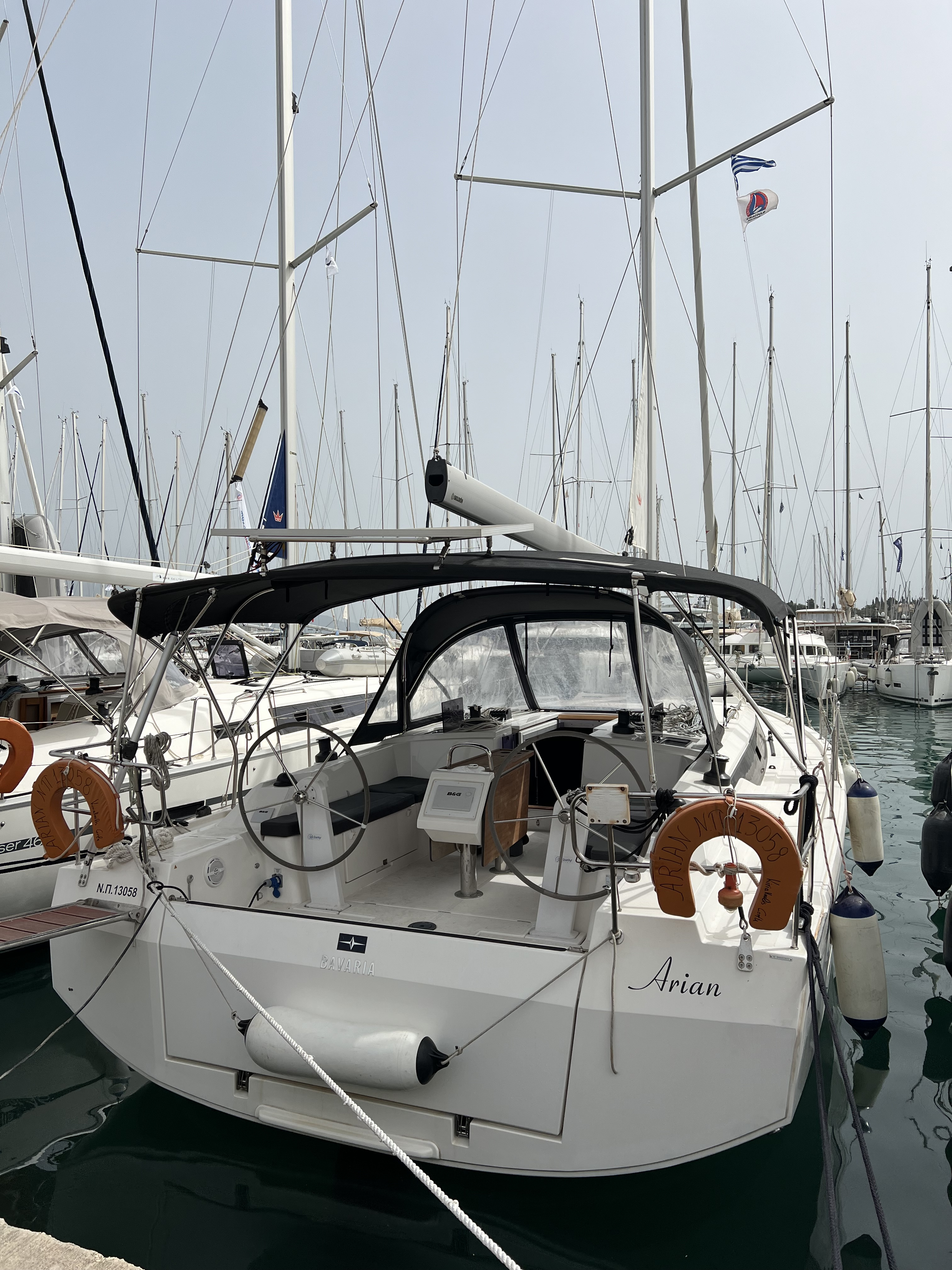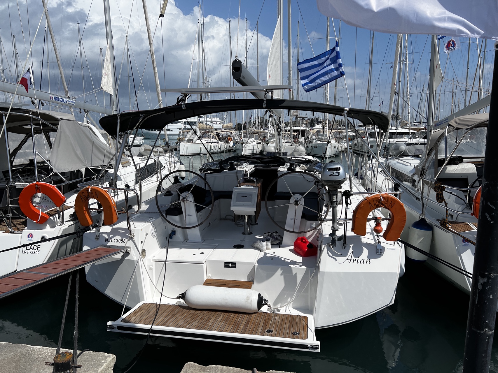 | Outside | Badeleiter, Biminitop, Bootshaken, Cockpitdusche, Cockpitlautsprecher, Cockpitpolster, Cockpittisch, Deckbürste, Dieselkanister , elektr. Ankerwinsch, Fender, Festmacherleinen, Kunststoff-Eimer (Pütz), Solaranlage, Sprayhood, Teak im Cockpit, Winschen |