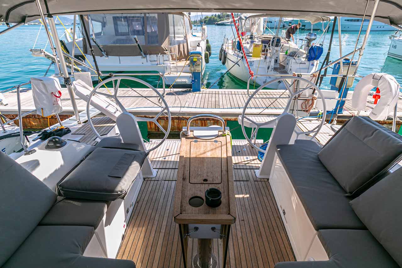 | Outside | 220 V-Landanschluss, Anker mit Kette, Ankerwinsch, Biminitop, Bootshaken, Cockpitdusche, Cockpitlautsprecher, Cockpitpolster, Cockpittisch, elektr. Ankerwinsch, elektr. Winsch, Faltpropeller, Fender, Festmacherleinen, Gangway, Kugelfender, Kunststoff-Eimer (Pütz), Solaranlage, Sprayhood, Teak im Cockpit, Wantenschneider, Wasserkanister , Wasserschlauch, Windex |