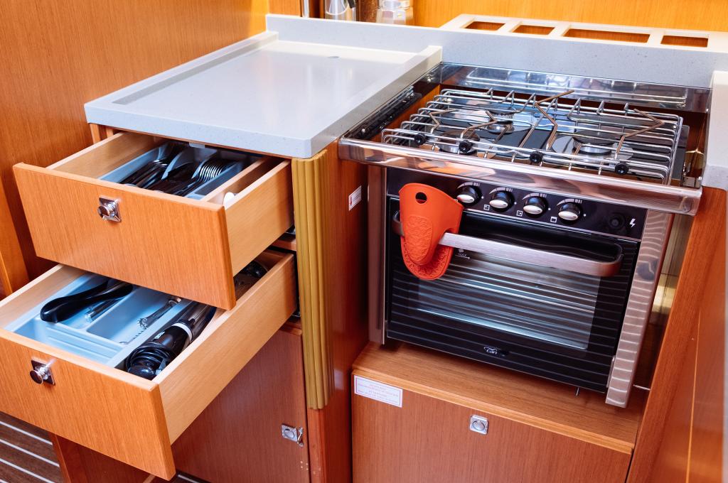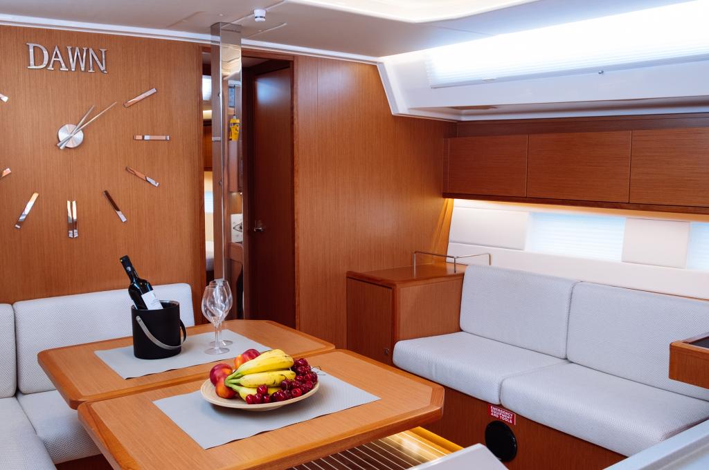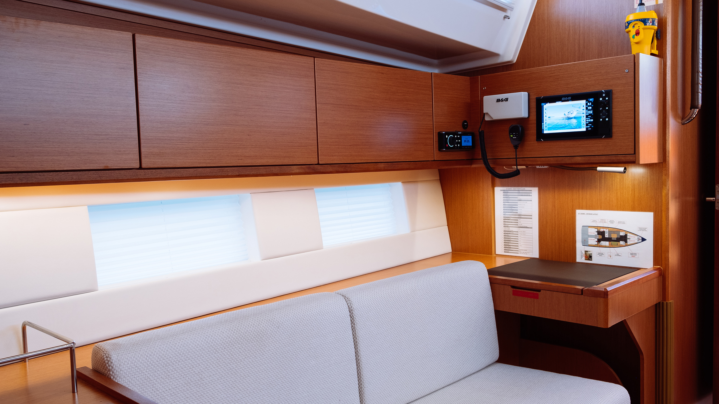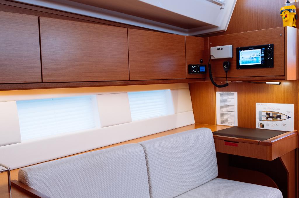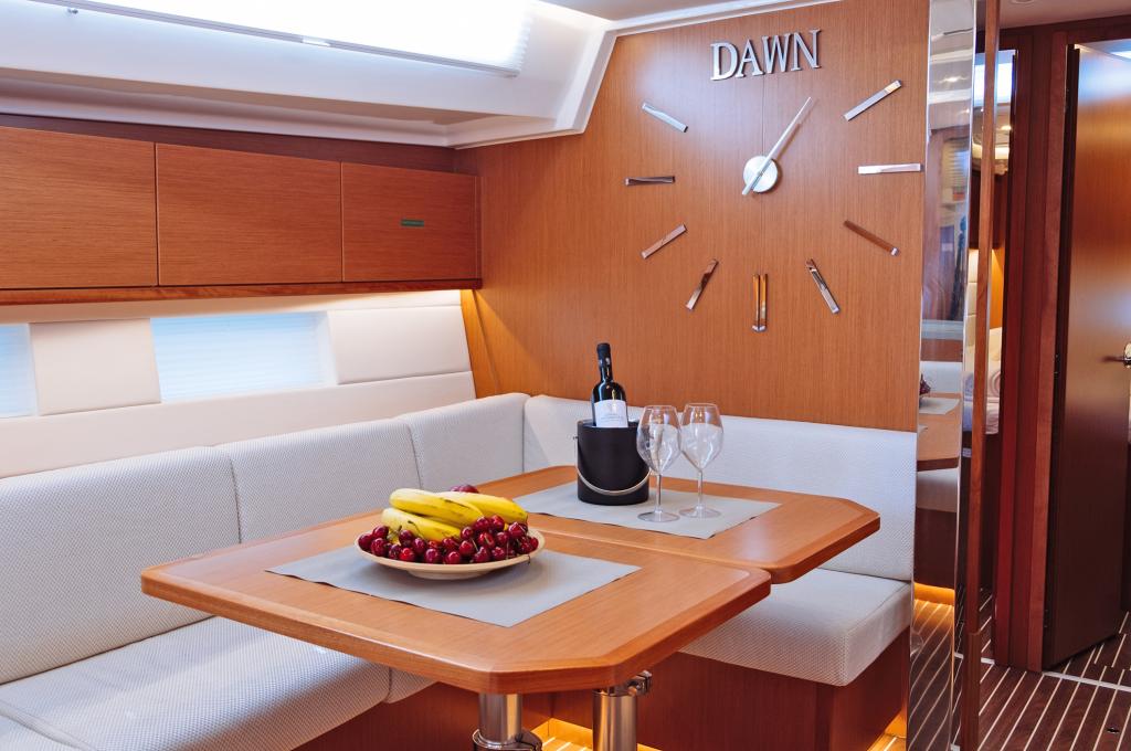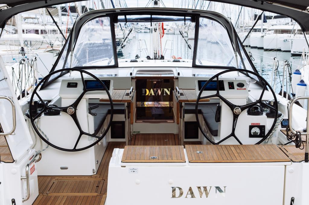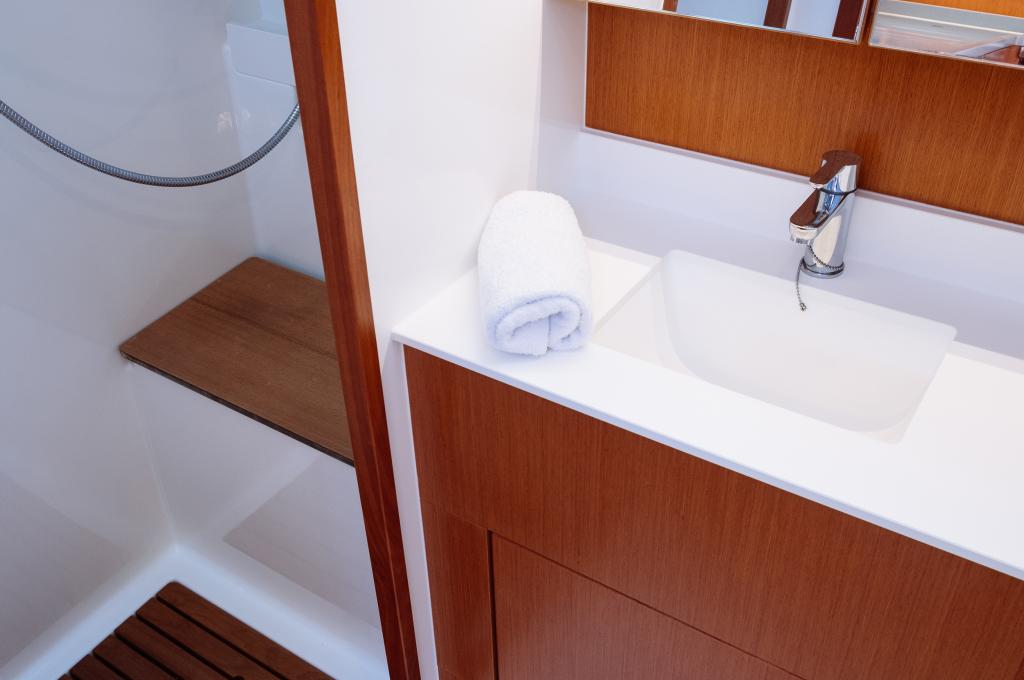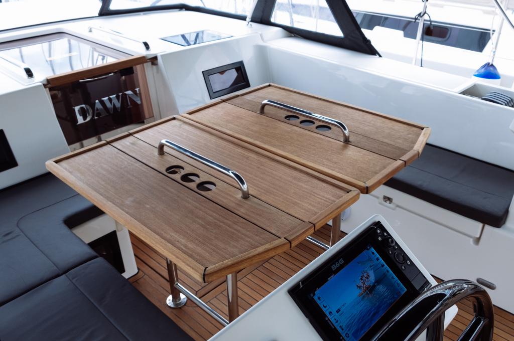 | Outside | Badeplattform, Biminitop, Cockpitpolster, Faltpropeller, Gangway, Solaranlage, Sprayhood |