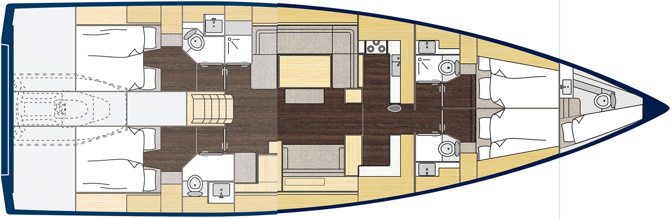 | Kabinen: | 4+1 | Kojen: | 8+1+1 |