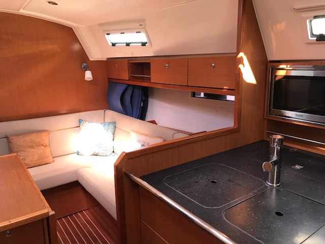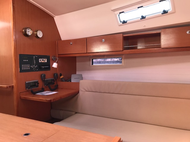 | Navigation | Barometer, elektr. Seekarten, Fernglas, GPS mit Kartenplotter im Cockpit, Hafenhandbücher, Seekarten, Windmesser |