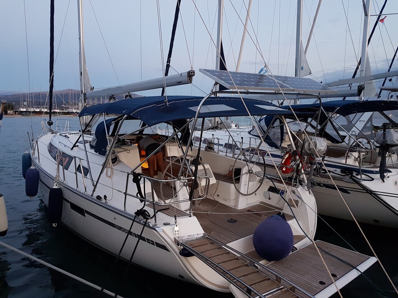 | Outside | 220 V-Landanschluss, Anker mit Kette, Badeleiter, Biminitop, Bootshaken, Cockpitdusche, Cockpitpolster, Cockpittisch, Deckbürste, Dieselkanister , elektr. Ankerwinsch, Fender, Festmacherleinen, Gangway, Kunststoff-Eimer (Pütz), Lifeline System, Schnorchelausrüstung, Solaranlage, Sprayhood, Vorhängeschloss, Wantenschneider, Wasserschlauch, Windex |