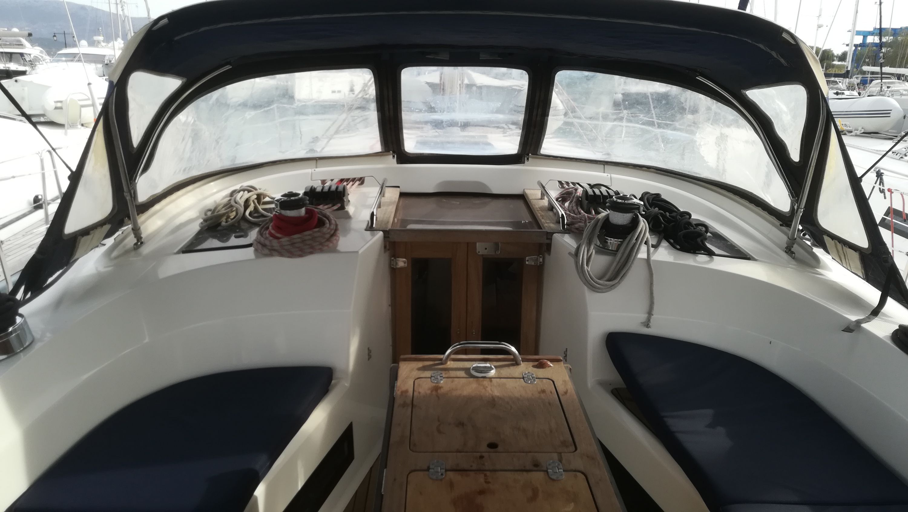 Outside 220 V-Landanschluss, Anker mit Kette, Badeplattform, Biminitop, Cockpitdusche, Cockpitlautsprecher, elektr. Ankerwinsch, Schnorchelausrüstung, Solaranlage, Sprayhood, Teak im Cockpit