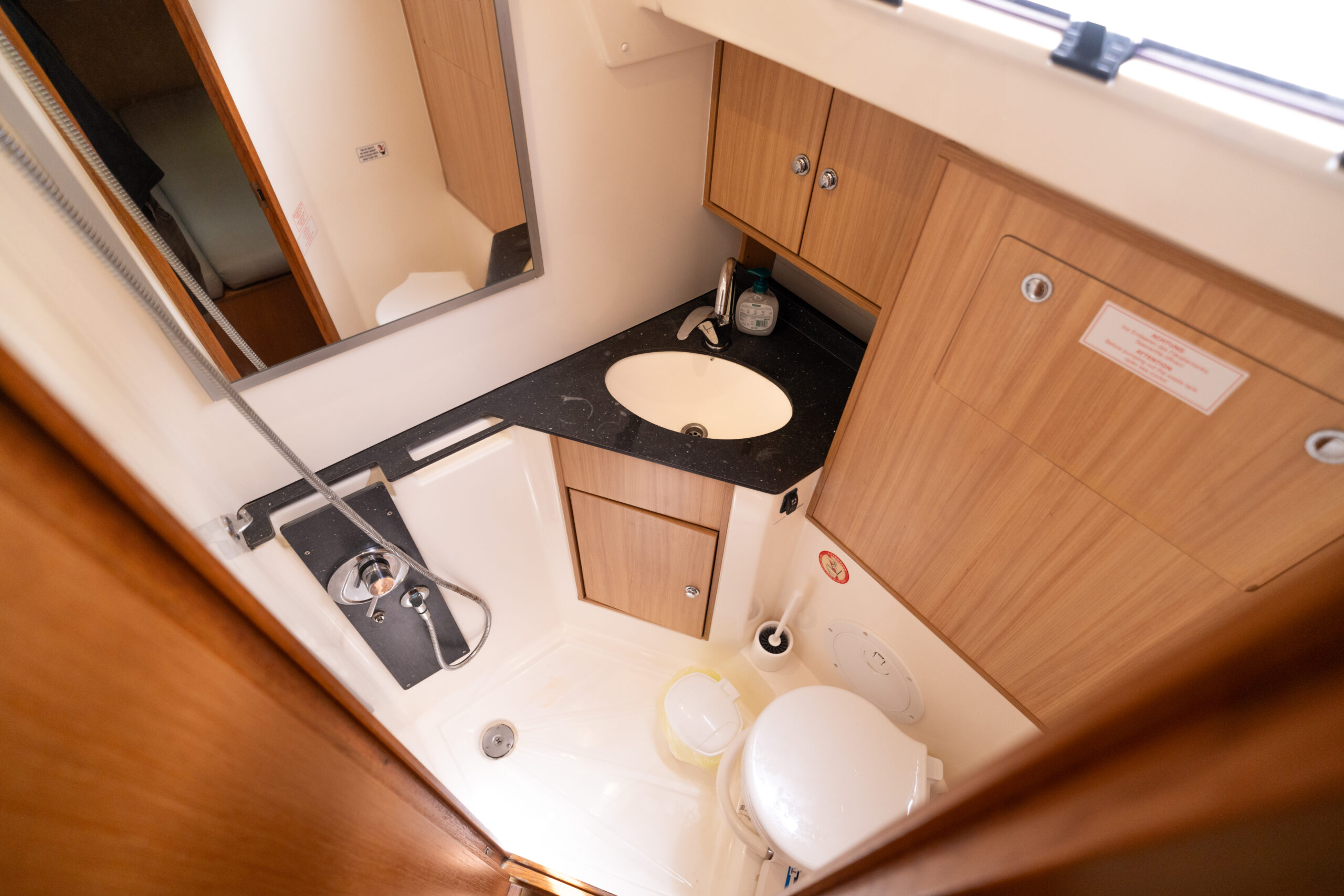 | Outside | Ankerwinsch, Biminitop, Cockpitdusche, Cockpitlautsprecher, Cockpittisch, Solaranlage, Sprayhood |
