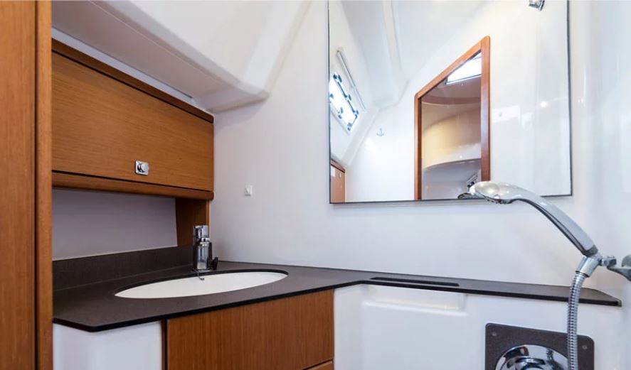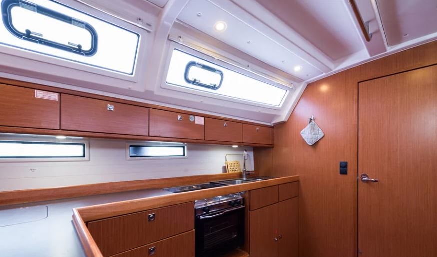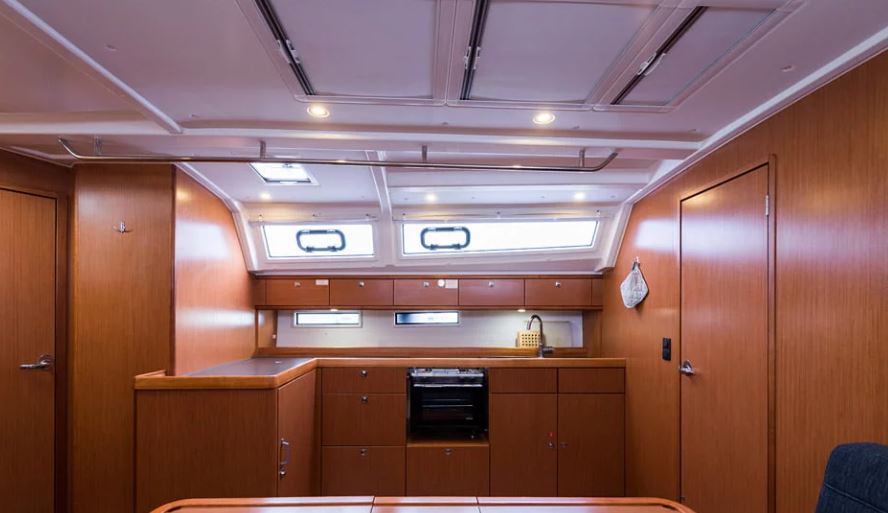| Safety | Autopilot, Bootsmannstuhl, Bordapotheke, Bordwerkzeug, Bugstrahlruder, elektr. Bilgepumpe, Epirb, Feststoffschwimmwesten, Flaggen, GMDSS, Leuchtboje, Navigationslichter, Notpinne, Notsignale, Rettungsinsel, Rettungskragen, Sicherheitsgurt, Taschenlampe, UKW-Funk |