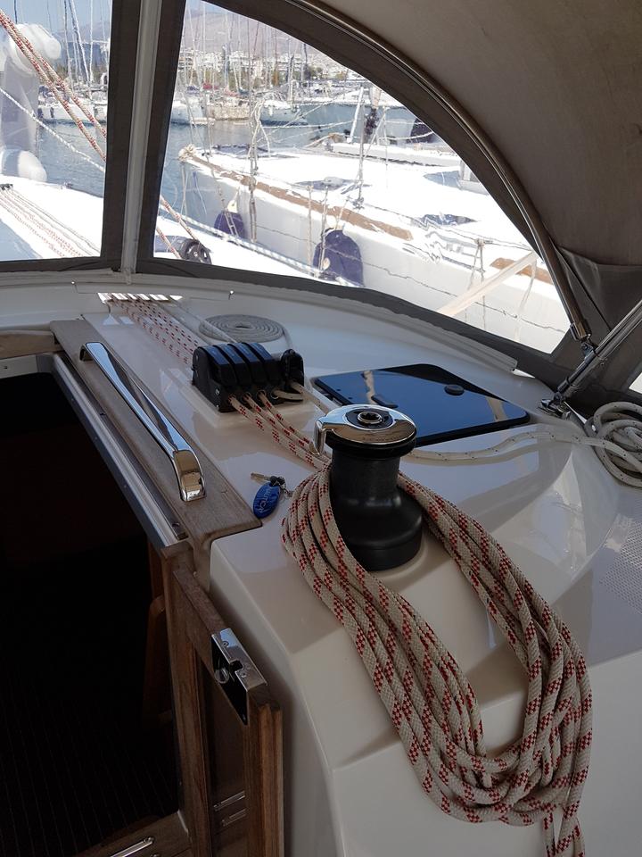 | Outside | Anker mit Kette, Badeleiter, Benzinkanister, Biminitop, Bootshaken, Cockpitdusche, Cockpitlautsprecher, Cockpitpolster, Deckbürste, elektr. Ankerwinsch, Faltsteuerrad, Fender, Festmacherleinen, Gangway, Kugelfender, Kunststoff-Eimer (Pütz), Schnorchelausrüstung, Solaranlage, Sprayhood, Wantenschneider, Wasserschlauch, Winschen |