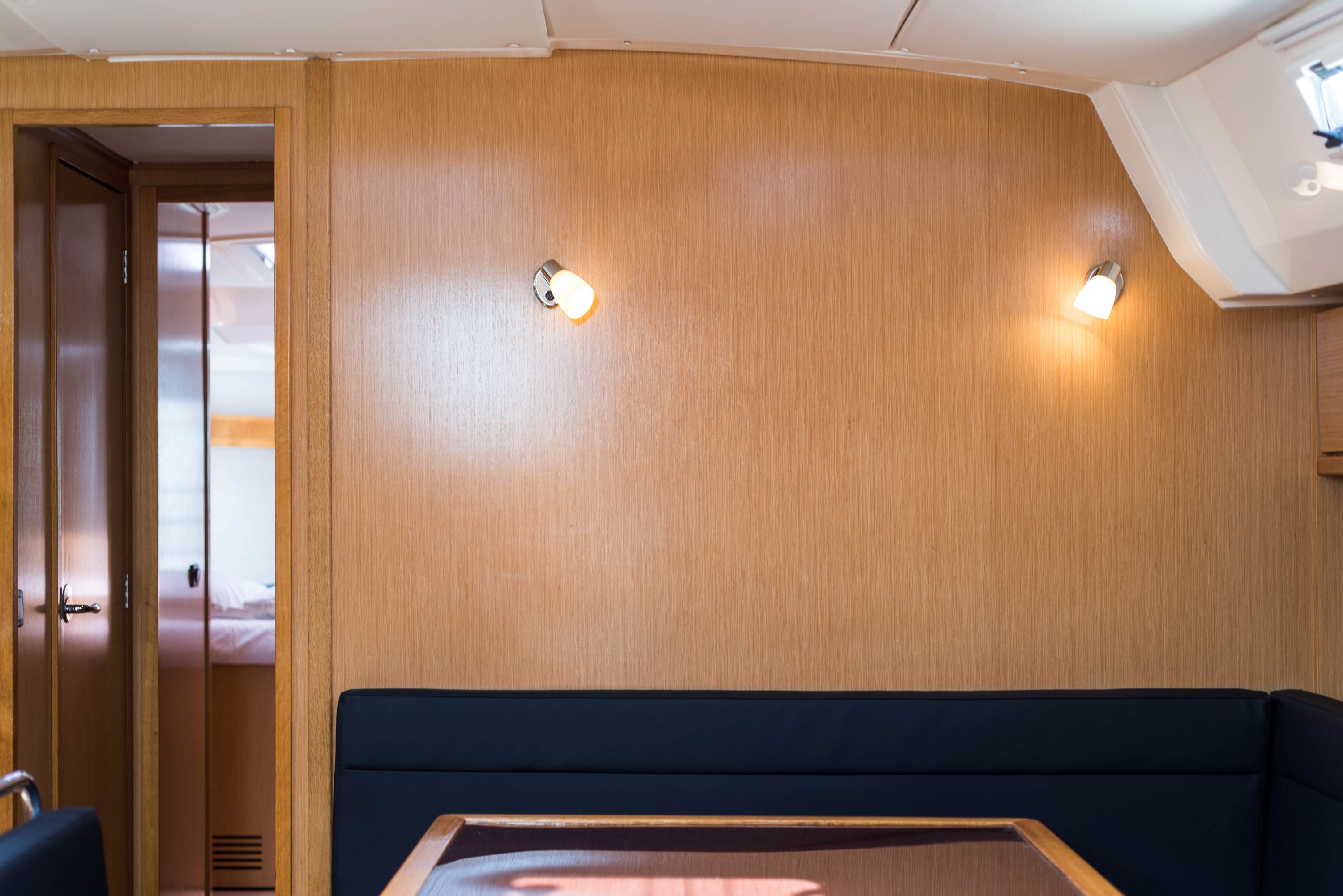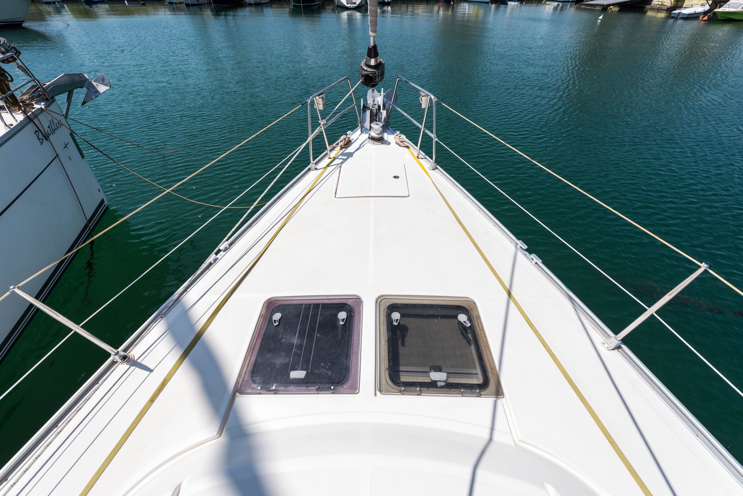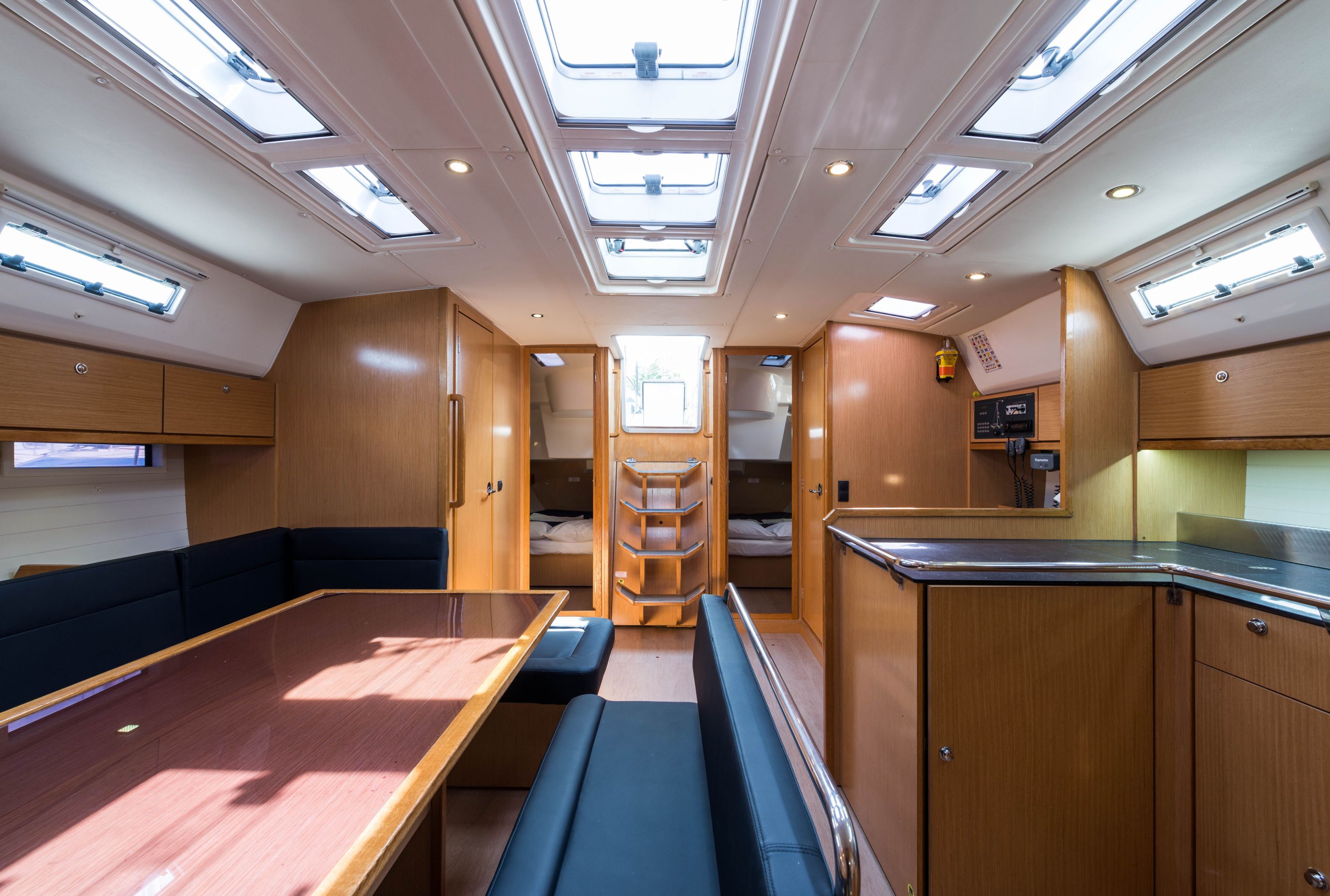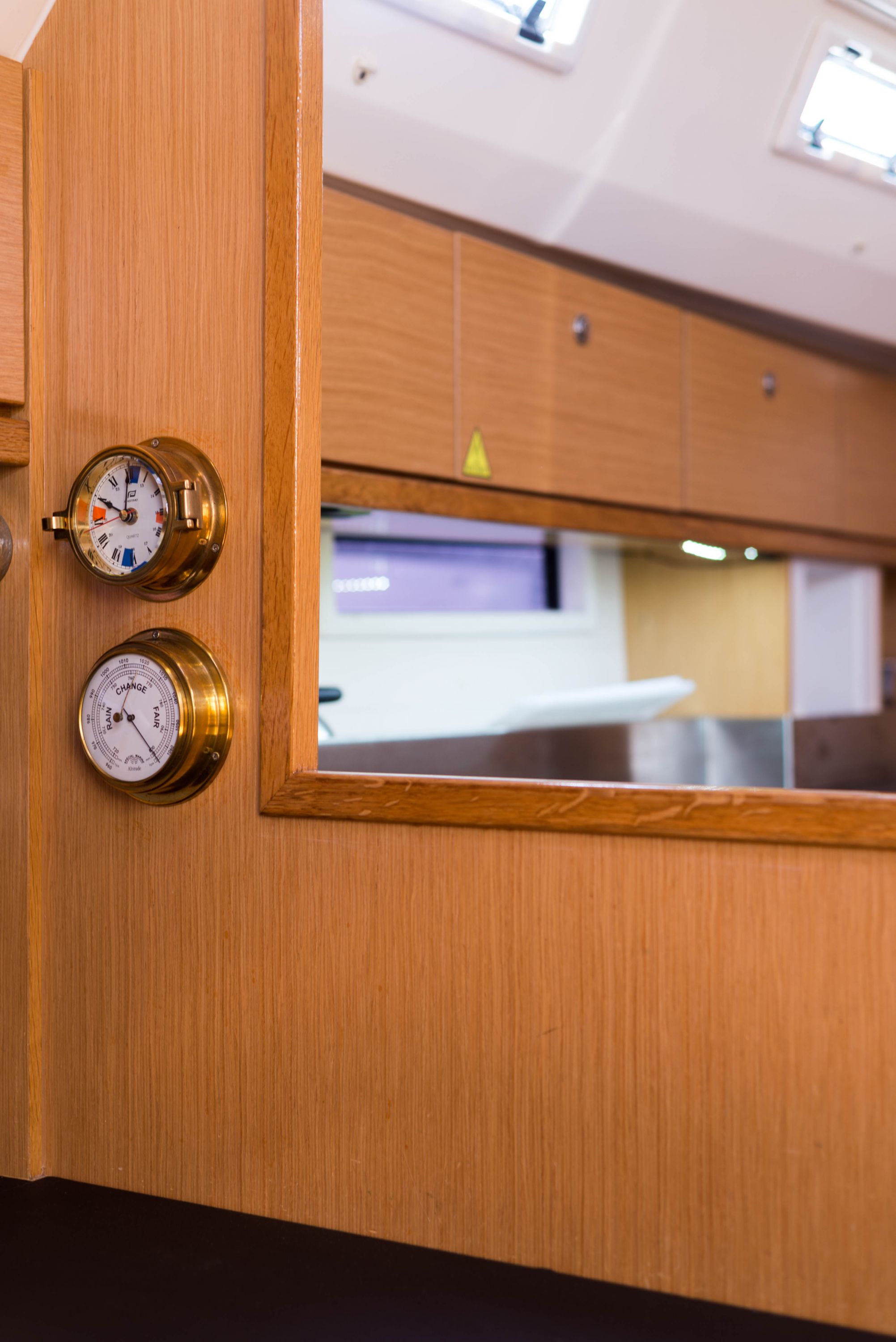 | Outside | 220 V-Landanschluss, Badeleiter, Badeplattform, Biminitop, Cockpitdusche, Cockpitlautsprecher, Cockpittisch, elektr. Ankerwinsch, Segel-Flickwerkzeug, Solaranlage, Sprayhood, Teak im Cockpit, Treibanker, Windex |