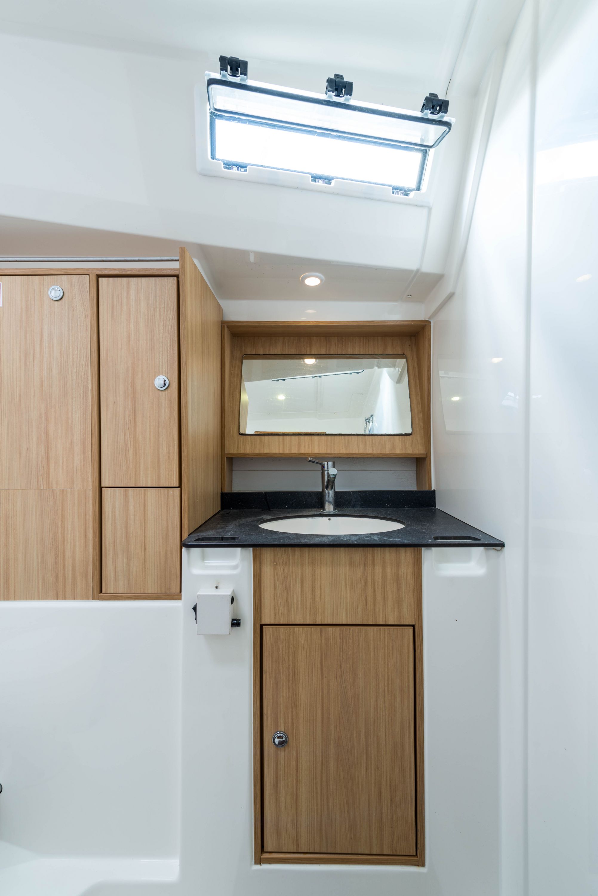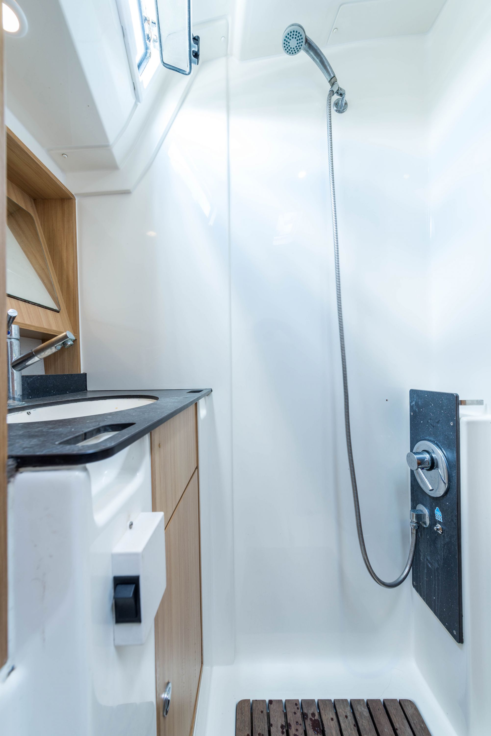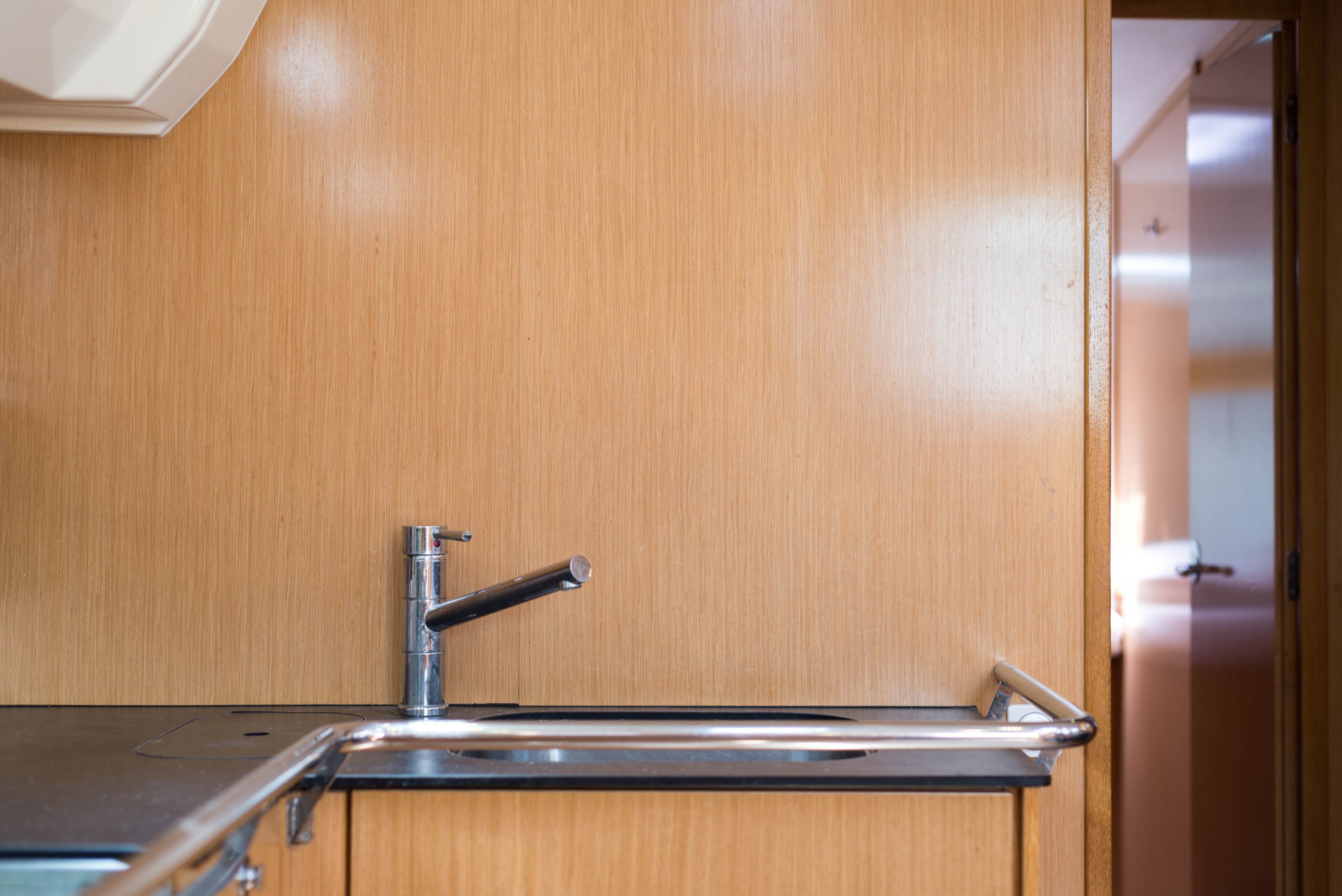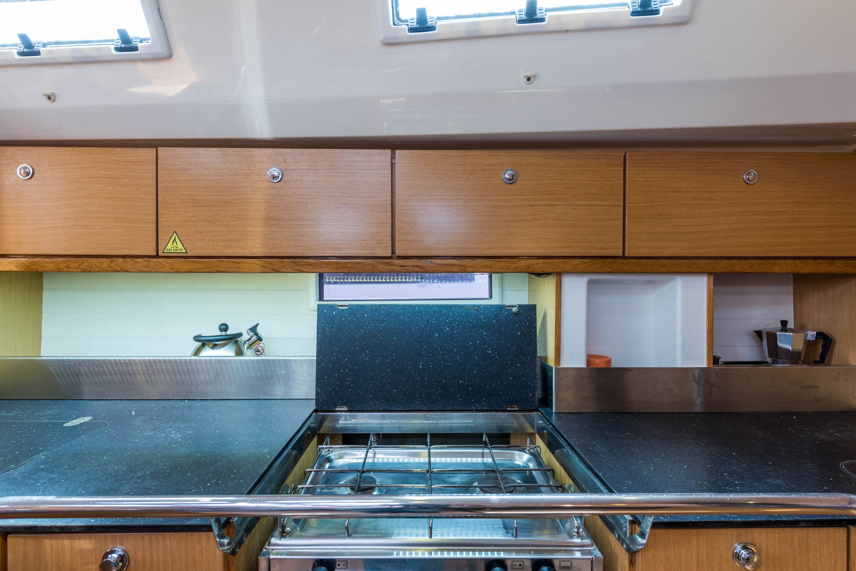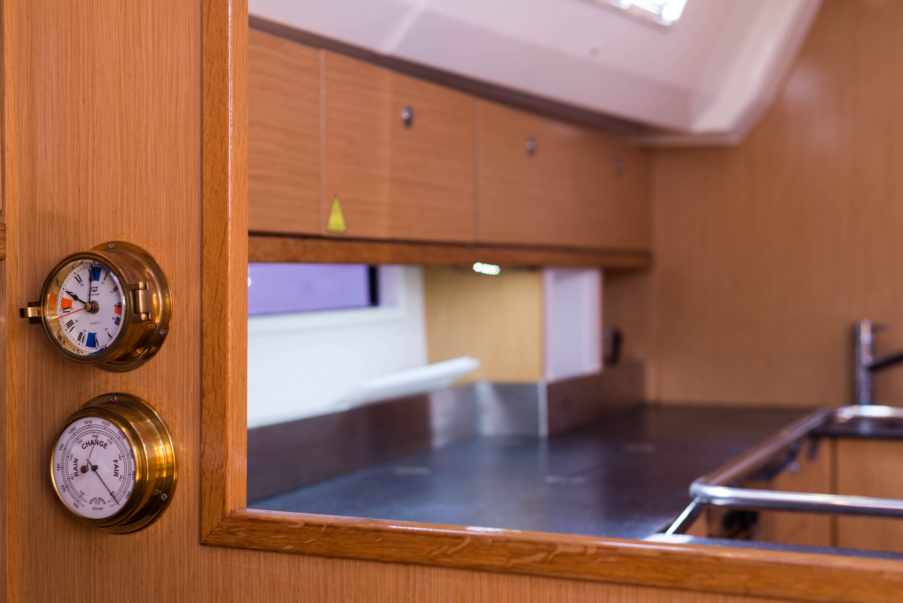 | Outside | 220 V-Landanschluss, Badeleiter, Badeplattform, Biminitop, Cockpitdusche, Cockpitlautsprecher, Cockpittisch, elektr. Ankerwinsch, Segel-Flickwerkzeug, Solaranlage, Sprayhood, Teak im Cockpit, Treibanker, Windex |