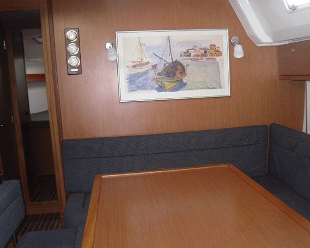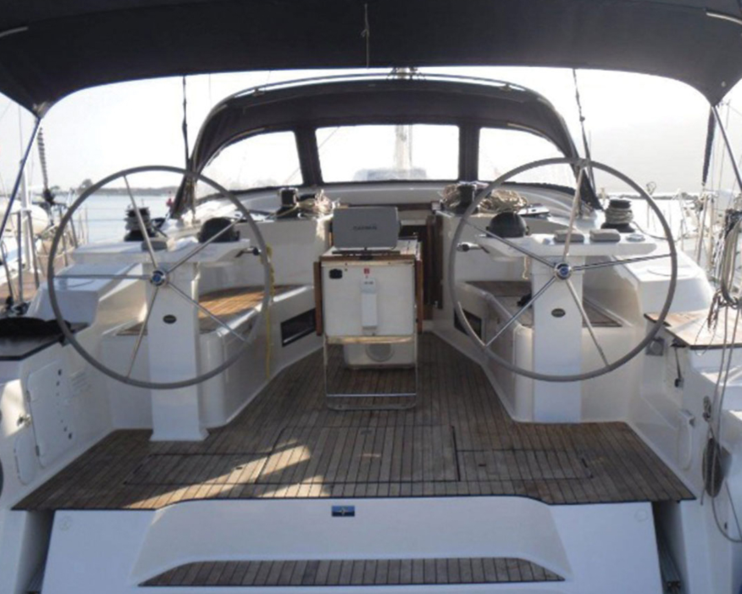 Outside Anker mit Kette, Badeleiter, Biminitop, Bootshaken, Cockpitpolster, Cockpittisch, Dieselkanister , elektr. Ankerwinsch, Fender, Festmacherleinen, Gangway, Kunststoff-Eimer (Pütz), Schnorchelausrüstung, Solaranlage, Sprayhood, Wasserkanister , Winschen