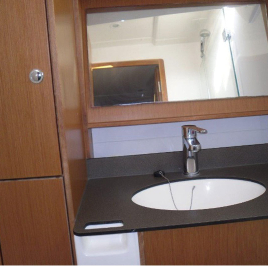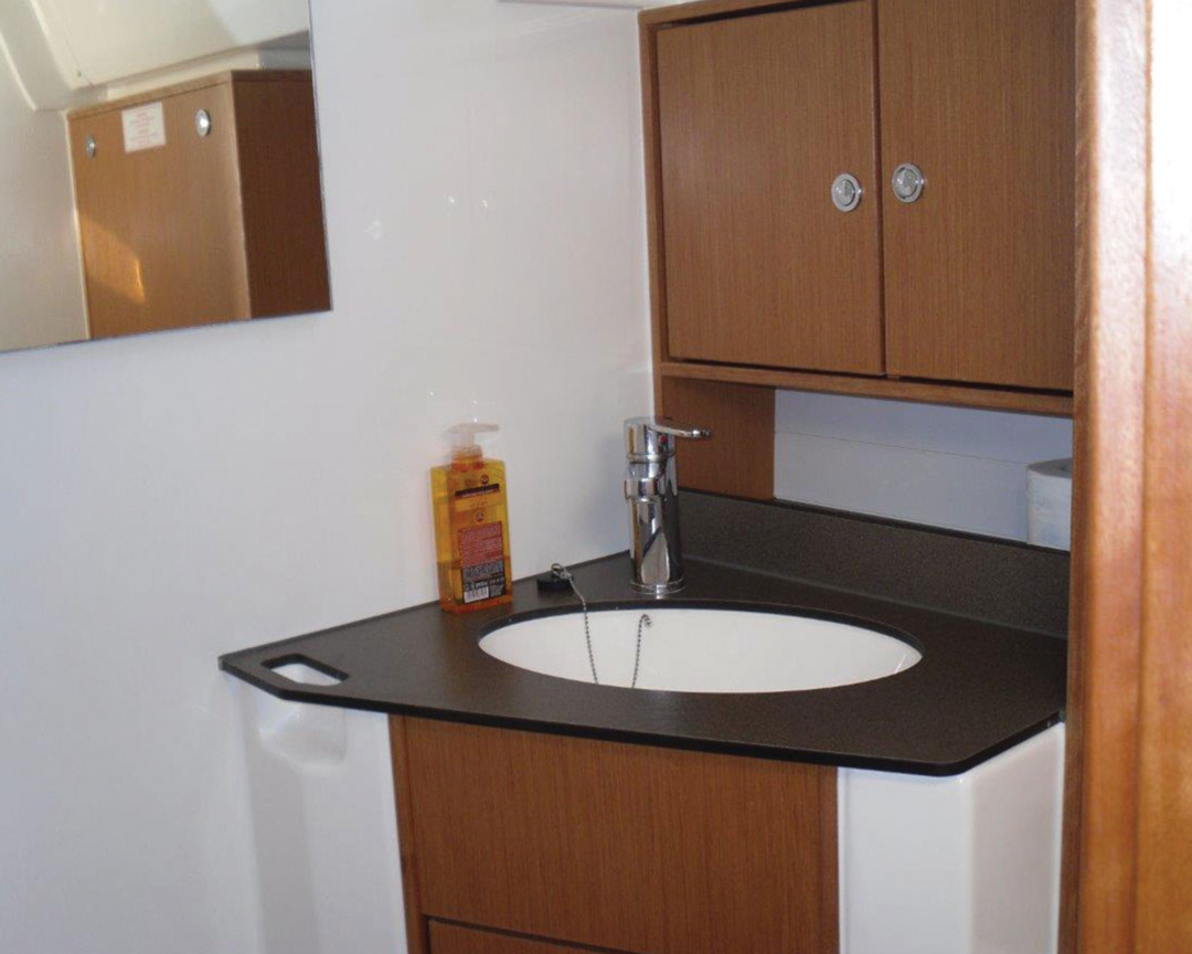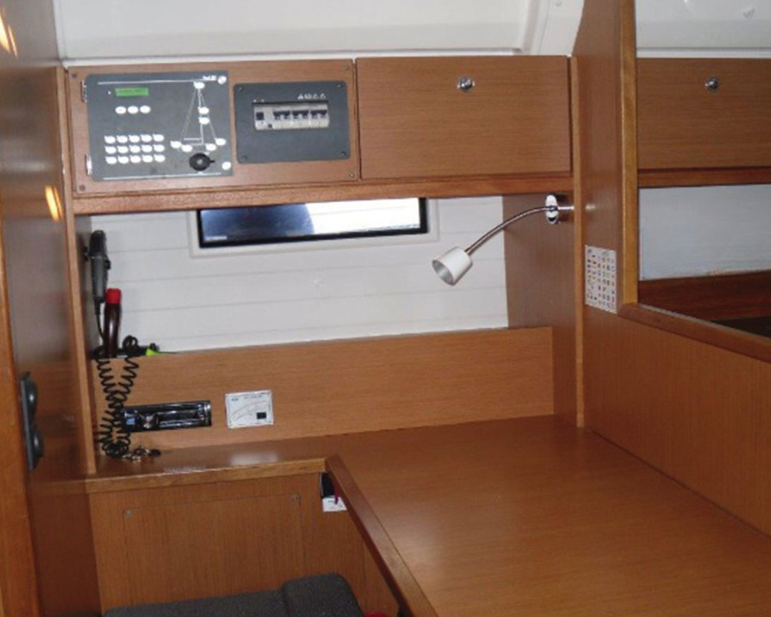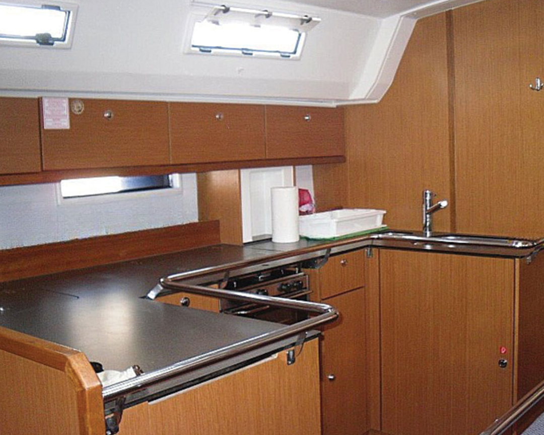 Inside 220V Steckdosen, Backofen, Gasherd, Inverter 12V/220V, Kühlschrank, Ladegerät, Luftpumpe für Beiboot, Pantryausstattung, Radio mit CD und MP3, Trichter, TV + DVD, Ventilatoren in Kabinen, WC (elektr.)