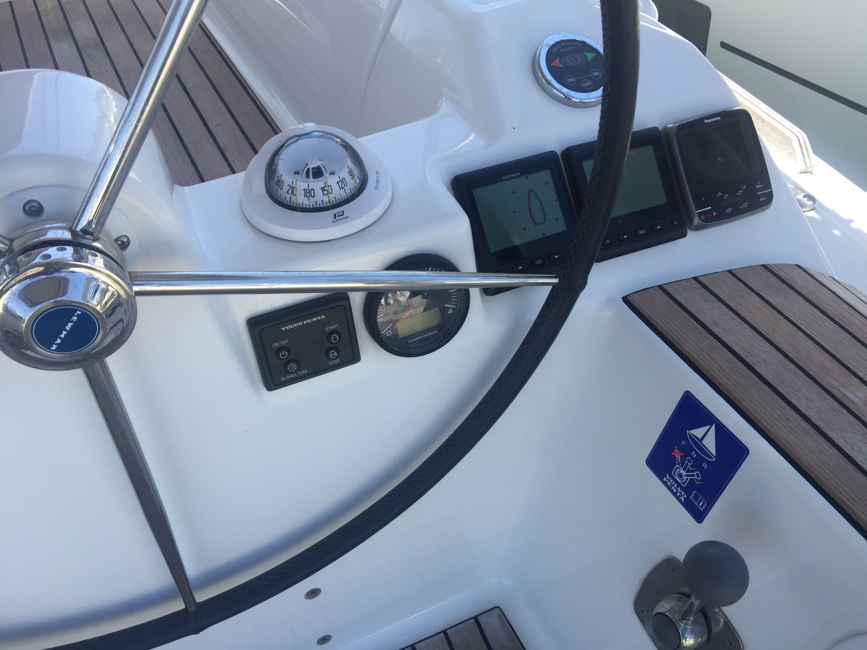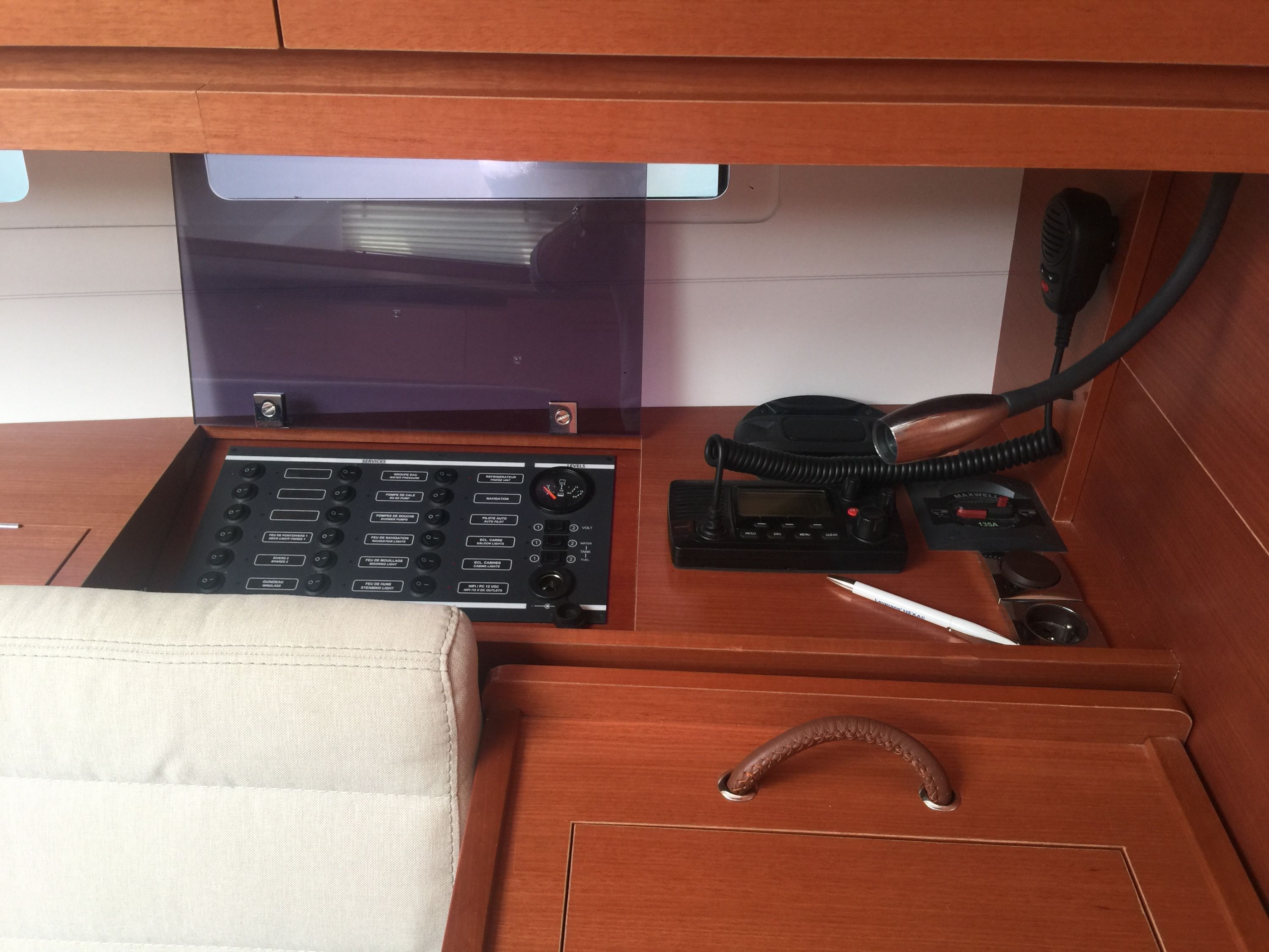 | Safety | Autopilot, Bootsmannstuhl, Bordapotheke, Bordwerkzeug, Bugstrahlruder, elektr. Bilgepumpe, Feststoffschwimmwesten, GMDSS, Leuchtboje, Navigationslichter, Notpinne, Notsignale, Rettungsinsel, Rettungskragen, Taschenlampe, UKW-Funk |
