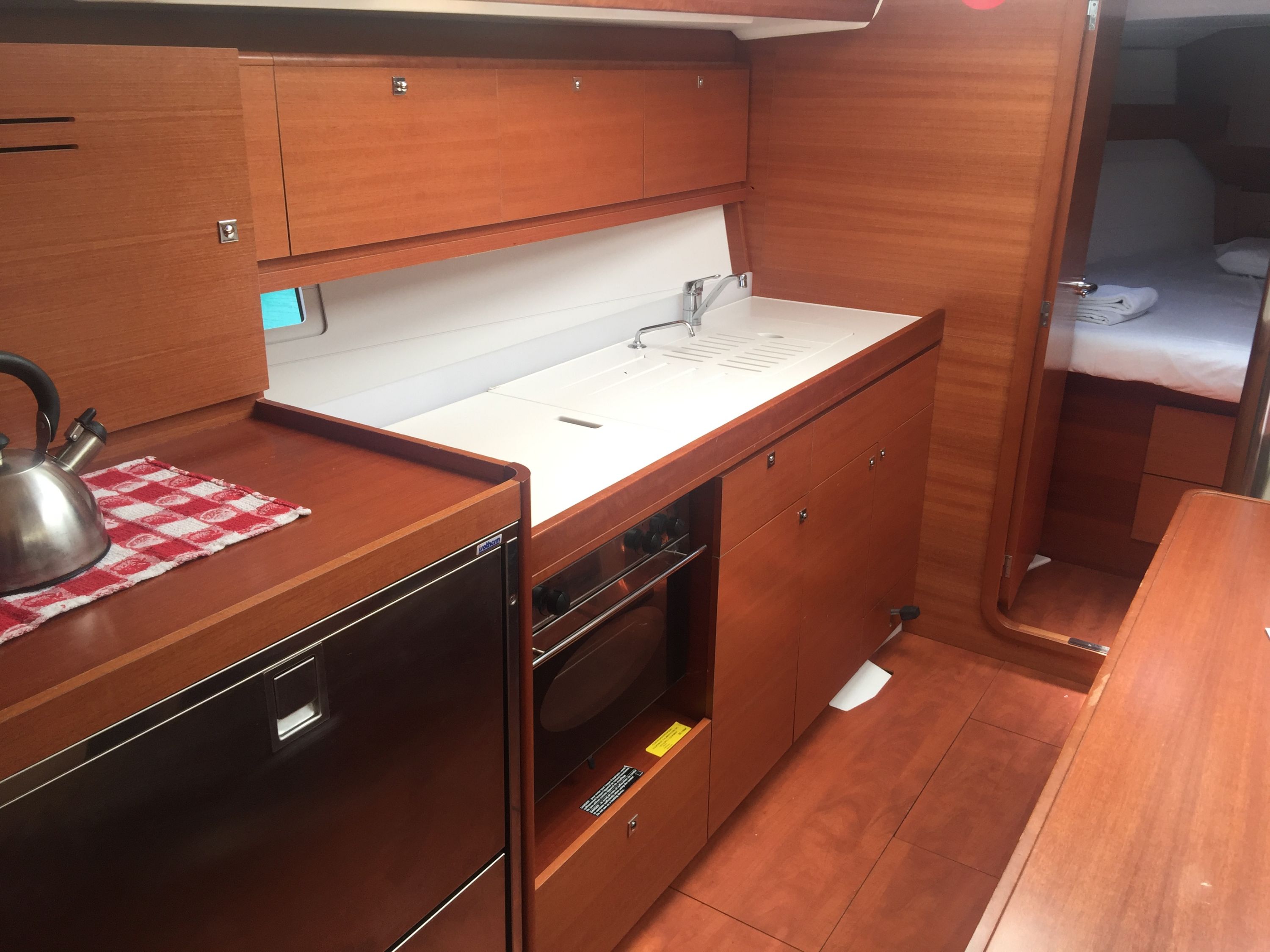 | Outside | 12 V-Anschluss, Anker mit Kette, Badeleiter, Biminitop, Cockpitdusche, Cockpitlautsprecher, elektr. Ankerwinsch, Gangway, Sprayhood |
